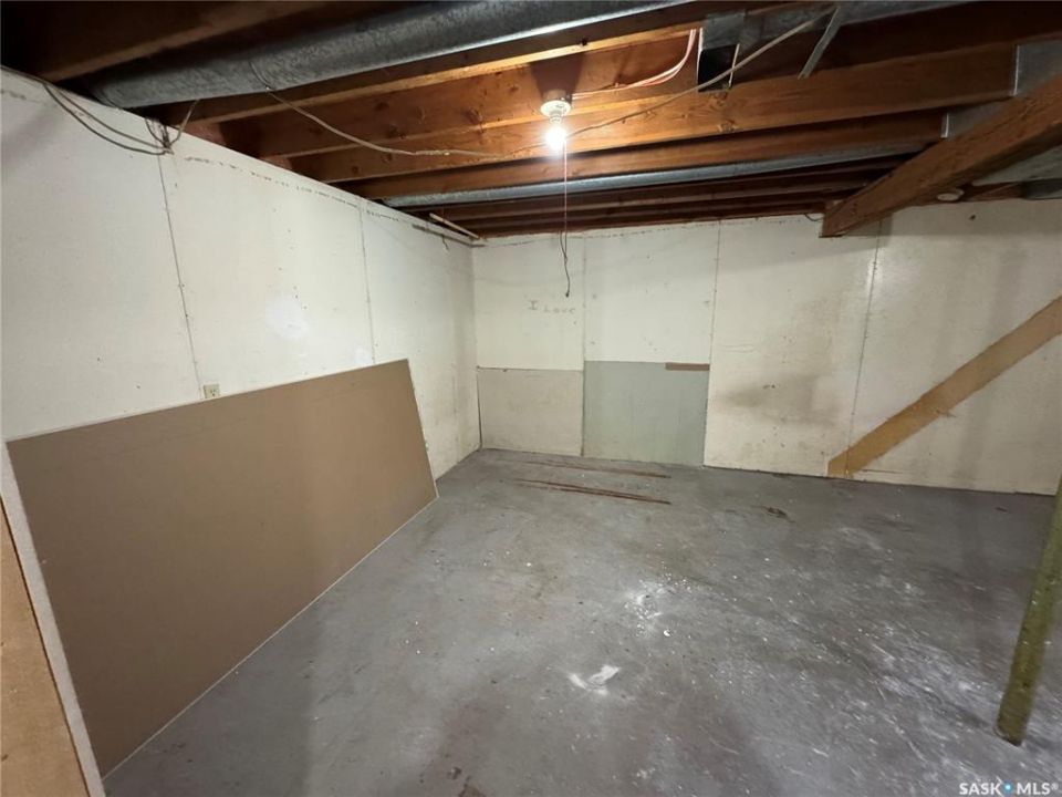 Welcome to this cozy and affordable 879 sq ft bungalow, perfectly located at 414 3rd Avenue in the welcoming town of Naicam. Just one block from the school, this home offers the ideal blend of convenience, comfort, and value—perfect for first-time buyers, young families, or those looking to downsize. Step inside to find a functional, open-concept layout featuring a spacious kitchen, living, and dining area. The kitchen offers ample cabinet space and a bright eat-in dining area, making everyday cooking and family meals a breeze. You'll also find two generous bedrooms and a full bathroom, all designed with practicality in mind.Outside, enjoy a fully fenced, generous-sized yard—ideal for children, pets, gardening, or even future expansion to build the garage you've always wanted.The basement is currently unfinished, offering a blank canvas with the potential to add additional living space, including a third bedroom and family room.Located in a quiet, close-knit community, this home combines the charm of small-town living with the convenience of being a short drive to larger centers. Whether you're entering the housing market or searching for a solid investment opportunity, this home is full of potential. Don't miss out—book your viewing today!