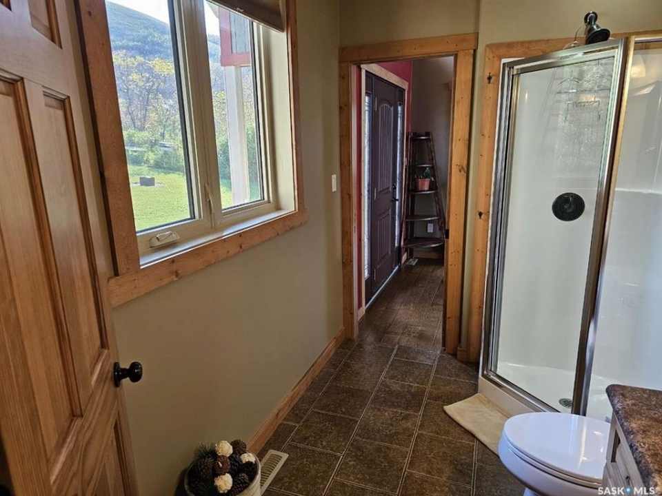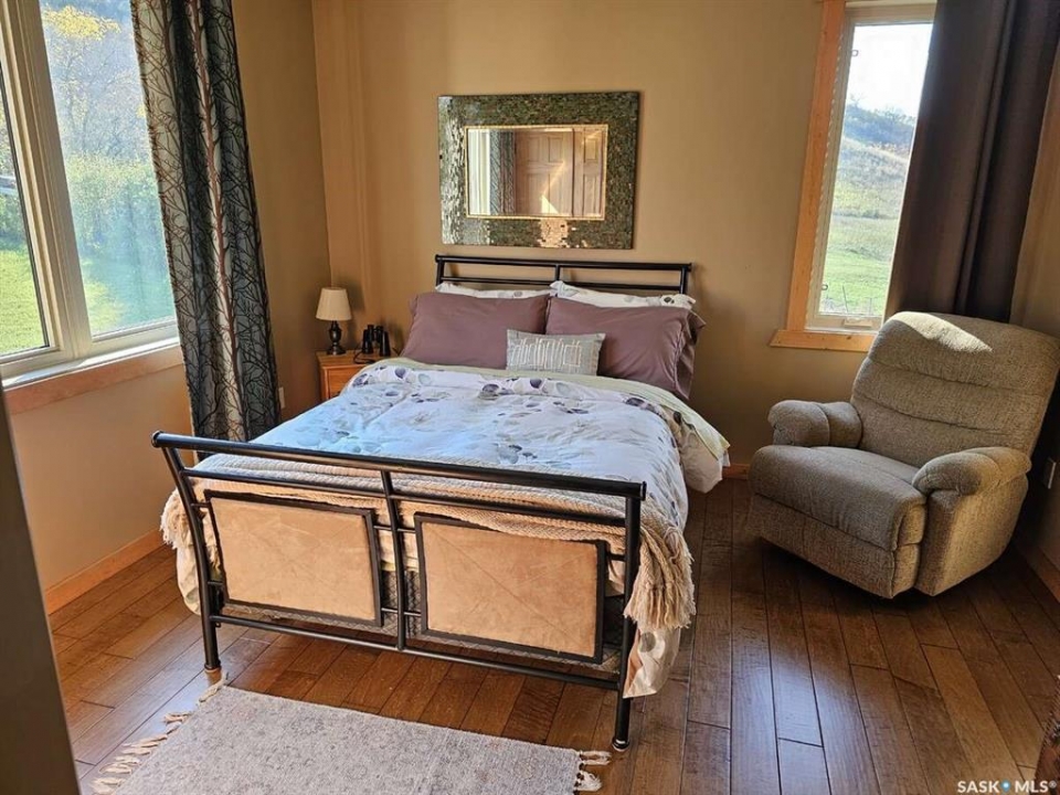 For more information, please click the "More Information" button. Stunning Acreage with Spectacular Views in the Qu'Appelle Valley! Incredible opportunity to own a beautiful acreage nestled in the Qu'Appelle Valley, just 3 minutes from Fort Qu'Appelle on the north hillside of Echo Lake. This spacious home sits on 1.69 acres with breathtaking panoramic views and sunsets. Offering over 1900 sq. ft. upstairs, this property features 5 bedrooms and 3 bathrooms, including a 4-piece ensuite. The layout includes 2 bedrooms upstairs, 3 large bedrooms downstairs, an upstairs laundry, and a bright office space. Enjoy a huge kitchen with eating bar for 6, a large dining area, and engineered hardwood floors. Cozy up to the wood-burning fireplace upstairs or the natural gas fireplace downstairs. Relax outdoors on the completely covered deck that wraps around the entire front of the house, perfect for enjoying the stunning views in any weather. The lower level features a large mechanical room with storage shelves, a boiler system for in-floor heat in both the downstairs and garage, a water softener, and a central vacuum system. Additional highlights include a 2,600 gallon septic tank, a private well with excellent water quality and quantity, solid pine doors and trim throughout, an attached 2-car garage, ample parking, beautifully landscaped yard, and an outbuilding for extra storage. This exceptional property offers space, comfort, and stunning scenery - all minutes from town amenities and 45 minutes from Regina. Don't miss your chance to call this incredible acreage home!