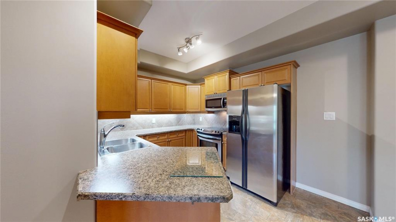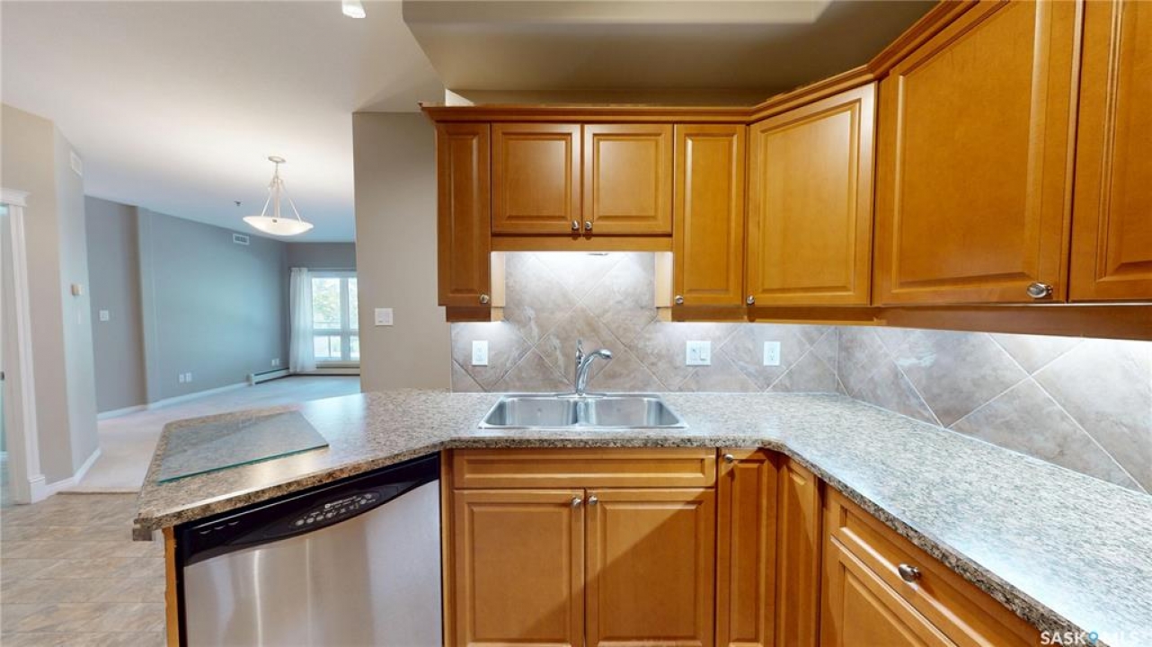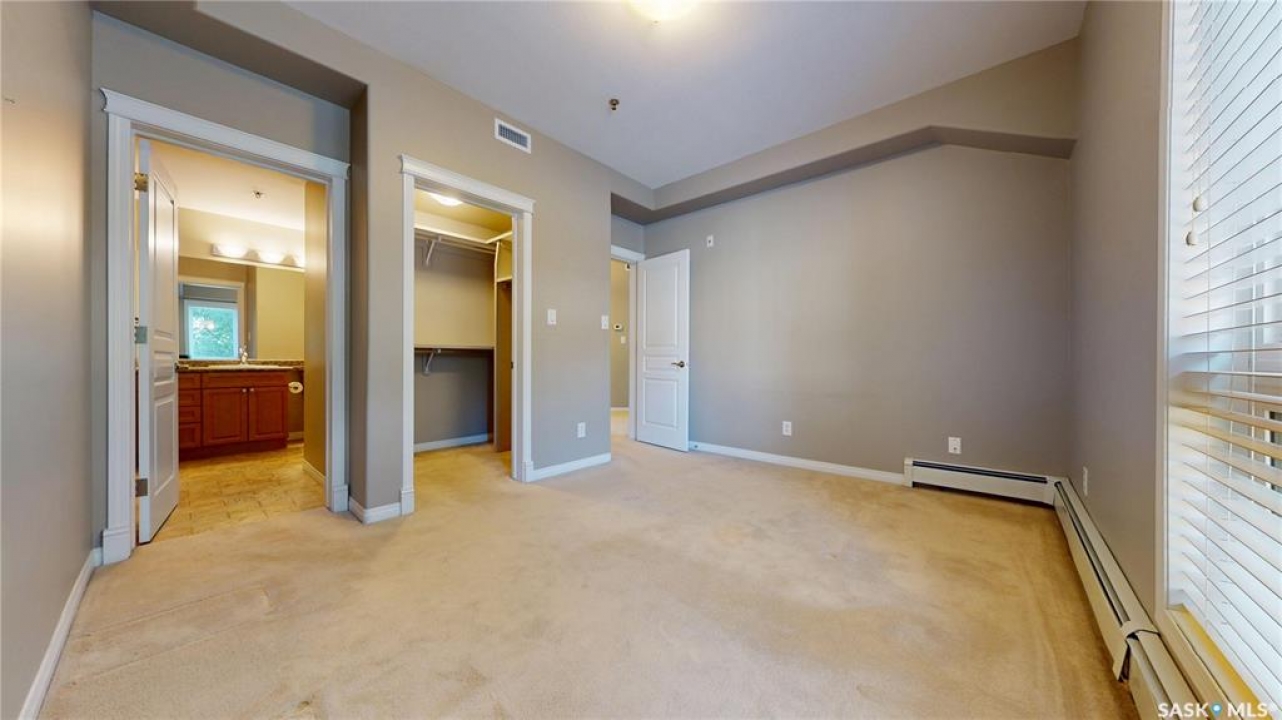 Welcome to this beautiful and cozy 2-bedroom, 2-bathroom condo ideally located in the desirable Wildwood neighbourhood, right by the golf course and close to parks, walking trails, shopping, and many amenities. Please view the Matterport 3D virtual tour in this listing. This spacious upper-main floor unit features a well-designed kitchen complete with ample counter and cupboard space, and sleek stainless steel appliances. The kitchen opens seamlessly to the dining area and living room, creating a perfect space for entertaining or relaxing. Step outside to your west-facing balcony and take in views of the beautifully landscaped grounds—perfect for relaxing evenings or morning coffee. The generous primary suite boasts a large walk-in closet and a private 3-piece ensuite. A second bedroom, a full 4-piece bathroom, and in-suite laundry add to the comfort and convenience of this home. Additional features include central air conditioning, 9 foot ceilings, and the unit comes with 2 parking stalls; one underground heated parking stall with a storage space, plus one surface parking stall. The building is quiet, well-maintained, and home to a welcoming community with great neighbours. Residents enjoy excellent amenities including a guest suite, a fitness room, and an amenities lounge for social gatherings or events. Don't miss your opportunity to own this beautifully maintained condo in a sought-after location! Call now for your own private viewing!