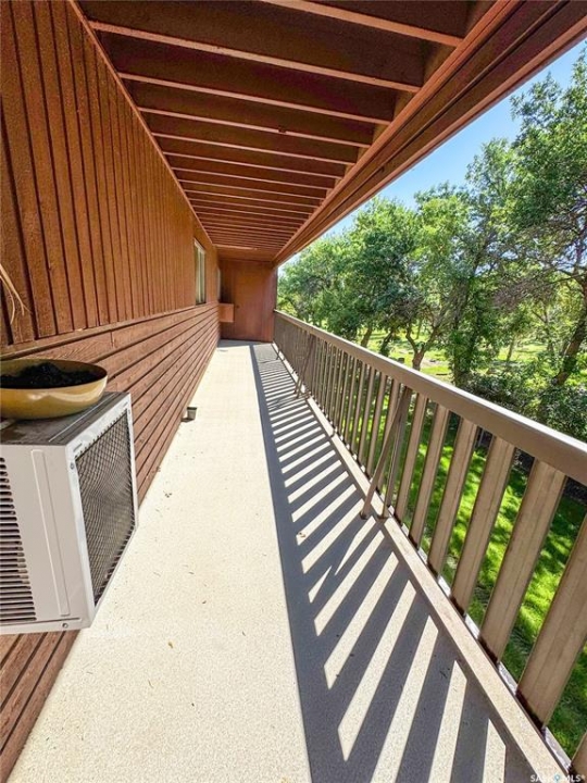 Welcome to this rarely available 2-bedroom, 2-bathroom condo boasting quiet south-facing views and 1,160 sq ft of comfortable living space. The spacious white kitchen offers ample cabinetry, generous counter space, and a full appliance package, seamlessly flowing into the oversized living and dining area. Step through the balcony doors onto your expansive 37-foot-long balcony, complete with convenient storage units at each end. Down the hall, you'll find a dedicated laundry space and two well-proportioned bedrooms. The sizable master suite is a true retreat, featuring its own 3-piece ensuite washroom, a wall air conditioner, and two large closets. This property presents an excellent opportunity for affordable living or a valuable addition to your revenue portfolio. Embrace the ease of condo living, where building maintenance, grass cutting, and snow removal are all taken care of for you. Conveniently located near the Aquatic Centre, various restaurants, Swift Current Comprehensive High School, and Irwin School. Call your REALTOR � today and schedule your viewing!