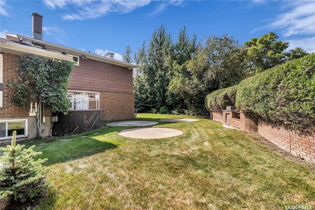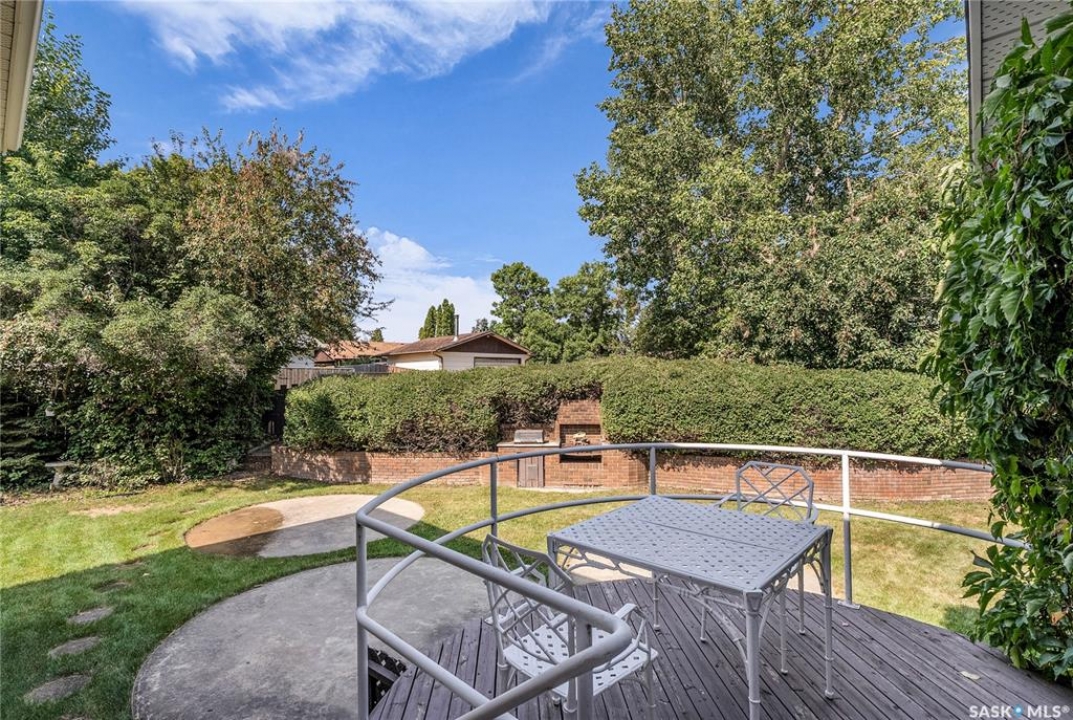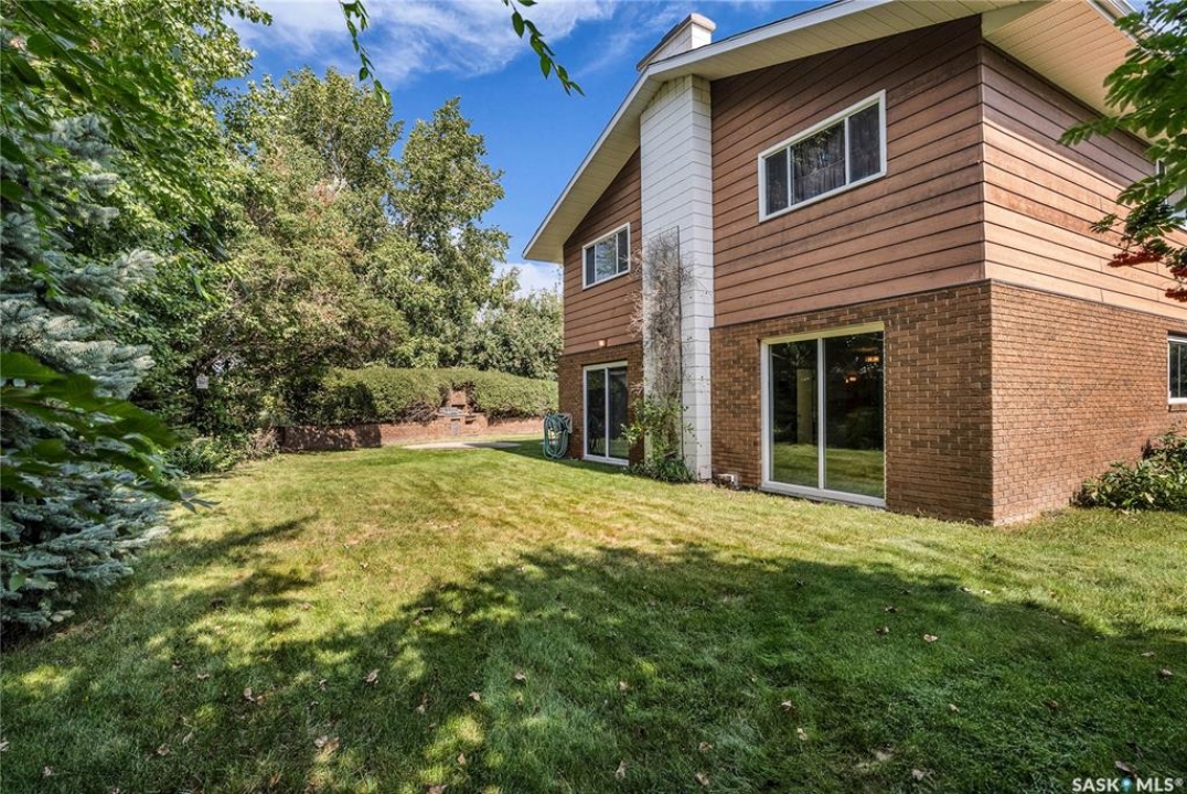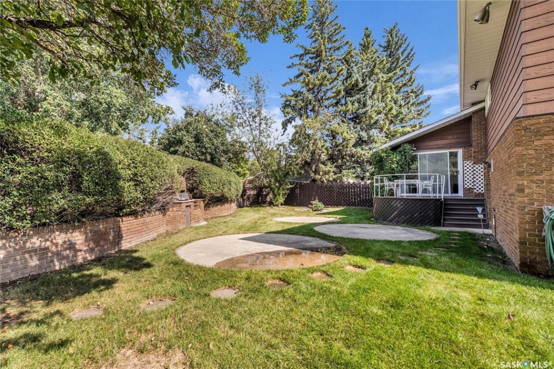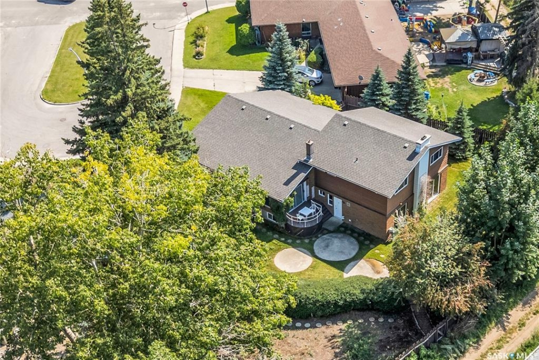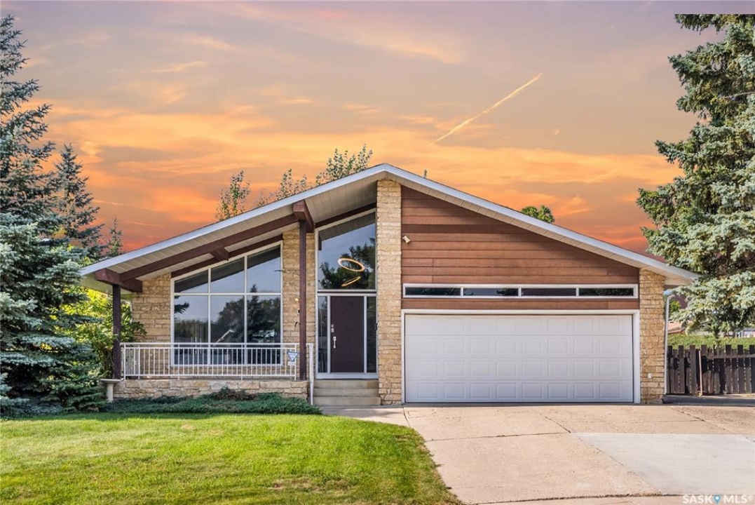 Welcome to a true neighbourhood landmark! This iconic 2,549 sqft. custom-built home has been cherished by its original owner and sits proudly on a quiet cul-de-sac. Set on an extraordinary 12,000+ sqft. pie-shaped lot, this property offers space and character unlike anything else on the market. The curb appeal is unmatched with unique architecture, brick detailing, oversized windows, and soaring vaulted ceilings that create an immediate “wow” factor. The main level features a large sunken living room filled with natural light, a formal dining area, and a spacious kitchen with breakfast nook, newer flooring, and stove. From here, step out onto the deck and into the incredible backyard—complete with multiple patio circles and endless space for entertaining, gardening, or simply enjoying the outdoors. Upstairs, you'll find two exceptionally large bedrooms plus a cozy primary retreat with walk-in closet and 2-piece ensuite. A main bath with a sunken tub completes this level. The lower level offers a private den/office, a huge family room with floor-to-ceiling windows and a charming stone adorned fireplace, along with an additional full bathroom with shower and separate laundry room. The basement adds even more living space with new carpet, an additional bedroom, rec room, and an oversized crawlspace for storage. Practical updates include a new furnace (2022), newer central A/C, and newer shingles. The double attached garage ensures plenty of parking and convenience. Homes like this are truly rare—loaded with character, exceptionally well cared for, and sitting on one of the largest lots in the area. Close to schools, parks, and all commercial amenities, this is your chance to own a piece of local history.