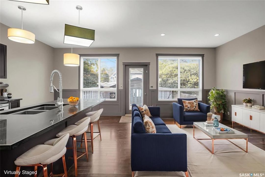 Well-appointed Home in the sought-after neighbourhood, Buena Vista, just minutes from 8th St. and Downtown. Large windows to allow natural light, this inviting two-storey offers a smart layout with a welcoming living room and a second main-floor family space ideal for entertaining or creating memories. Upstairs you'll find three generous bedrooms, including a primary suite with walk-in closet and ensuite, plus the convenience of laundry right where you need it. The fully finished basement, complete with a separate entrance, extends your living space with a large family room, two additional bedrooms, and a full bath. With a new water heater, double detached garage, and move-in ready appeal, this home is designed for families who want comfort, function, and location all in one.