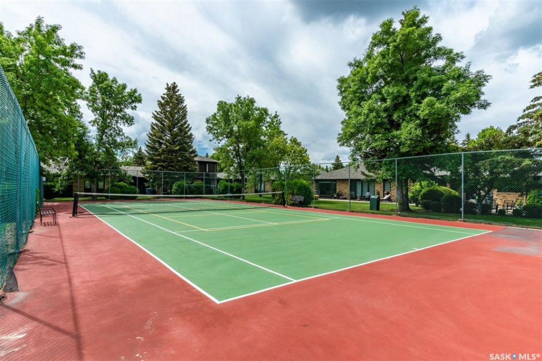Welcome to one of Saskatoons finest condominium developments- Heritage Estates. This 1795 sq.ft, two story townhouse has had numerous upgrades including a stunning kitchen complete with leather looking countertops and island with gorgeous countertop. During the renovations they also added in a built in hutch in dining nook area. There is a gas FP in living room that compliments both dining and living room area. Garden doors off nook to rear interlocking brick patio and grassed area with the pool and clubhouse access nearby. The home offers 2 bedrooms plus a den that overlooks the main floor front entry (potentially could be a 3rd bedroom)on the 2nd floor. The Master bedroom offers 3 closets as well as a 4 piece ensuite consisting of double sinks in vanity, toilet plus a large soaker tub. The 2nd bedrooms is also a good size with double closet. The main floor also offers a 2 piece bath/laundry combination room. This home has had numerous upgrades including the triple pane LowE argon PVC windows and a upgraded water heater. The double attached garage is finished and offers direct entry (inside dimensions are 23' deep by 20' wide). The lower level has approx 9' high ceilings and is open for your own personal development. Condo fees are set at $578/month (Professionally managed) which includes common insurance & maintenance, snow removal for driveway and sidewalk and roadway within complex, lawn care, garbage & reserve fund. This development has recently had all roofs within the redone. Not only will you appreciate the luxury living space, you can immerse yourself into the community offered within this long standing condo complex. They have a variety of weekly events with a Thursday Happy hour, pickle ball, coffee gatherings and plenty of card games. You will be able to enjoy the outdoor pool, and recreation center and tennis courts that also serve as pickle ball courts. Taxes for 2024 $4111. For more information on this outstanding home contact your agent to view.