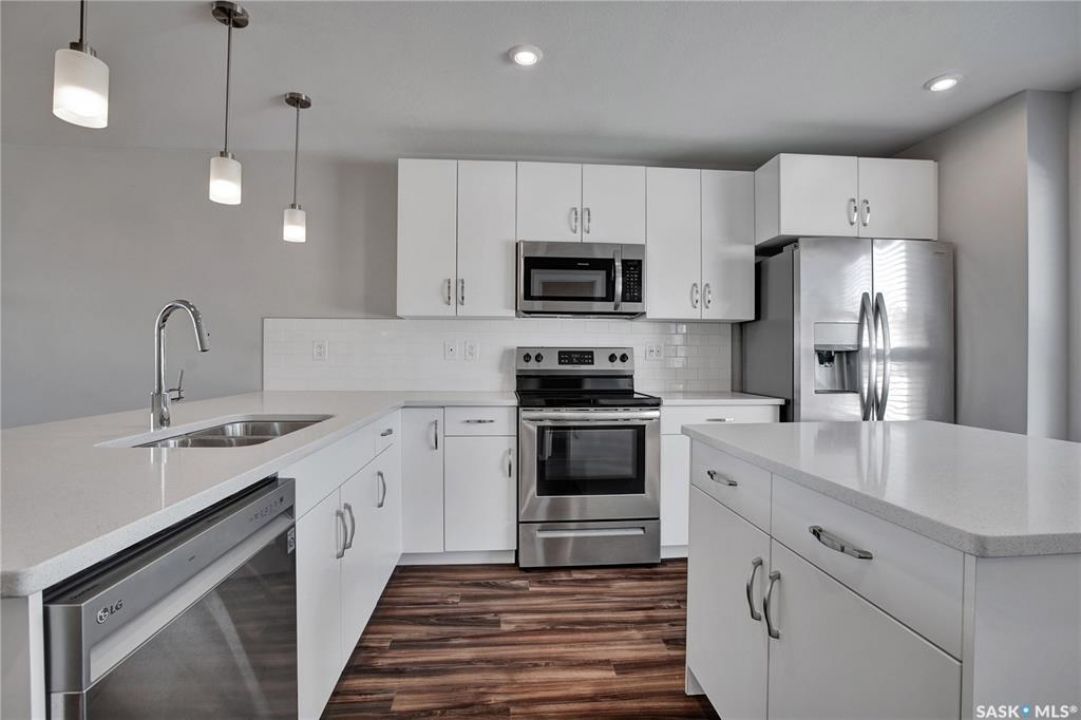 Welcome to 4166 Brighton Circle! This bright and inviting 2-storey townhouse is a fantastic find in the heart of Brighton—with no condo fees to worry about. The main floor offers an open concept layout with a modern kitchen featuring quartz countertops, stainless steel appliances, and a large island. Upstairs, you'll find a spacious primary bedroom with its own ensuite and walk-in closet, plus two more bedrooms, a full bath, and the convenience of second-floor laundry. The fully finished basement adds even more living space with a family room and bathroom. Outside, you'll love the fenced yard, large deck, and double detached garage. Located close to parks, shopping, and all the amenities Brighton has to offer, this home is move-in ready and waiting for you.