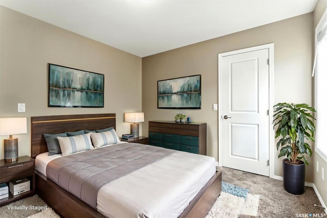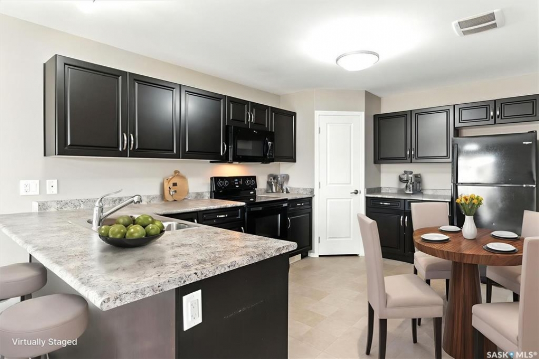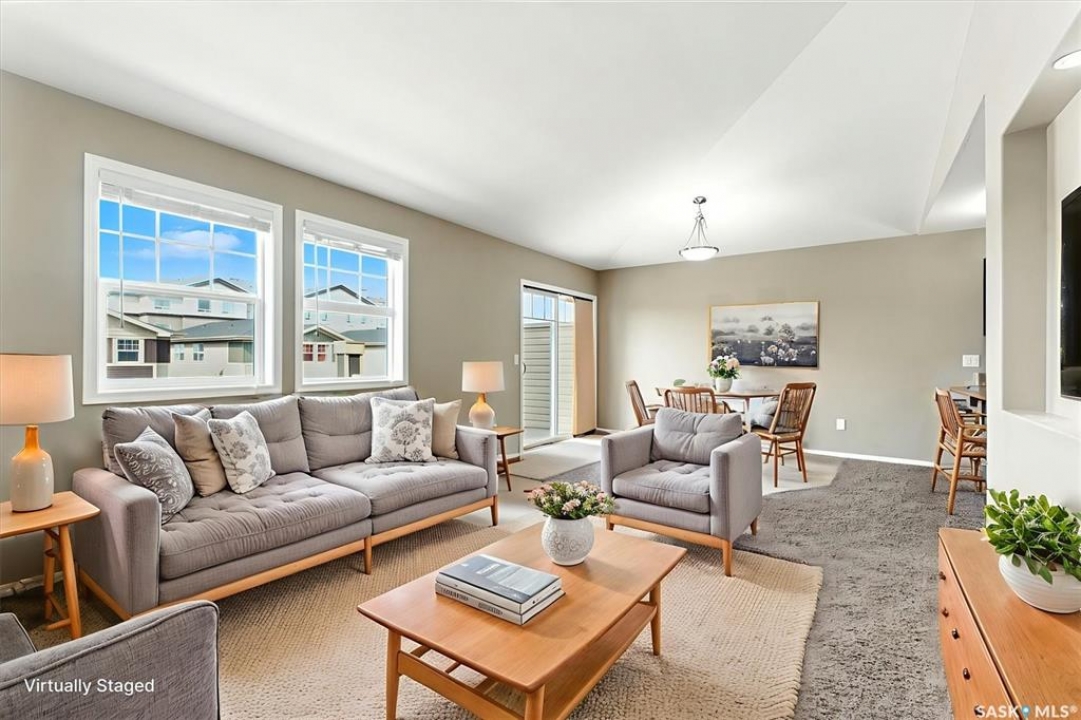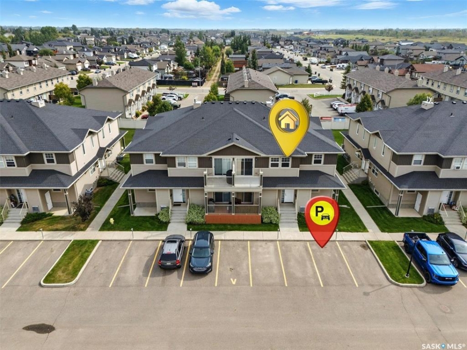 Welcome to Chaparral Ridge! This 2-bedroom, 1-bathroom townhouse is a must-see! Located in Chaparral Ridge on the Southern edge of Martensville, this home offers a perfect blend of style and comfort. The spacious kitchen is a chef's dream, featuring a corner pantry, ample cupboards and counter space. Relax and unwind on your west-facing balcony, perfect for enjoying evening sunsets. Inside, you'll find two generously sized bedrooms and a modern bathroom. Convenience is key with two electrified parking stalls, central air, additional storage space, and low condo fees. This home is vacant and ready for quick possession. Some photos are virtually staged so you can visualize furniture placement. Don't miss this opportunity to make this your new home! Quick possession available!