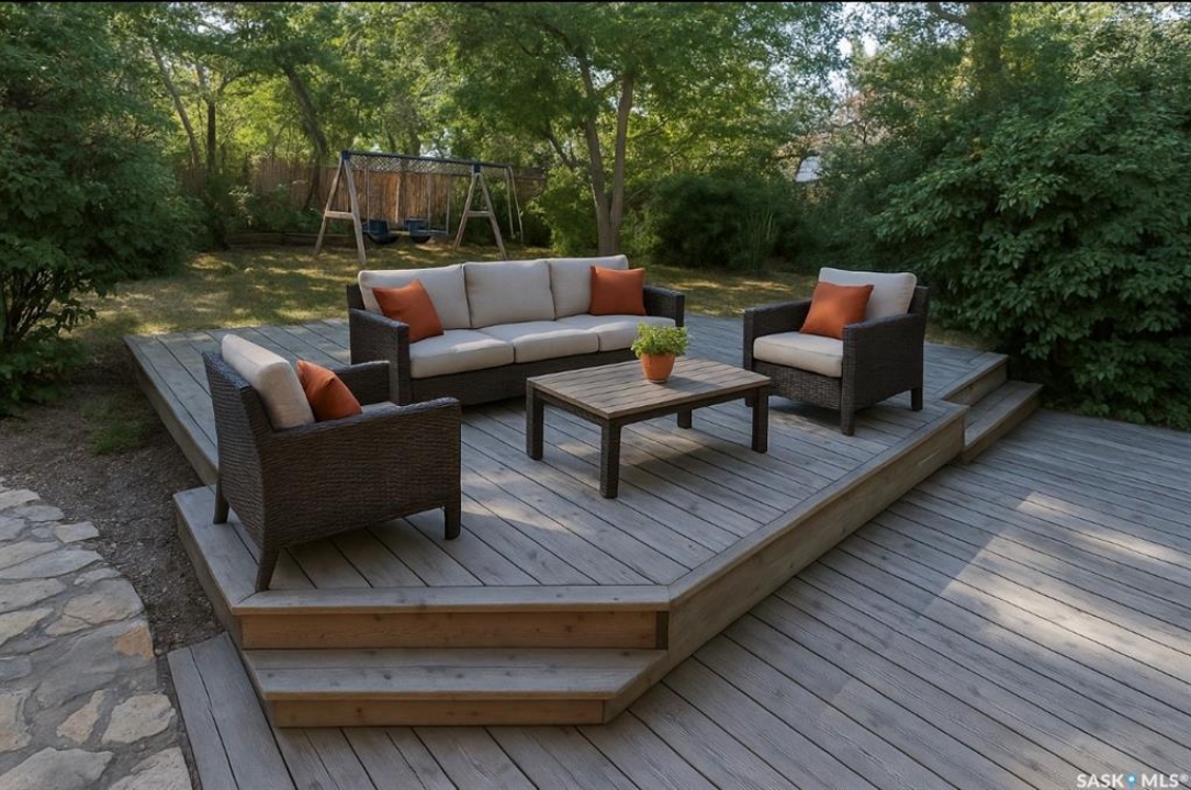 A Piece of Paradise in a Great Location! Furnished photos are virtually staged. Discover this stunning character home, offering approx. 2,600 sq. ft. of living space, nestled among a diverse array of trees that provide shade, privacy, vibrant color, and an acreage feel, all while enjoying the conveniences of town amenities. Lot Size: 125 ft. x 120 ft. Outdoor Features: Multiple deck, patio, and seating options; an east-facing patio for morning sunlight, and a west-facing deck perfect for relaxing in the warmth of the setting sun. This yard is private and sheltered, ensuring maximum enjoyment. Upon entering the home, you are welcomed by a spacious and charming front porch featuring wood trim, some original doors, and an impressive staircase leading to the second level, which is home to: * Three spacious bedrooms: The primary suite includes a walk-in closet and a recently added beautiful 5 pc. ensuite. Laundry room and the 4 piece bath was also renovated. Natural Light: Abundant light pours in through the fantastic windows; nine were replaced in 2017. Shingles and siding were completed at this time as well. The living room showcases a gas fireplace, installed in 2017, complete with a stacked stone surround and wood mantel. There's also a cozy office nook. Now, let's highlight the kitchen! Featuring a large island with a quartz countertop, it's perfect for entertaining. Large windows provide ample sunlight and beautiful views. Come and see it for yourself! This is where holiday traditions are created, and family memories are cherished, all within a space full of upgrades and comfort. Additional Features: A sunroom with skylights and patio doors leading to a large deck, walk-out basement, two-car detached garage, and off-street rear parking. Gas cooktop. Central air. With additions in 1986, 1999, and 2001, this home is a must-see. Local improvement levy has been added to the taxes.