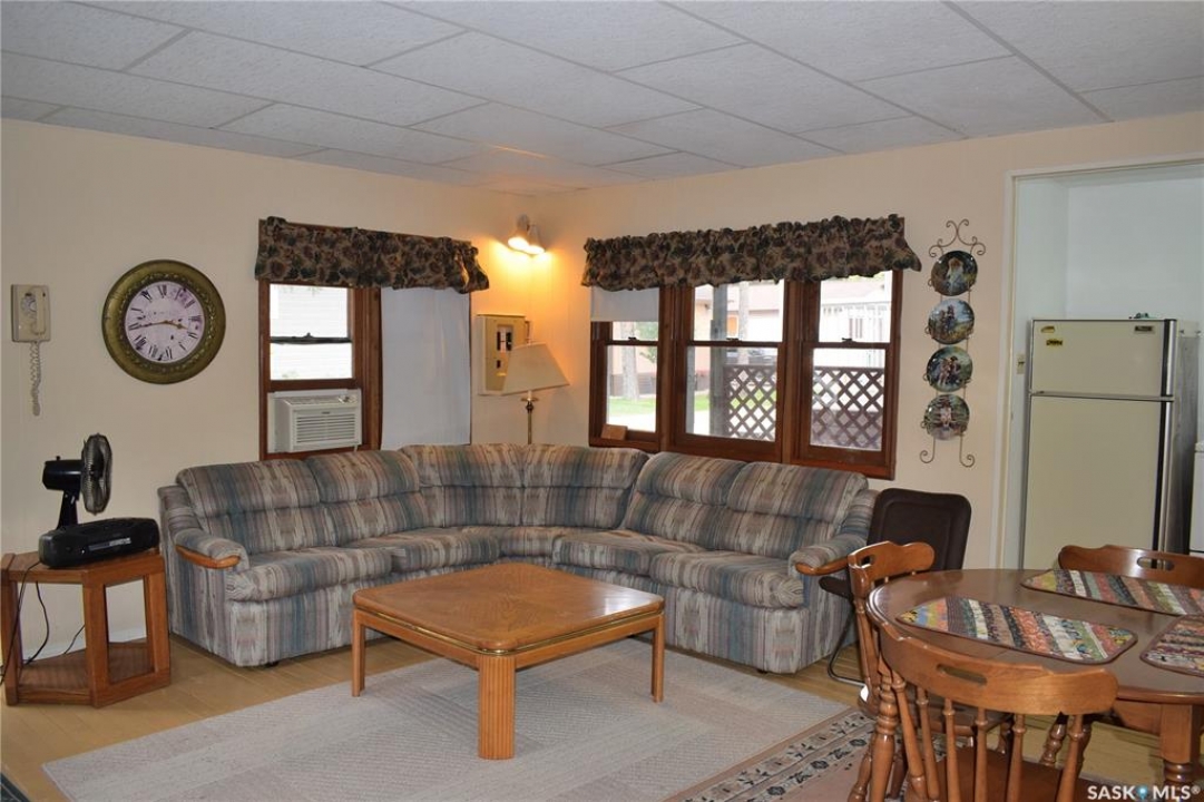 Charming Emma Lake Cabin! This 593 square foot seasonal cabin is on a leased lot in Sunnyside Co-op. Great location just steps away from Sunnyside Beach and close to many amenities including convenience store, restaurant, golf course, mini golf. Open concept living area with cozy wood burning stove. Two bedrooms. Private backyard with large deck, firepit and storage shed. Co-op fees are $375 per year and include water (May to September) and street maintenance. Yearly taxes are $972. Don't miss out on this perfect family getaway!