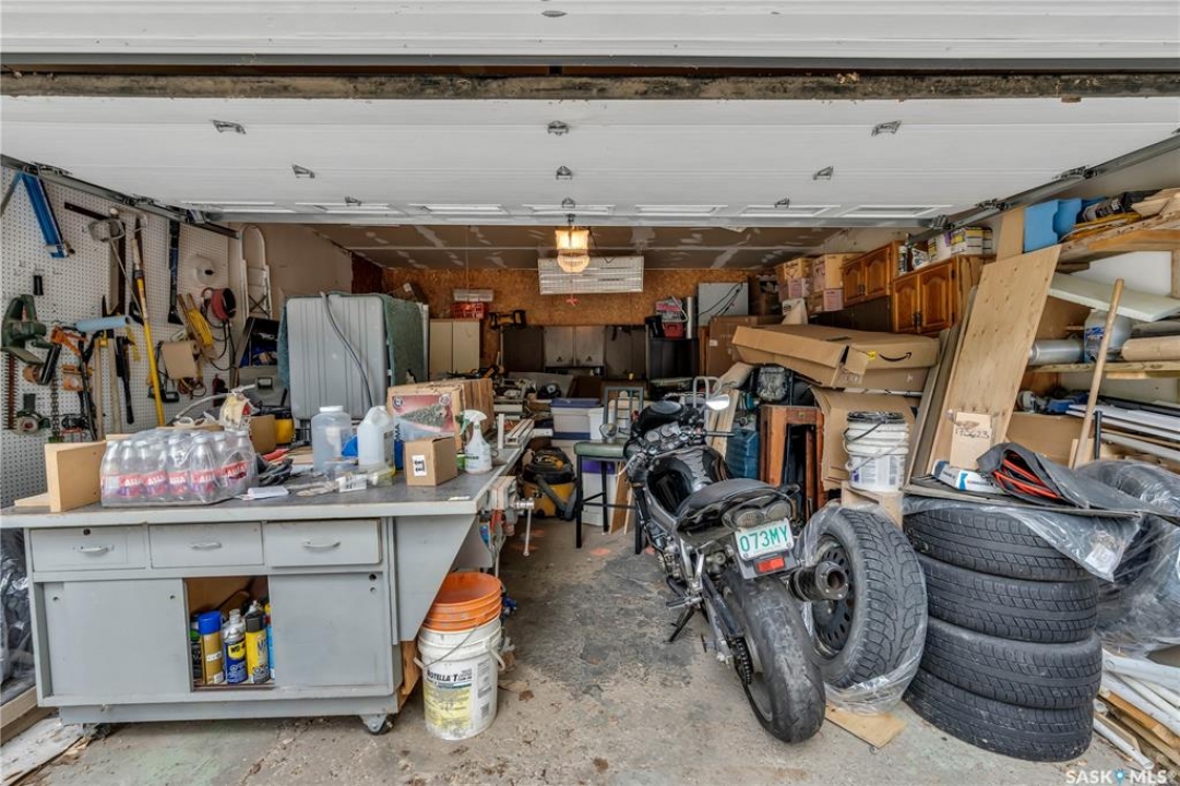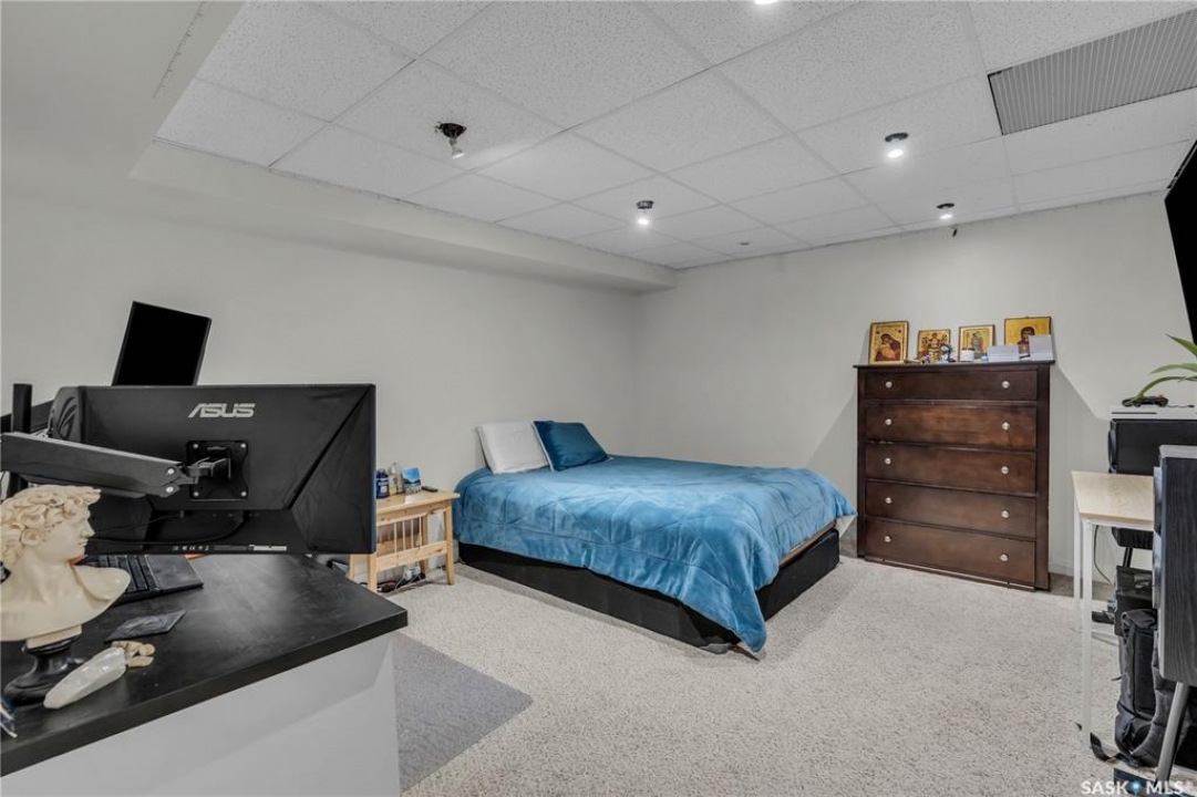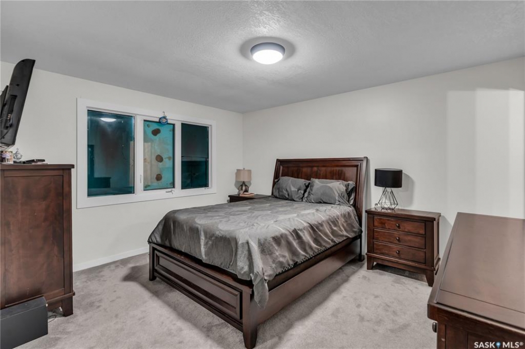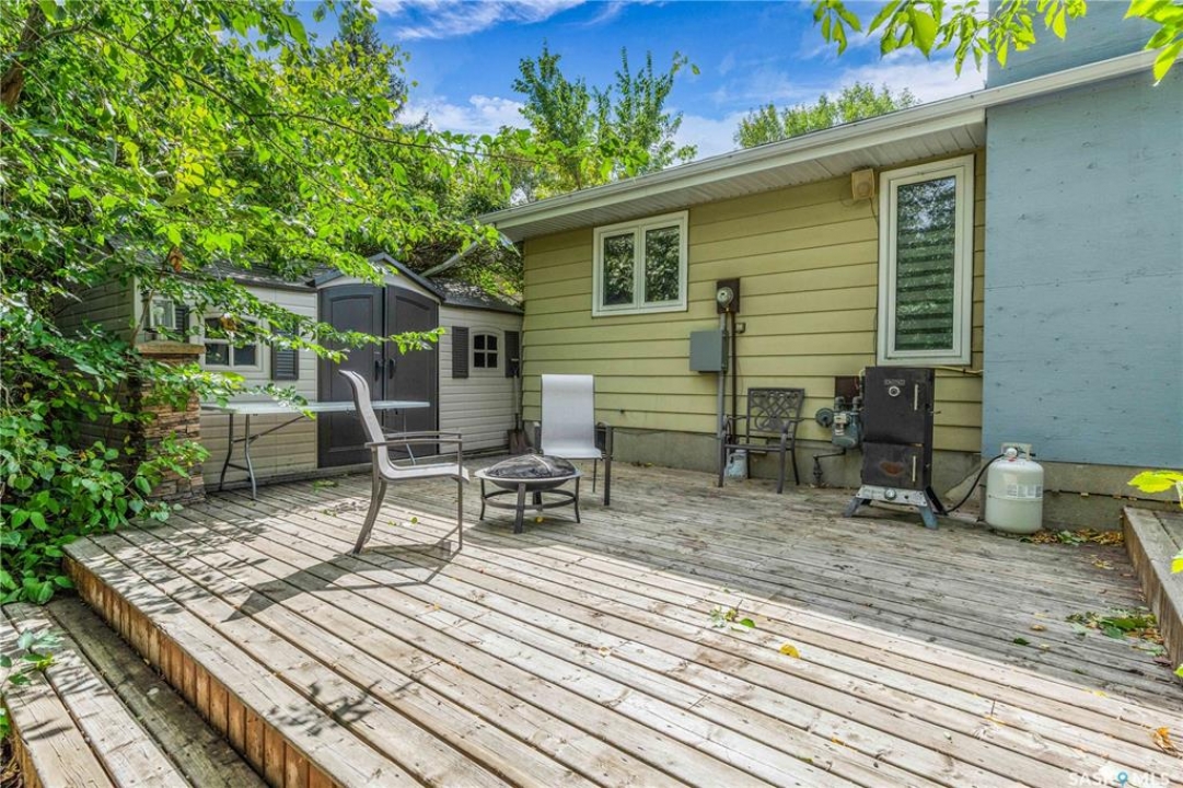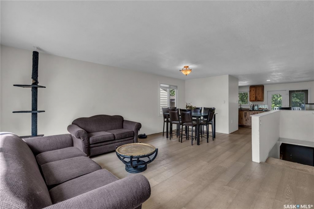 Welcome to this fantastic 1500 sq. ft. family home in highly desirable University Park, featuring many nice updates throughout. The main level is bright and inviting, boasting a very open concept layout ideal for modern family living and entertaining. Gleaming white oak hardwood floors flow throughout this space, connecting seamlessly with the beautifully updated kitchen, which serves as the heart of the home. Upstairs, you will find two spacious bedrooms and a primary suite that features a massive walk-in closet. This versatile space was originally a third bedroom and can easily be converted back, creating a functional three-bedroom-up layout if desired. The fully developed basement nearly doubles your living space, offering two additional large bedrooms, a recreation area, and a stunning, completely renovated bathroom with a custom tile shower and durable slate flooring. Enjoy the convenience of a double attached garage, complete with a 220v plug. The exterior includes a large yard and deck, ideal for enjoying our Saskatchewan summers. Situated on a quiet street, this home is just steps away from two great schools and offers quick access to all east end amenities.