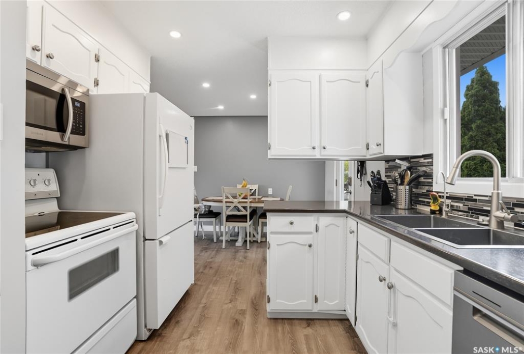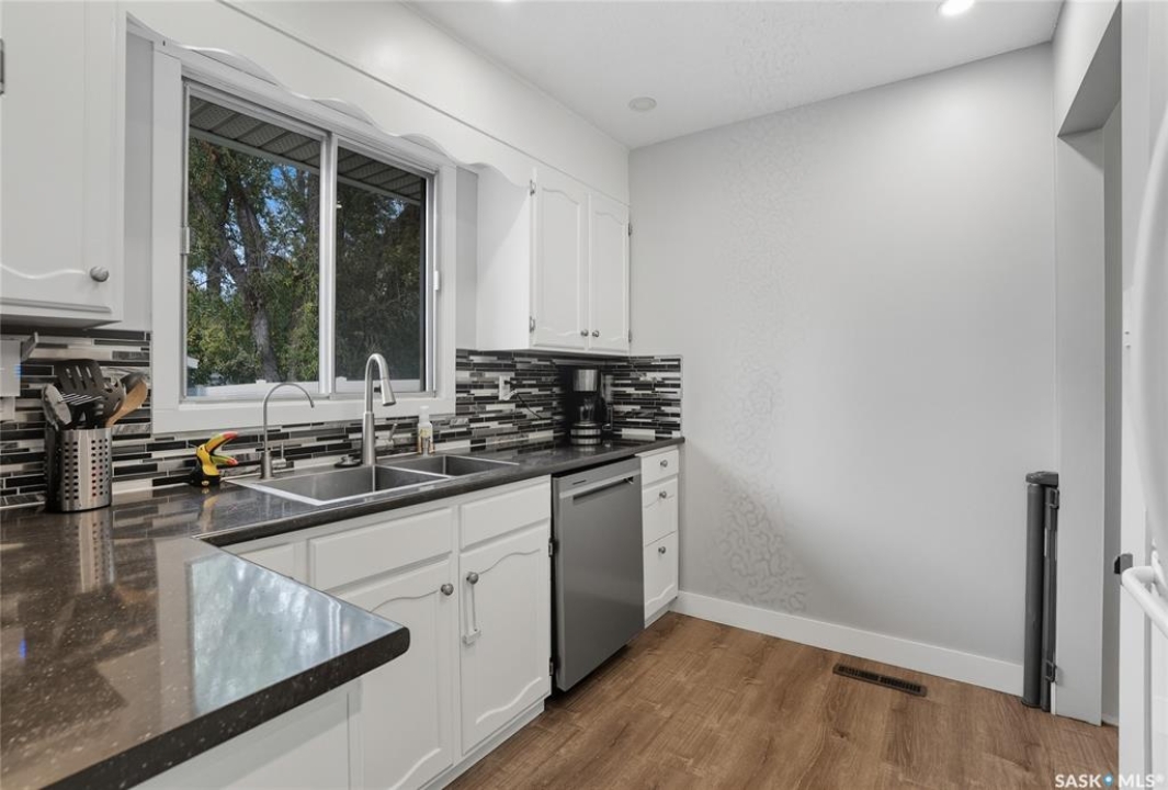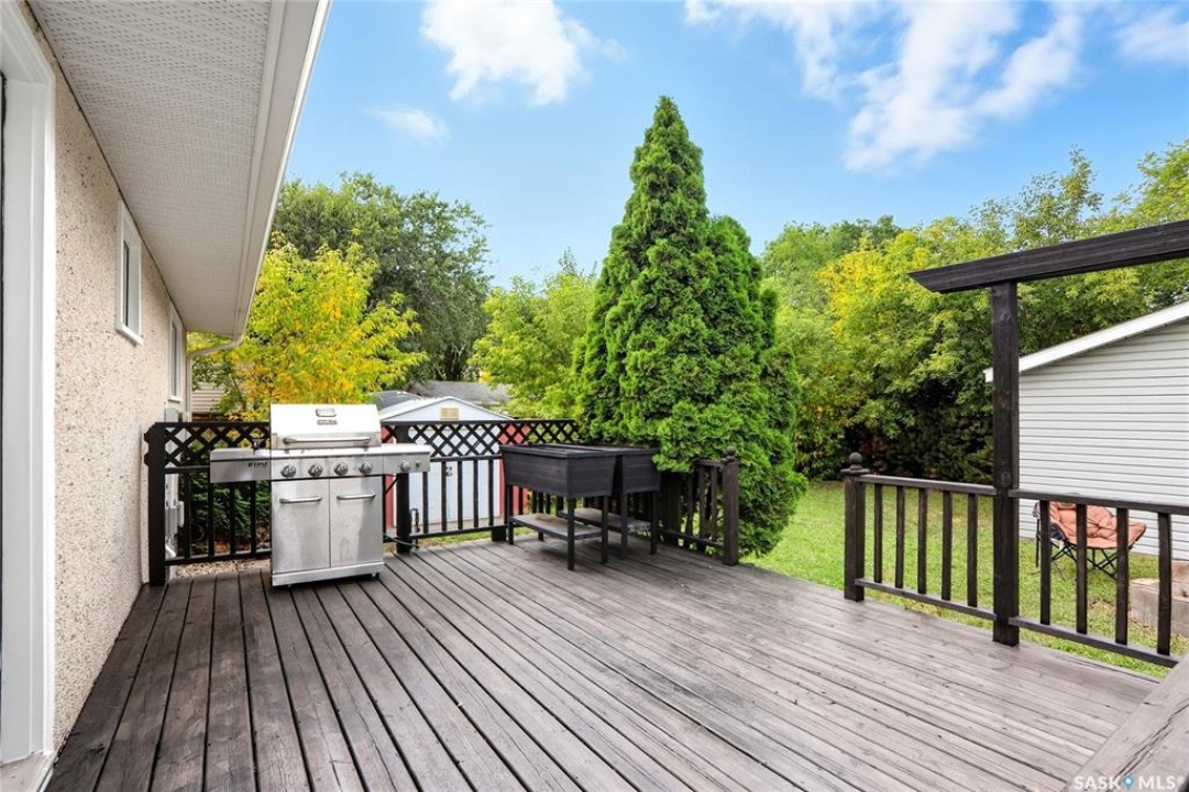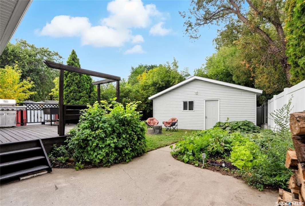 Welcome Home, to this quaint bungalow, with an abundance of renovations throughout! It's nestled in the quiet and sought after community of Eastview and features 3 bedrooms and 2 bathrooms (1-4pc & 1-3pc). Upon entering you are greeted by the charming living room with newer vinyl flooring and large windows to allow plenty of natural light. The harmonious flow leads you seamlessly into the efficiently designed kitchen and dining area, complete with all appliances for your convenience. A well-appointed pantry and generous cupboard & counter space ensures that all your culinary endeavors are met with ease and efficiency. The patio door opens up to a deck(freshly stained) and spacious backyard, perfect for outdoor gatherings and relaxation. The backyard further showcases a convenient double detached garage (insulated, 220V plug and RO in-floor heat, 24x26), garden area, fire pit, BBQ hook-up, underground sprinklers (back only) and shed. Lastly, moving to the finished basement boasting a larger recreation area, office space, 3-piece bathroom, laundry and utility rooms adds to the convenience and functionality of this home. Many upgrades throughout to note: Vinyl flooring (2019), full main floor bathroom (2019), baseboards & trim (2019), basement carpets (2025), Washer & dryer (2025), Dishwasher (2021), water heater (2019), AC (2022), Sub panel (2019), shingles on garage (2024), vinyl fencing (2025), the home has been repainted throughout, light fixtures updated and so much more. This home is ideally located to many local amenities: schools, parks, shopping and public transit which ensures a truly fulfilling lifestyle.