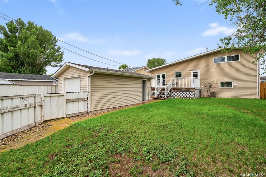 Welcome to this well-maintained home located in the desirable southwest corner of Moose Jaw, just steps away from the new Coteau Hills Elementary School, scheduled to open in the fall of 2025. The main floor features a spacious living room with a large front picture window that fills the space with natural light. Toward the rear of the home, you'll find a bright dining area with patio doors leading to a 10' x 20' deck—perfect for outdoor entertaining. The kitchen offers ample cabinetry and counter space to accommodate all your culinary and hosting needs. Upstairs, there are two generously sized bedrooms and a 4-piece bathroom. The lower level includes a large family room, additional storage, and a combined laundry/mechanical room with a convenient 2-piece bathroom. The fully fenced backyard offers green space, a deck, and a 16' x 22' detached garage. Recent updates include a high-efficiency furnace (2025), water heater (2020), bathroom upgrades, and updated windows. This move-in ready home offers a great blend of comfort and functionality—add it to your must-see list today!