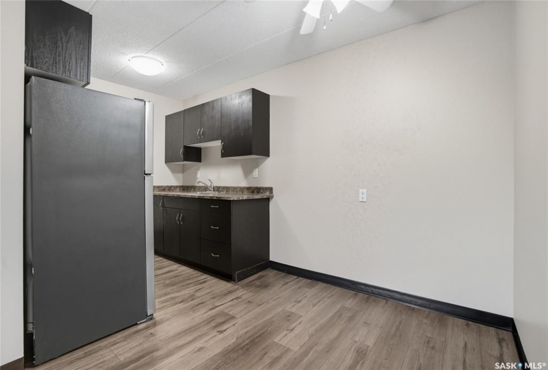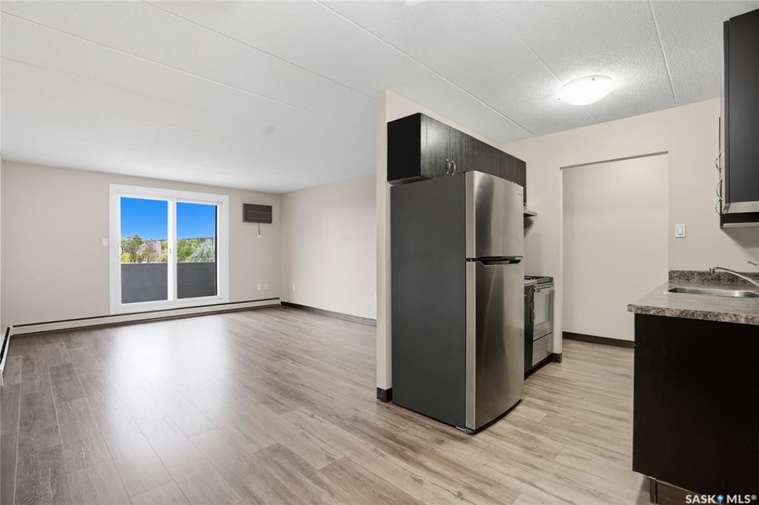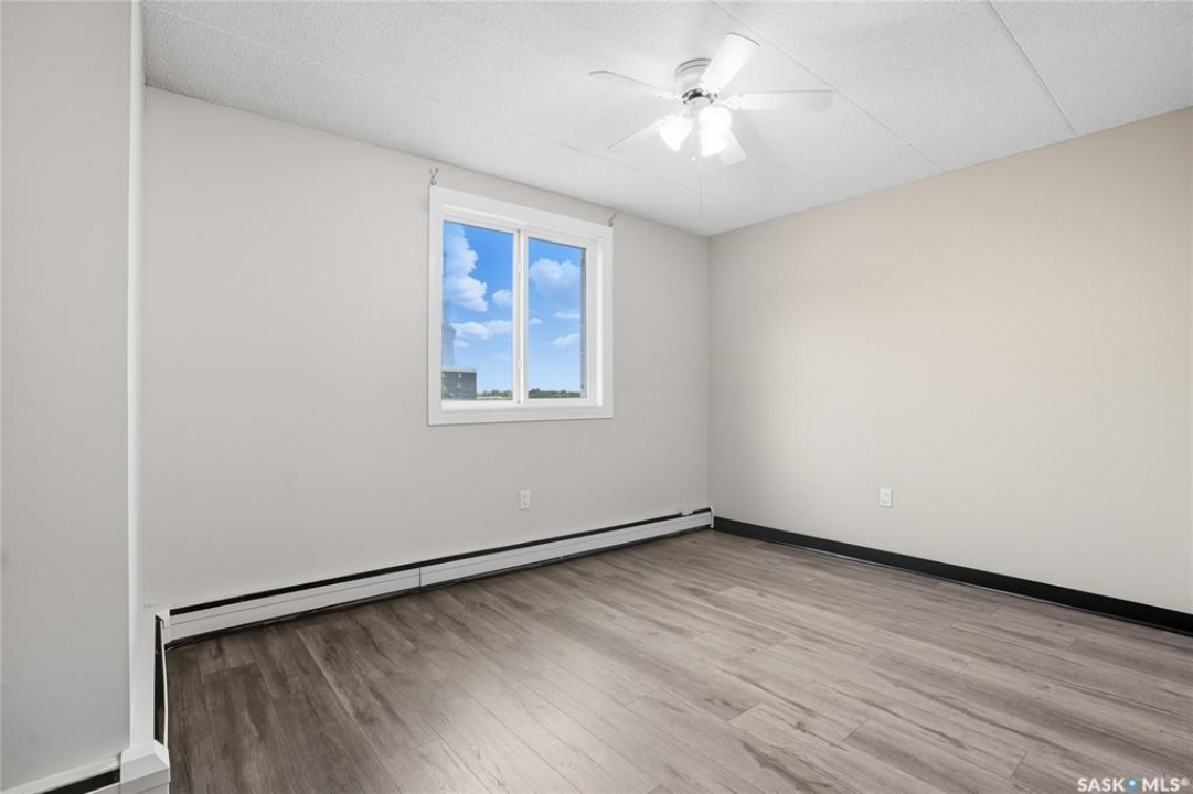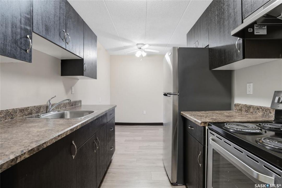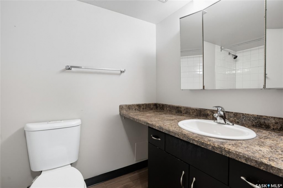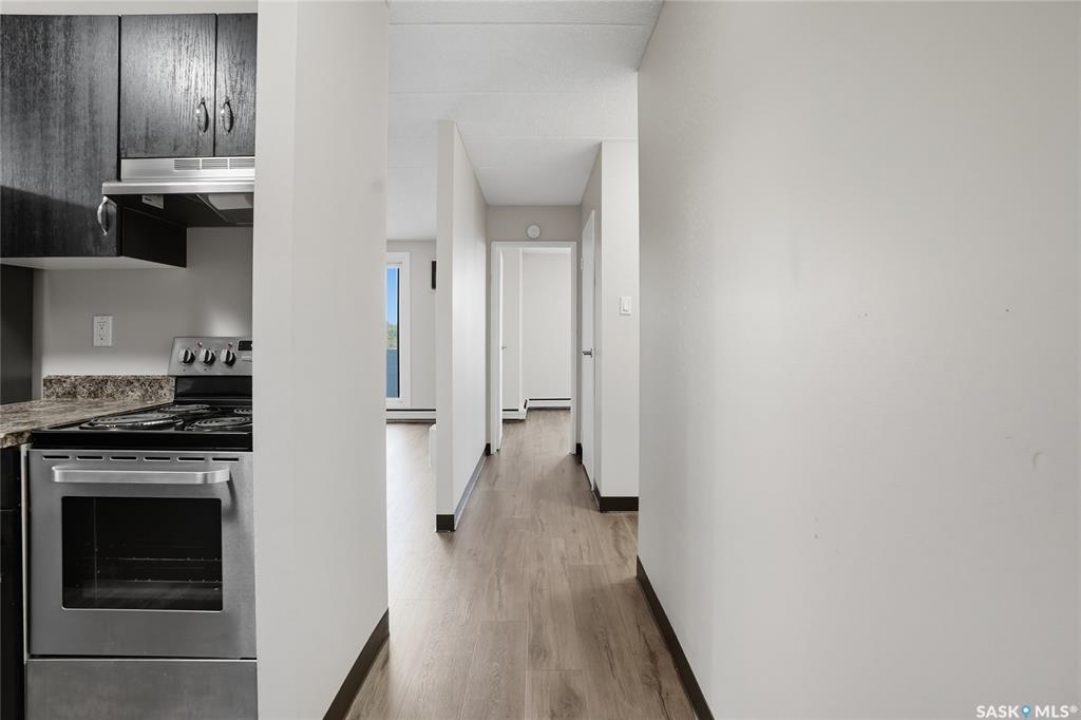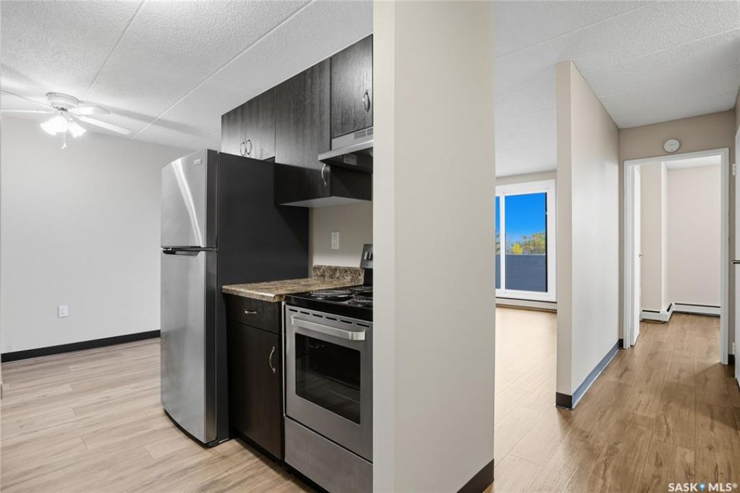 Nicely updated 1 bedroom unit in the Westfield Twins. Located on the 4th floor with a large balcony. New laminate flooring runs throughout the entire unit. The kitchen has dark cabinetry and a new countertop with stainless steel appliances. The dining room is off the kitchen and open to the living room which is a generous size with patio doors to your balcony. There is a good sized storage room down the hall with wire shelving ideal for pantry or linen space.The bedroom is spacious with a good sized closet. The 4 pc bathroom is conveniently located beside the bedroom with the same cabinetry as the kitchen. Amenities, amenities, amenities, this condo complex has so much to offer, including an indoor pool, hot tub and a fitness room that both have access to washrooms,change rooms and a sauna. In the same amenities building there is also a large space that can be rented out for gatherings with a private washroom and kitchen area, it is the perfect space for bridal showers, birthday parties, baby showers, board meetings, you name it! The condo building offers shared laundry, an elevator, one electrified parking space for this unit and the condo fees include your heat, power and water/sewer.