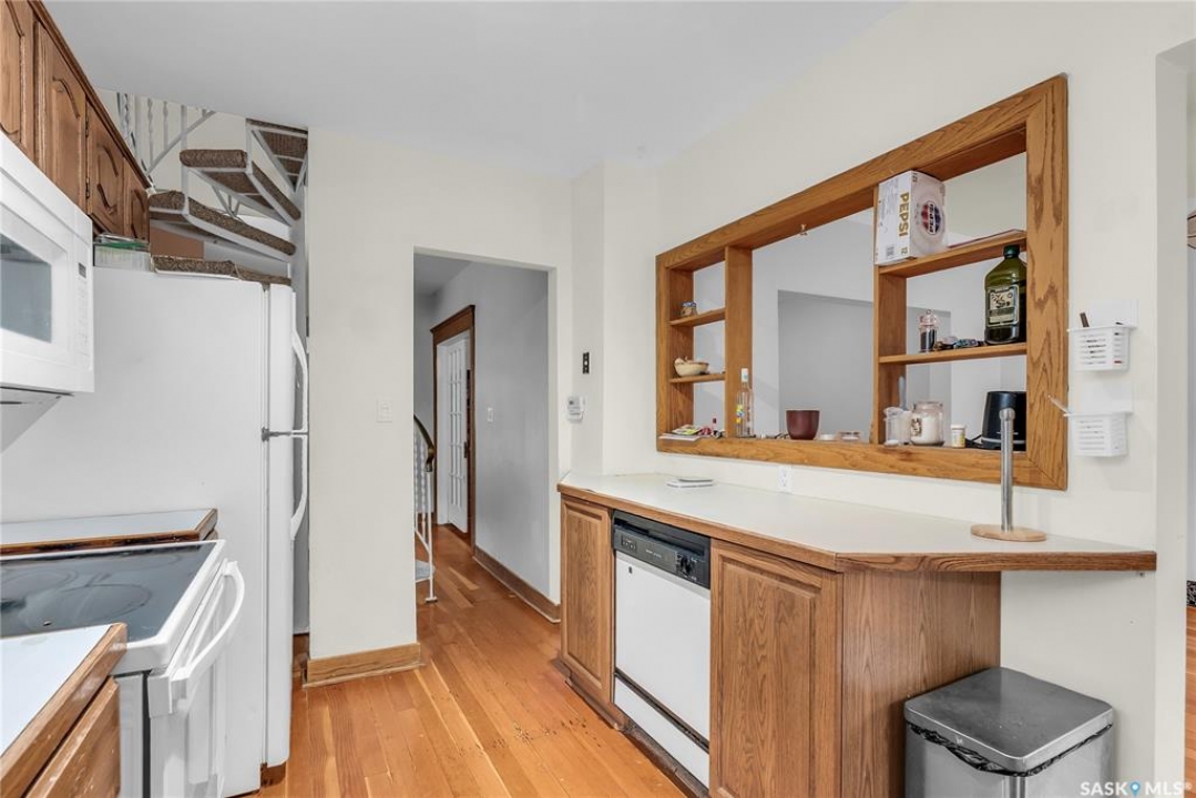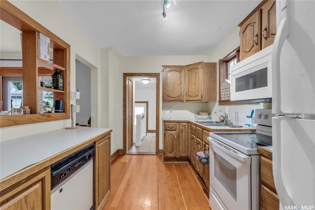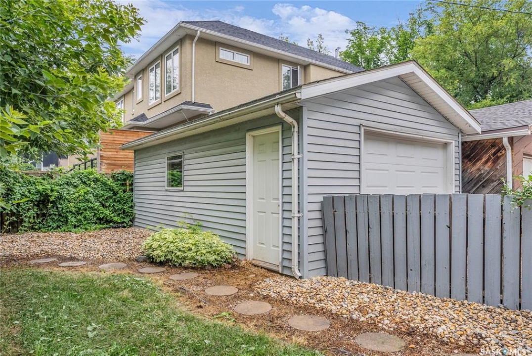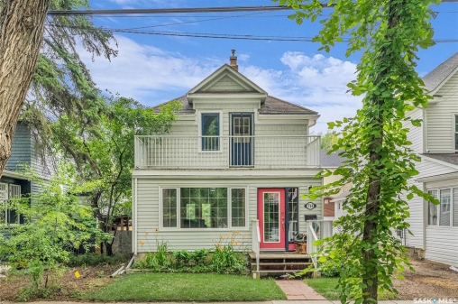 Welcome to 714 King St in desirable City Park! This charming 2-bedroom + den (could be used as a small bedroom) , 2-bath, 2-storey character home sits on a unique lot with a detached garage and a lovely backyard. The main floor features a bright kitchen, formal dining with deck access, spacious living room, and front sitting room. Upstairs offers a large primary, one additional bedroom & den, a clawfoot tub, and access to a fantastic front balcony. The basement includes a large family room, storage. With a front and rear mudroom, laundry, this home is both functional and full of character—perfectly located near City Hospital and downtown amenities.