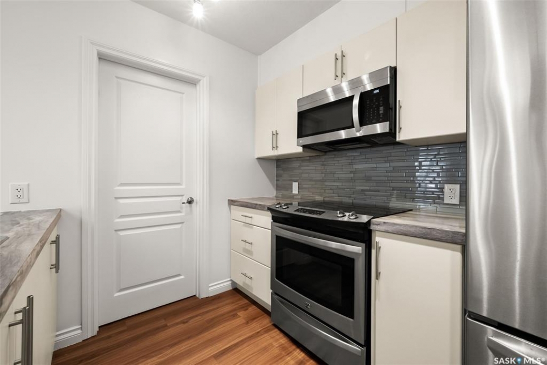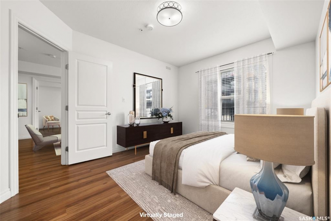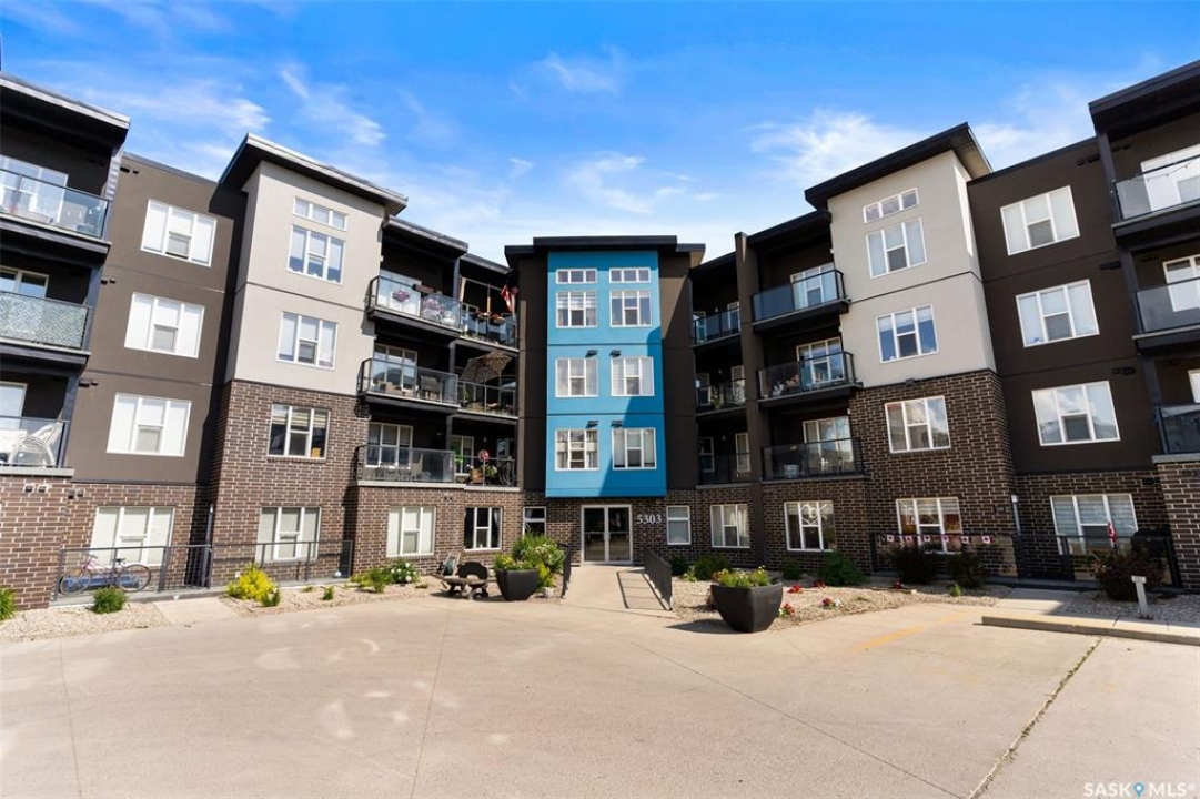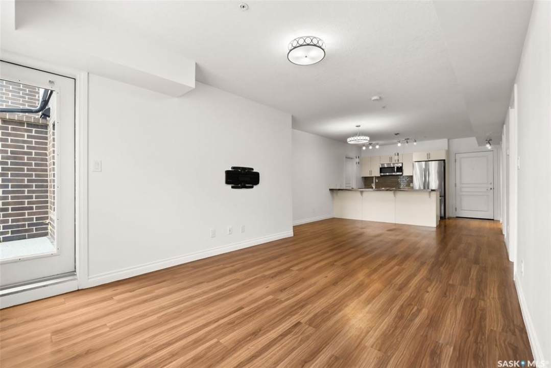Welcome to Fontaine Bleu, where style meets convenience in the heart of Harbour Landing. This vibrant community brings a touch of Miami flair to Regina with amenities designed for modern living—dog wash station, car wash, bike storage, fitness centre, and a stylish amenities room for gatherings. Inside, this bright, open-concept condo is instantly inviting with paint so fresh it looks brand new. The kitchen is a showstopper with sleek stainless steel appliances, an island with seating, and a walk-in pantry large enough for your small appliances—and even a deep freeze. Whether you're hosting friends or enjoying a quiet evening in, the living and dining areas offer the perfect canvas to create your ideal space. The primary suite feels like a private retreat, featuring a walk-thru closet and a 4-piece ensuite with space for a makeup vanity. A second bedroom also boasts a walk-thru closet and private access to the main bathroom, making it perfect for guests or a home office. For added convenience, you'll find an in-suite laundry room. Luxury vinyl plank flooring runs throughout—stylish, durable, and pet-friendly. Step out to your private patio to soak up the summer sun or nurture a garden of potted blooms. This unit also includes TWO underground parking stalls (#219 & #220)—a rare and valuable find. With Harbour Landing's walking paths, parks, and the Grasslands shops and restaurants just steps away, you'll love the lifestyle as much as the home itself. Condo fees cover heat, water, sewer, building insurance, maintenance, lawn care, snow removal, and reserve fund contributions, so you can enjoy peace of mind and hassle-free living. Move-in ready, pet-friendly, and packed with extras—this Fontaine Bleu condo is the perfect blend of comfort, convenience, and community.