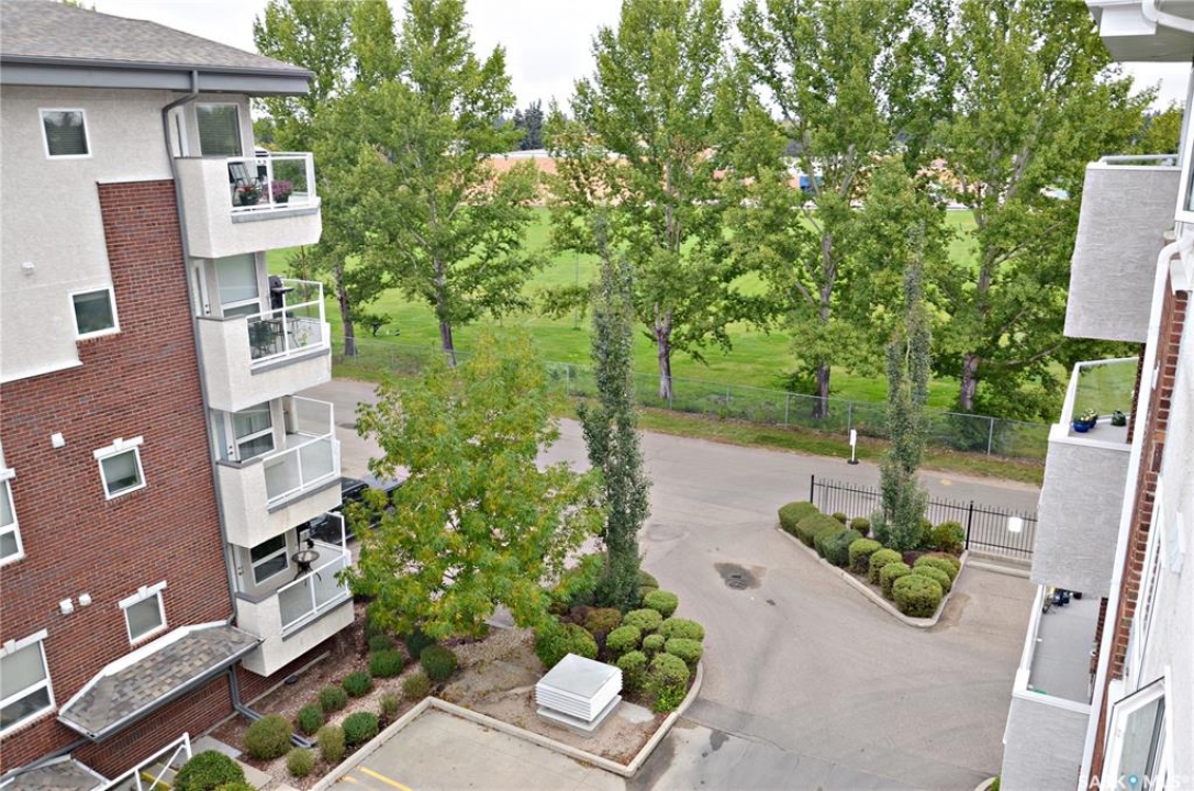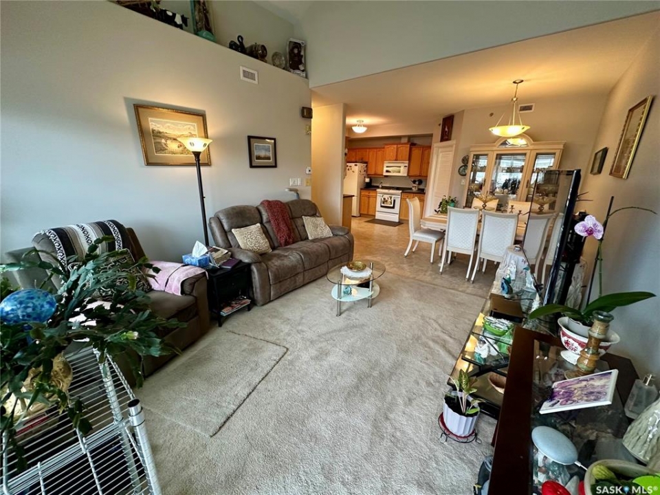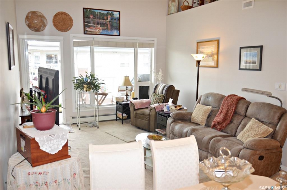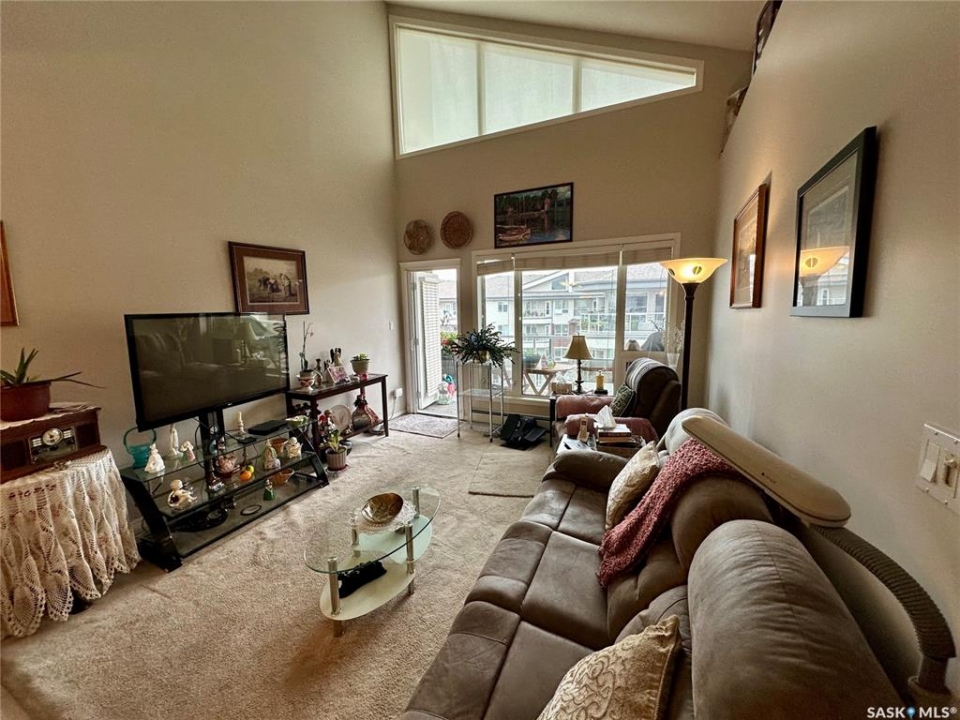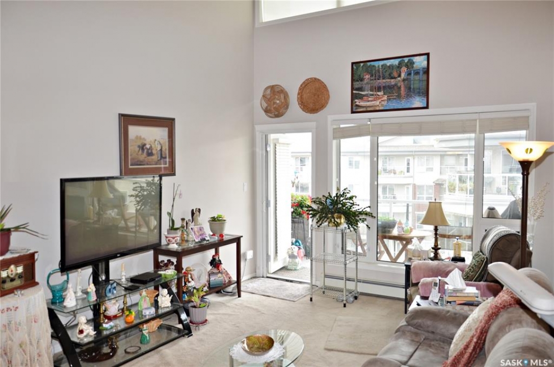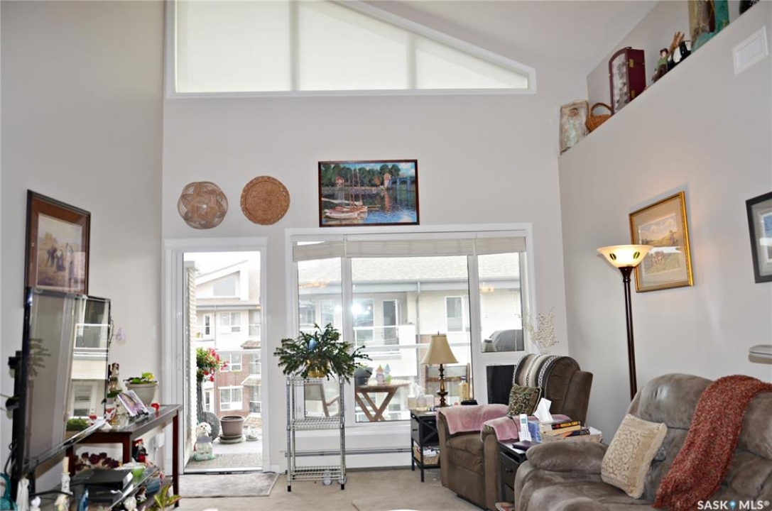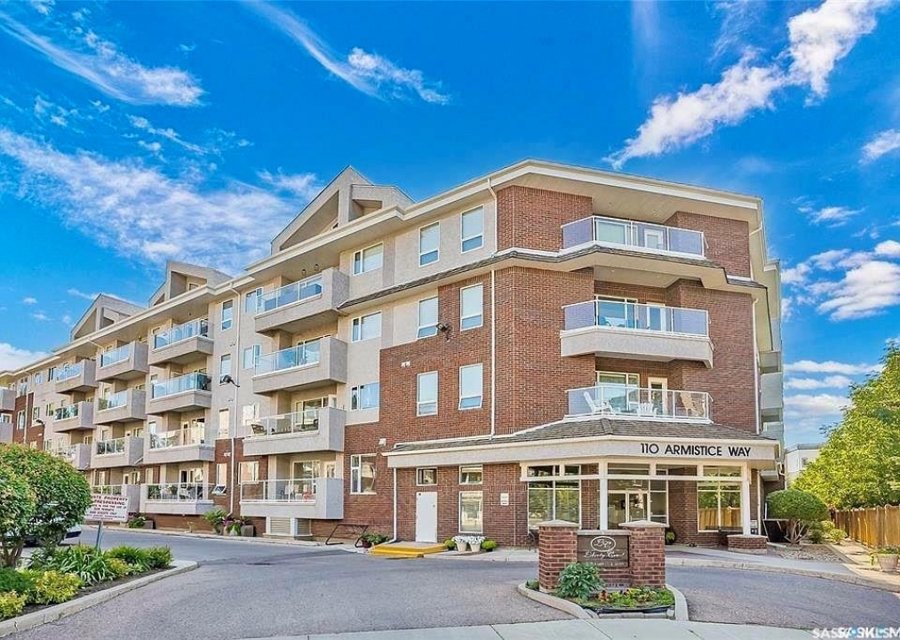 Welcome to 110 Armistice way in the sought after Nutana area! This bright and spacious top-floor unit with vaulted ceilings and extra windows offers incredible natural light throughout. This 947 sq. ft. 2-bedroom, 2-bathroom home features a large kitchen with all appliances, a living room with vaulted ceiling and garden door to a balcony with retractable screen. There is convenient in-suite laundry with storage space. The primary bedroom offers a walk-in closet and 3-piece ensuite, while the second bedroom is a generous size with easy access to the main bathroom with linen closet. Additional highlights include central air conditioning and one underground parking stall with a locked storage area in front. The well-maintained complex provides excellent amenities such as an activity room with kitchen, pool table, shuffleboard and library, plus a fitness room and plenty of visitor parking. Ideally located just steps away from Market Mall and shopping, this home combines comfort, convenience, and style.