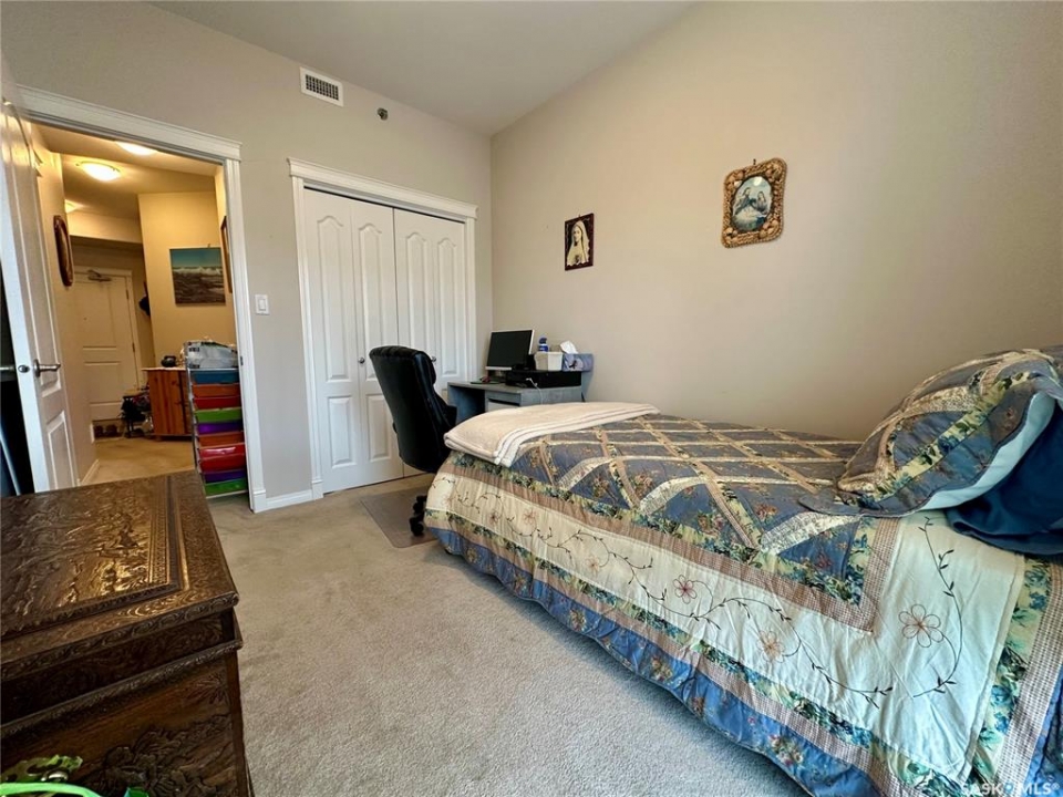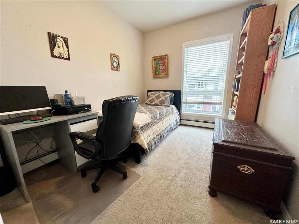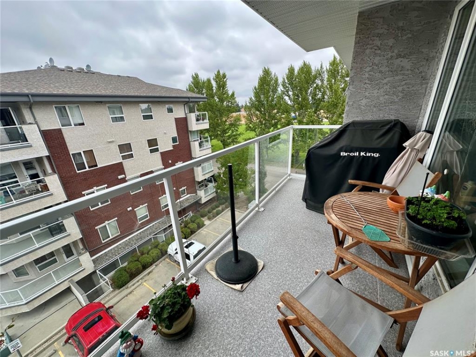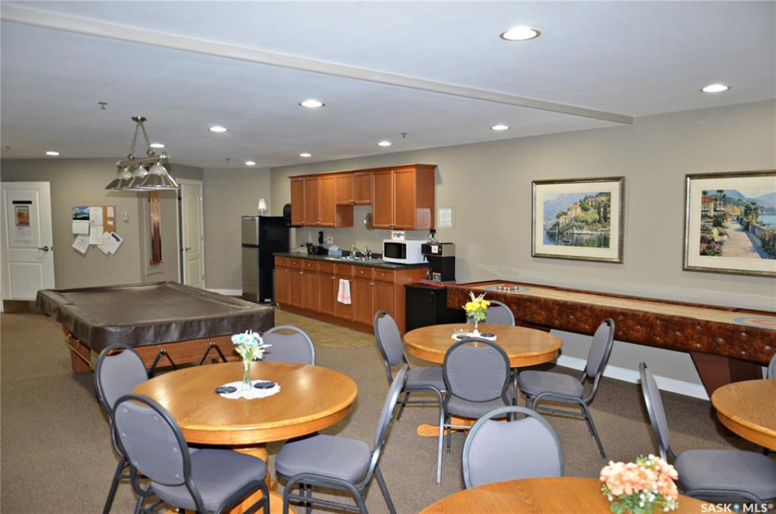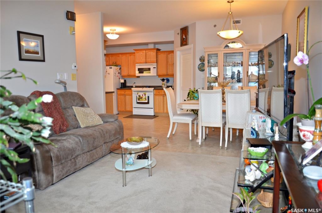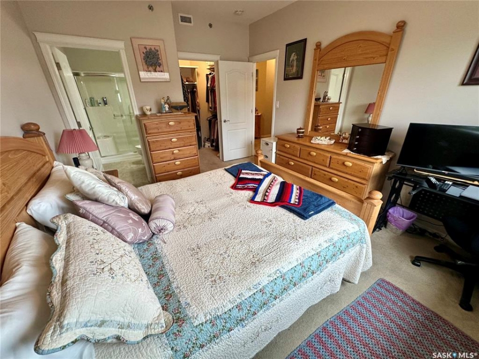 Welcome to 110 Armistice way in the sought after Nutana area! This bright and spacious top-floor unit with vaulted ceilings and extra windows offers incredible natural light throughout. This 947 sq. ft. 2-bedroom, 2-bathroom home features a large kitchen with all appliances, a living room with vaulted ceiling and garden door to a balcony with retractable screen. There is convenient in-suite laundry with storage space. The primary bedroom offers a walk-in closet and 3-piece ensuite, while the second bedroom is a generous size with easy access to the main bathroom with linen closet. Additional highlights include central air conditioning and one underground parking stall with a locked storage area in front. The well-maintained complex provides excellent amenities such as an activity room with kitchen, pool table, shuffleboard and library, plus a fitness room and plenty of visitor parking. Ideally located just steps away from Market Mall and shopping, this home combines comfort, convenience, and style.