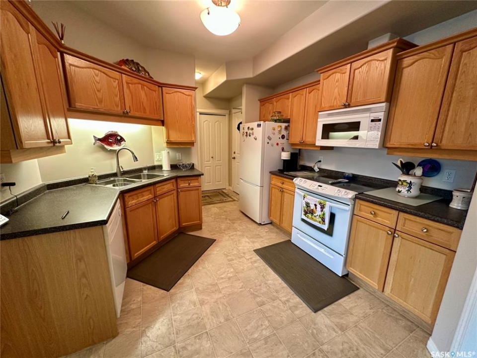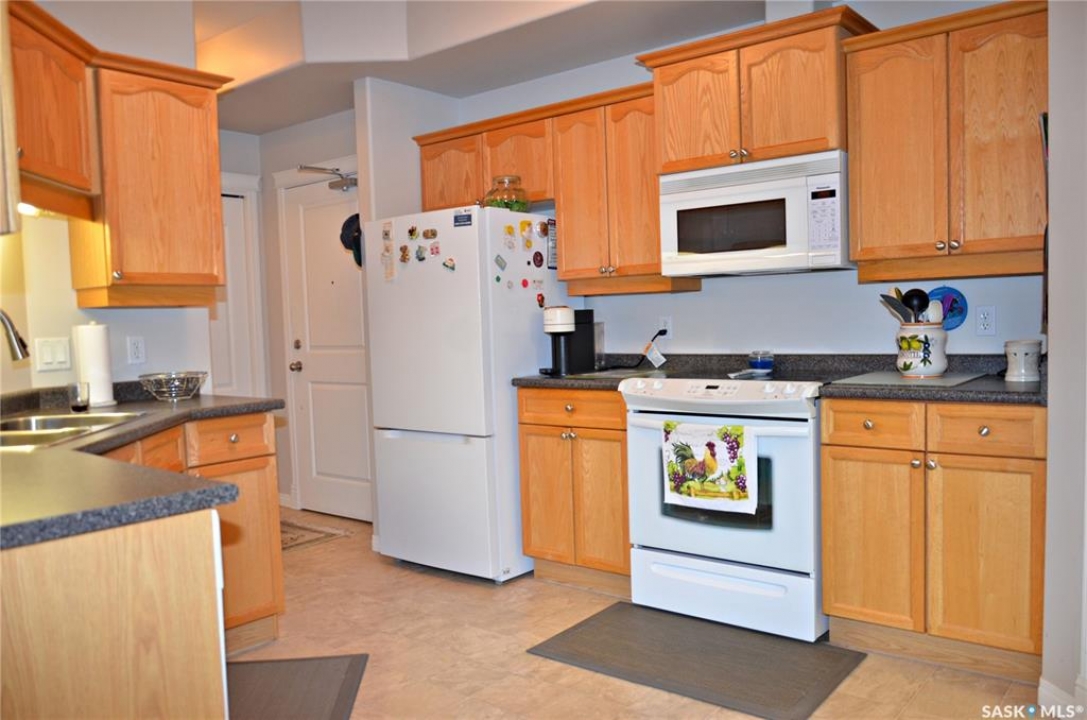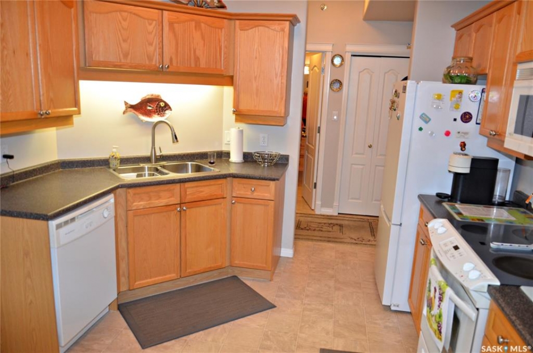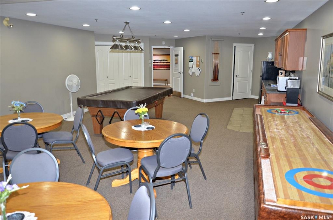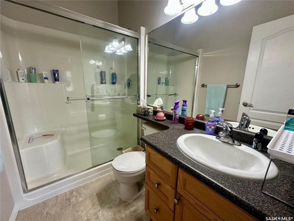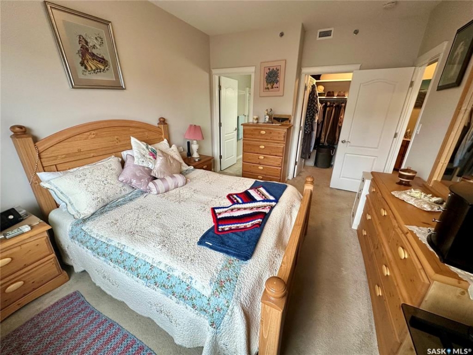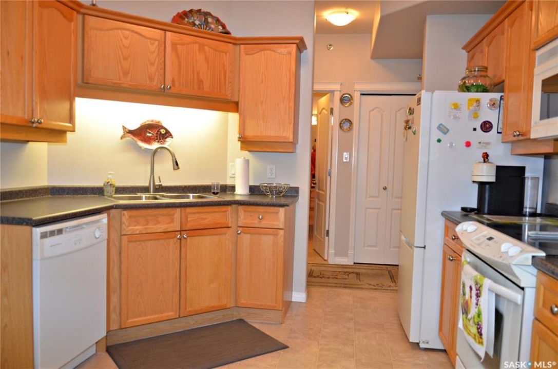 Welcome to 110 Armistice way in the sought after Nutana area! This bright and spacious top-floor unit with vaulted ceilings and extra windows offers incredible natural light throughout. This 947 sq. ft. 2-bedroom, 2-bathroom home features a large kitchen with all appliances, a living room with vaulted ceiling and garden door to a balcony with retractable screen. There is convenient in-suite laundry with storage space. The primary bedroom offers a walk-in closet and 3-piece ensuite, while the second bedroom is a generous size with easy access to the main bathroom with linen closet. Additional highlights include central air conditioning and one underground parking stall with a locked storage area in front. The well-maintained complex provides excellent amenities such as an activity room with kitchen, pool table, shuffleboard and library, plus a fitness room and plenty of visitor parking. Ideally located just steps away from Market Mall and shopping, this home combines comfort, convenience, and style.