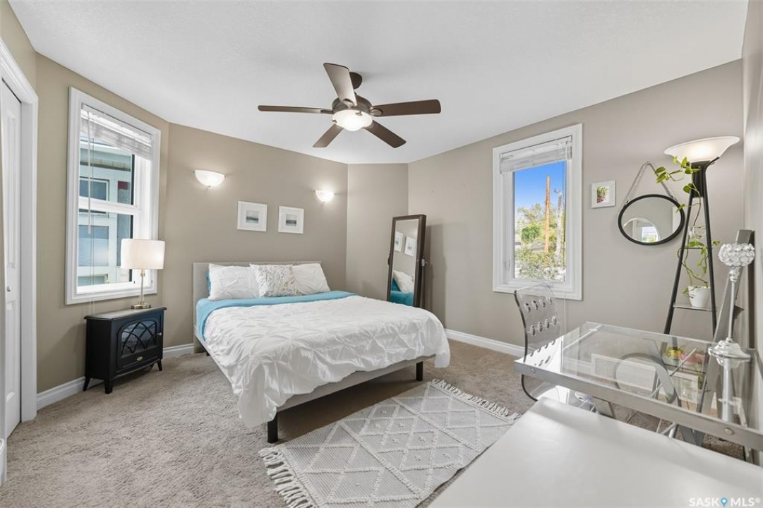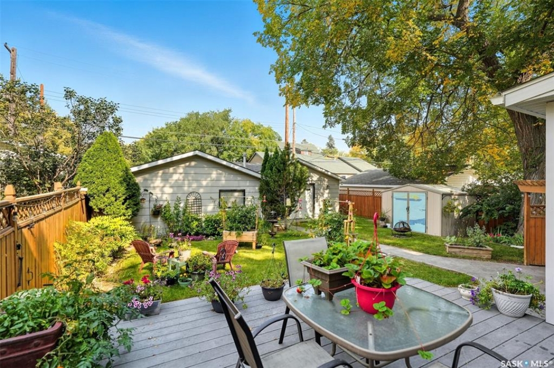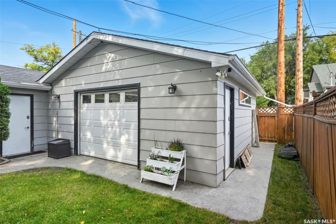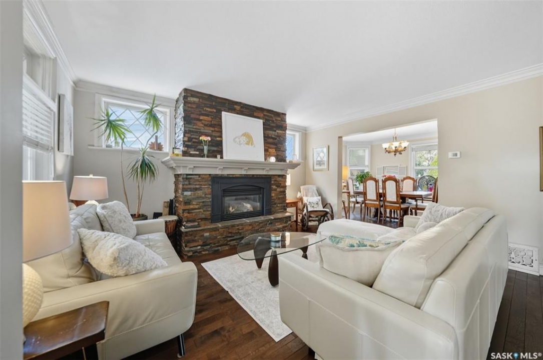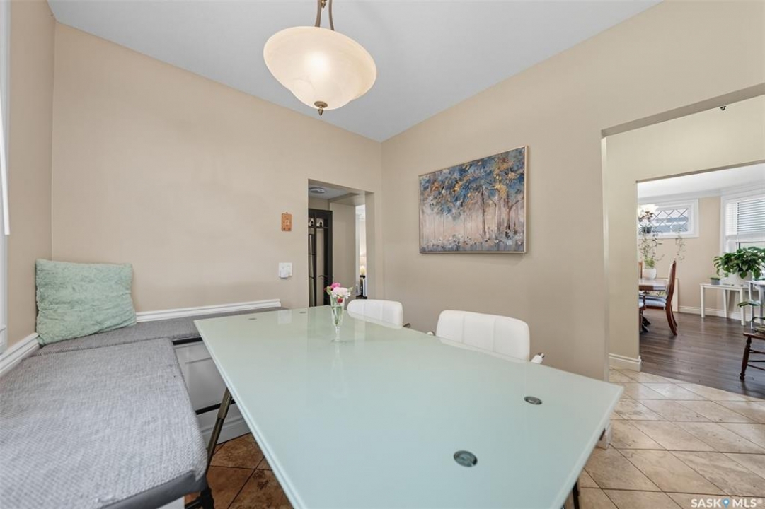 This beautifully maintained 2 � storey character home offers 2,310 sq. ft. on three levels, blending timeless charm with modern upgrades in the heart of Caswell Hill. A welcoming front veranda (27' x 9') sets the stage before entering a den with glass French doors, stained-glass accents, and built-in shelving — perfect as a home office or TV space. The main floor features hardwood floors, a living room with gas fireplace and stone mantle, and a spacious formal dining room with a wet bar and custom desk area. The updated kitchen includes maple cabinetry, granite countertops, stainless steel farmhouse sink, pot filler, stone backsplash, in-floor heat, and appliances, with a built-in seating nook that provides a cozy spot for casual meals. Upstairs offers 3 bedrooms in total: two on the second level including a master with private veranda, plus a flexible third-level bedroom or studio. The second-floor bath features a jet tub and freestanding shower. The fully developed basement adds versatility with a bedroom, refreshed bath, and a new wet bar with cabinetry, sink, fridge, dishwasher, and heated porcelain tile flooring — ideal for entertaining or guest use, with a separate side entrance enhancing convenience. Outdoor spaces include a three-season sunroom, backyard deck (15'11” x 15'10”) with gas BBQ hookup, stamped concrete, perennial landscaping, and RV parking. A highlight of the property is the 42' x 30' heated detached garage, offering abundant space for vehicles, hobbies, or a year-round workshop. High-efficiency furnace, air conditioner, and water heater (2011). Complete with central vac, shed, and appliances included, this Caswell Hill gem is listed at $539,900 (MLS �).