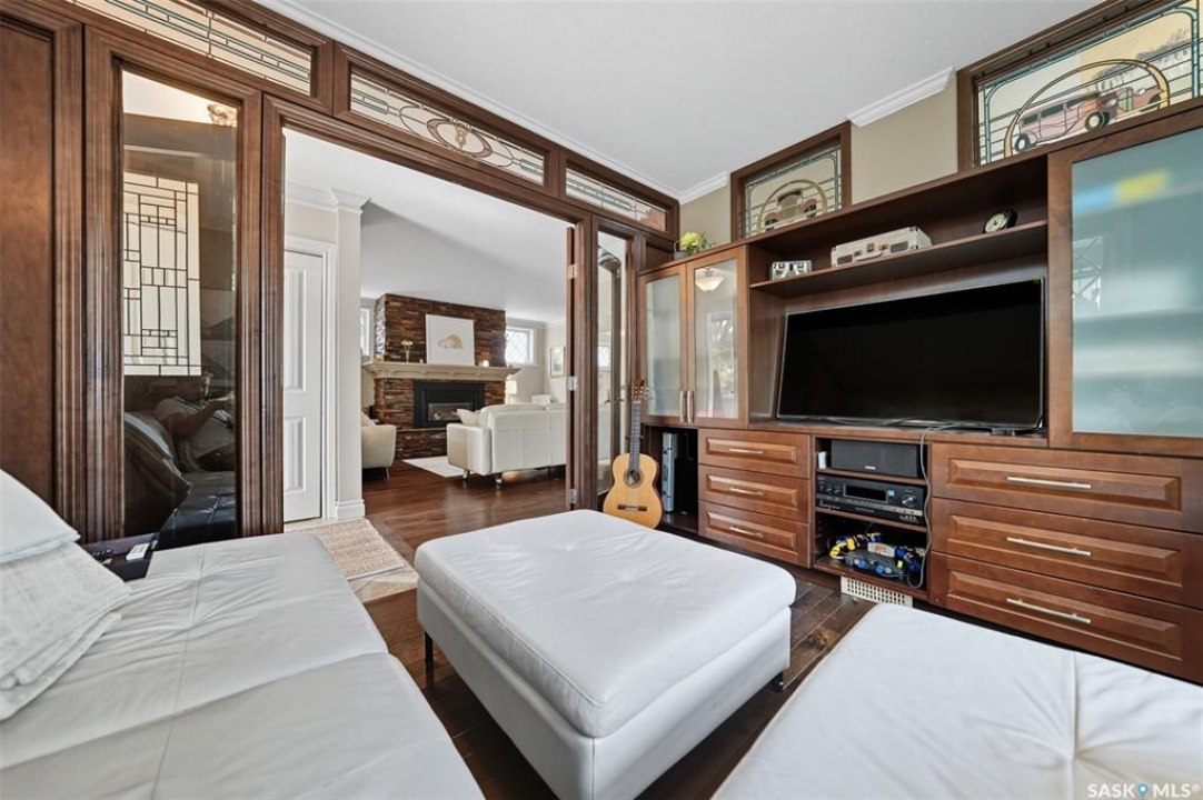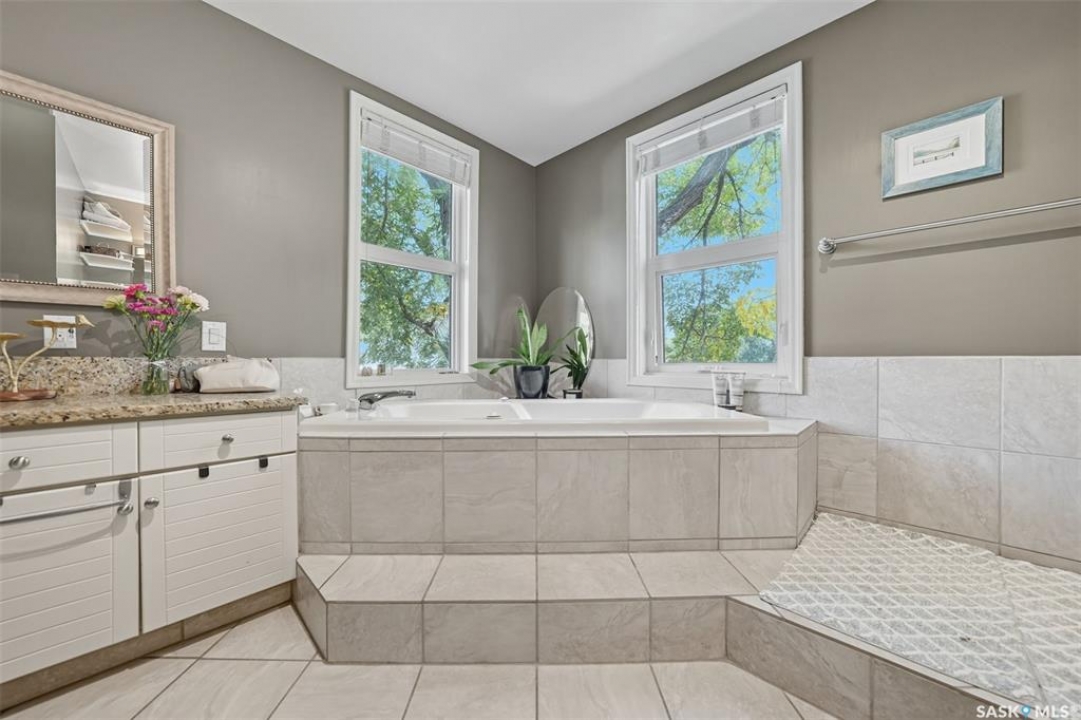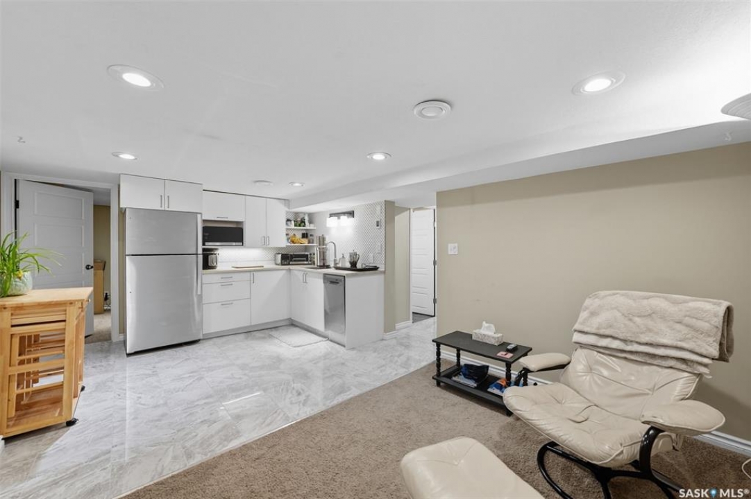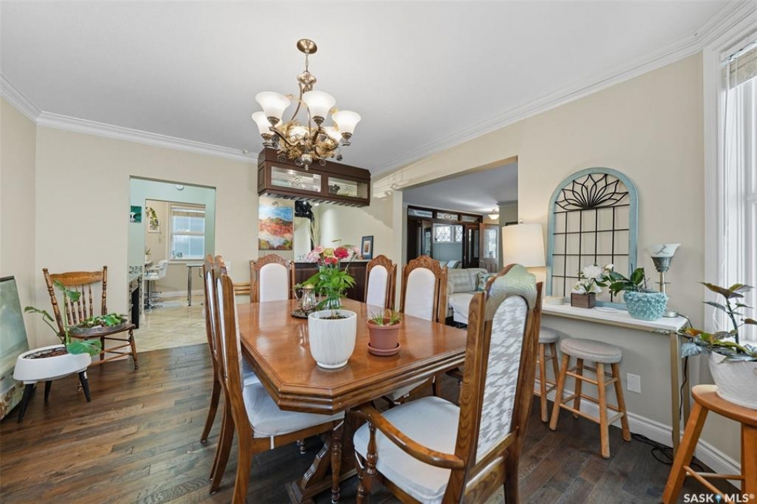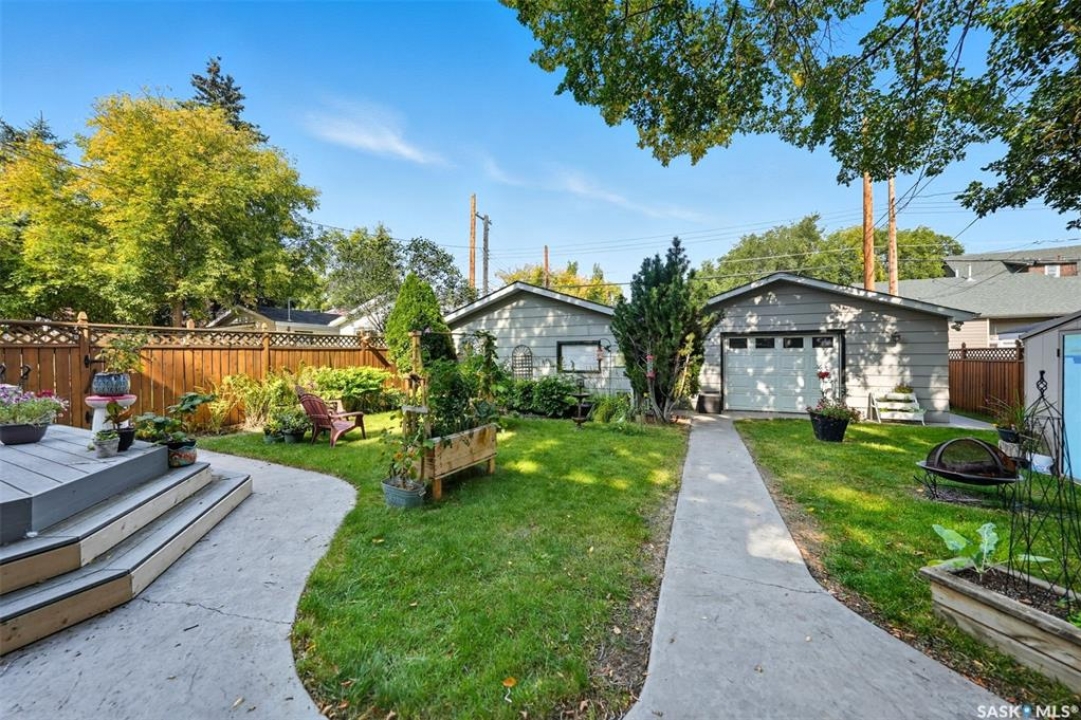 This beautifully maintained 2 � storey character home offers 2,310 sq. ft. on three levels, blending timeless charm with modern upgrades in the heart of Caswell Hill. A welcoming front veranda (27' x 9') sets the stage before entering a den with glass French doors, stained-glass accents, and built-in shelving — perfect as a home office or TV space. The main floor features hardwood floors, a living room with gas fireplace and stone mantle, and a spacious formal dining room with a wet bar and custom desk area. The updated kitchen includes maple cabinetry, granite countertops, stainless steel farmhouse sink, pot filler, stone backsplash, in-floor heat, and appliances, with a built-in seating nook that provides a cozy spot for casual meals. Upstairs offers 3 bedrooms in total: two on the second level including a master with private veranda, plus a flexible third-level bedroom or studio. The second-floor bath features a jet tub and freestanding shower. The fully developed basement adds versatility with a bedroom, refreshed bath, and a new wet bar with cabinetry, sink, fridge, dishwasher, and heated porcelain tile flooring — ideal for entertaining or guest use, with a separate side entrance enhancing convenience. Outdoor spaces include a three-season sunroom, backyard deck (15'11” x 15'10”) with gas BBQ hookup, stamped concrete, perennial landscaping, and RV parking. A highlight of the property is the 42' x 30' heated detached garage, offering abundant space for vehicles, hobbies, or a year-round workshop. High-efficiency furnace, air conditioner, and water heater (2011). Complete with central vac, shed, and appliances included, this Caswell Hill gem is listed at $539,900 (MLS �).