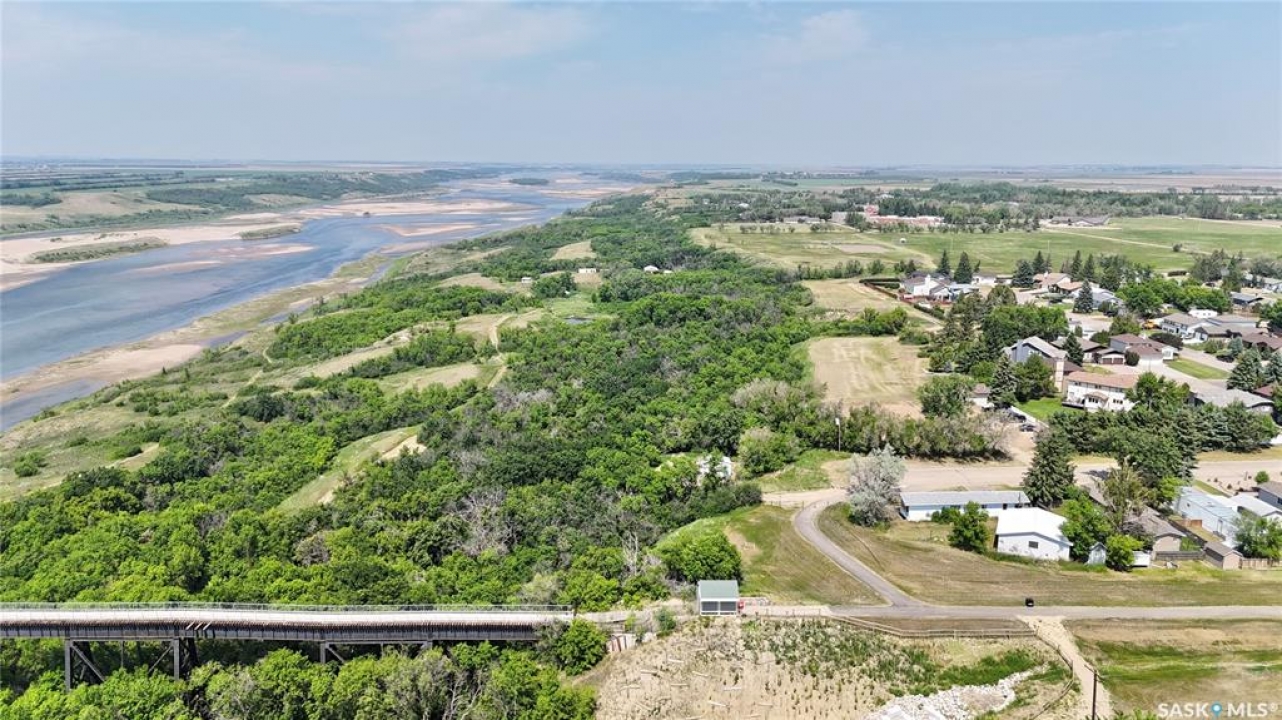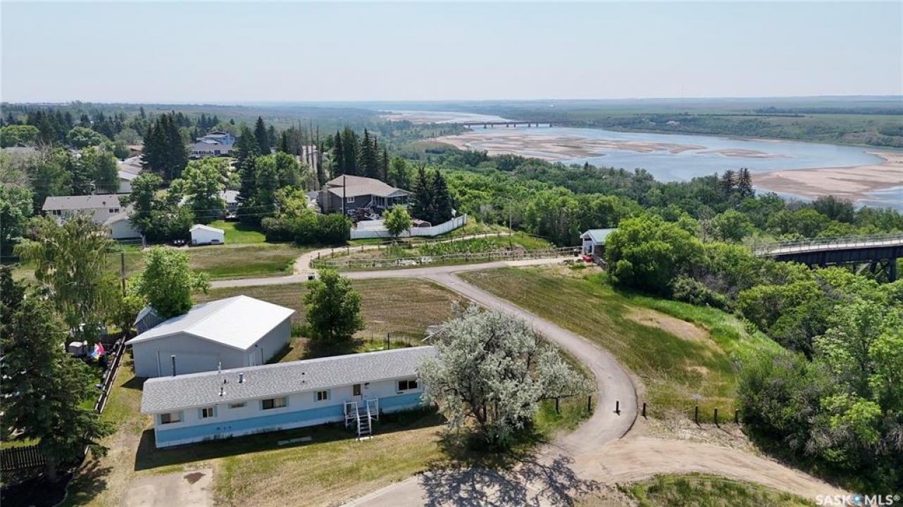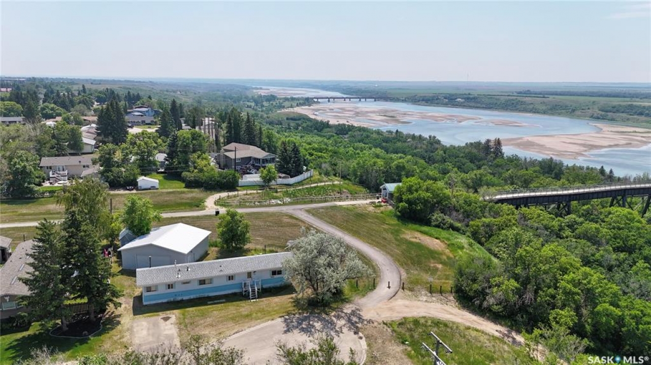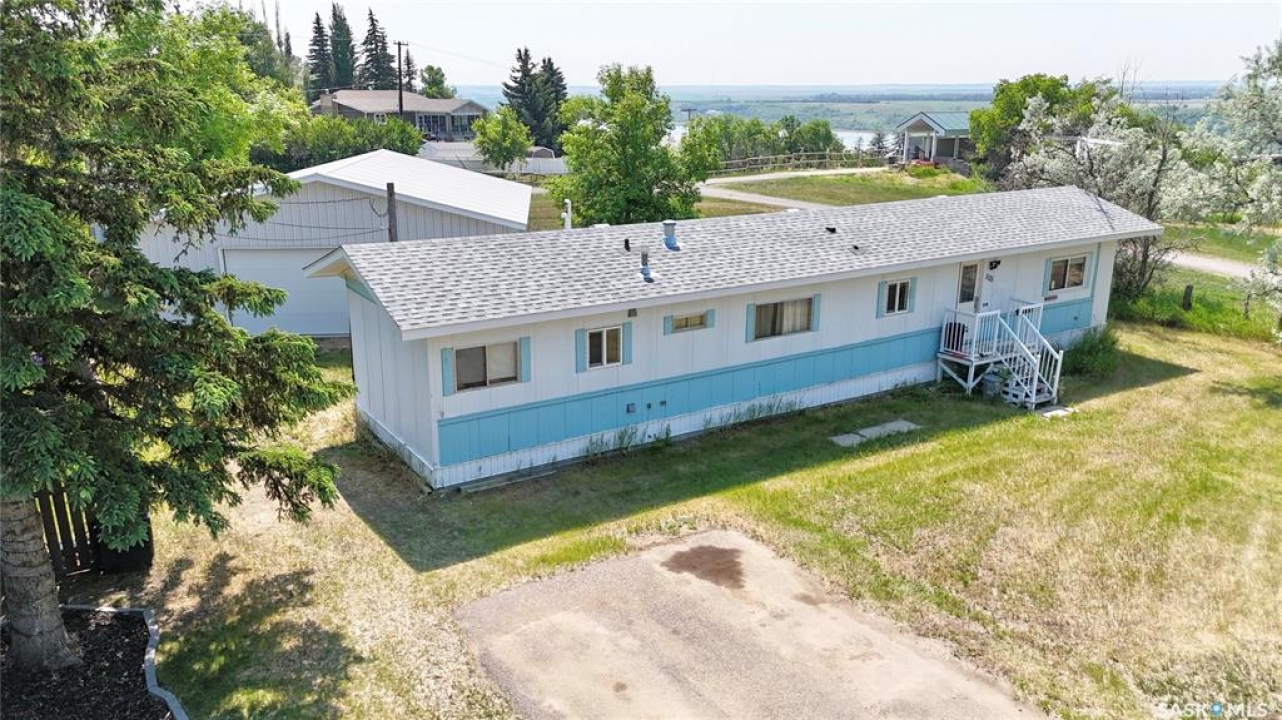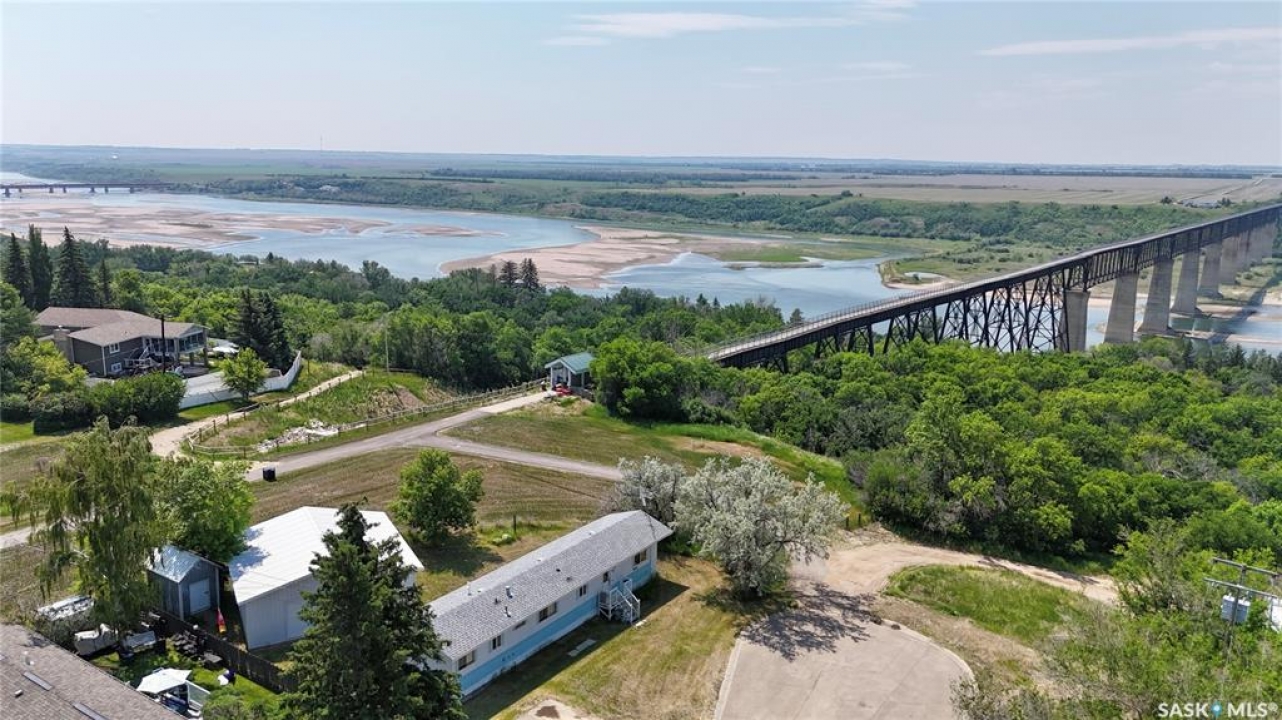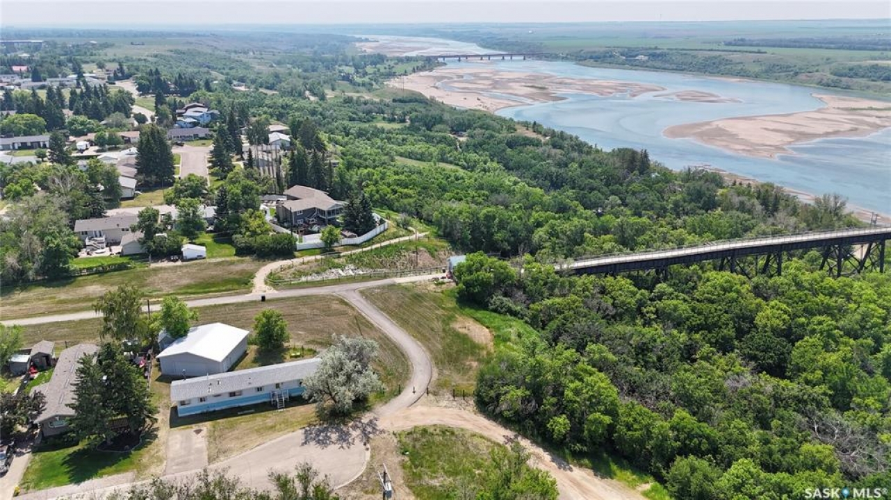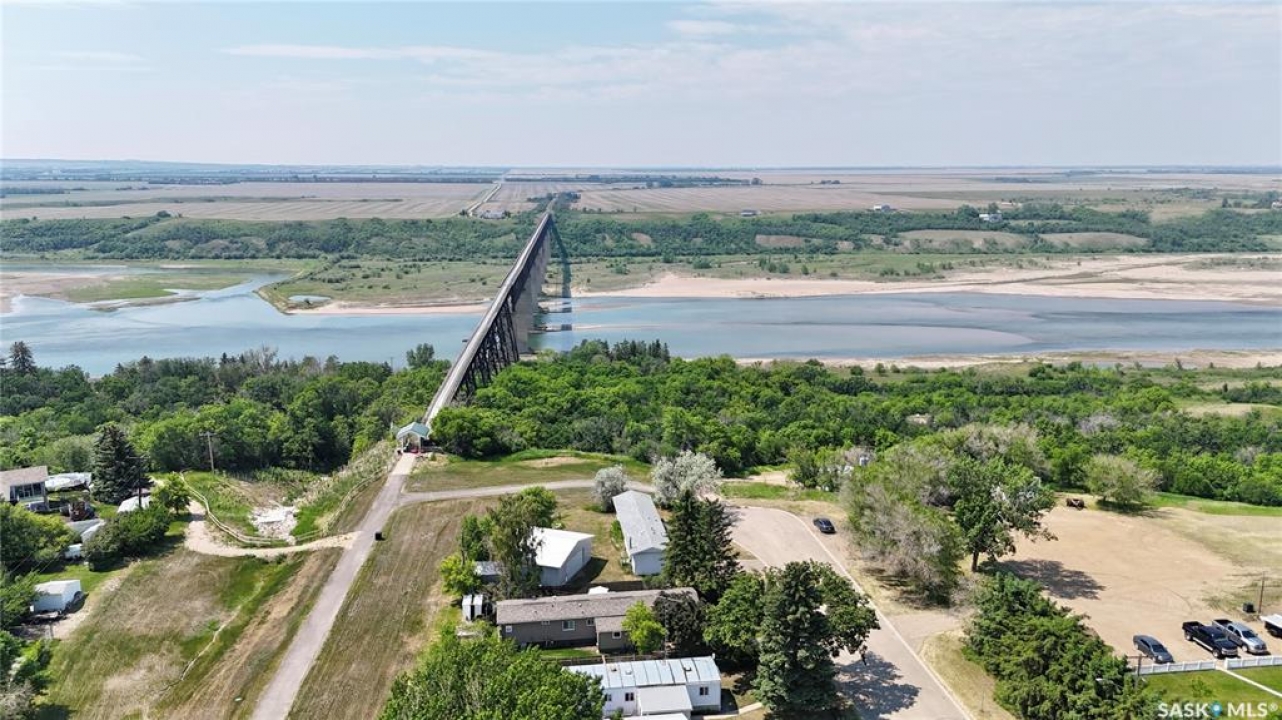 All the stunning prairie views, without the costly price tag, check out those pictures! This home is situated on the south Saskatchewan river and is ready for its next owners. This single wide mobile home sits on a great size lot that backs green space on two sides, privacy and views! The 2022 built 32x32 double detached garage, is the ideal spot for tradesmen and tinkers alike. A newer furnace (2019) and roof, makes this home ideal for someone to come and update it to make it their own. With 2 bedrooms (one bedroom has no closet) and a full 4 piece bathroom, and large living room, not to mention easy access to the town's walking trails, the opportunities are endless for this fantastic property. Call today to book your viewing!