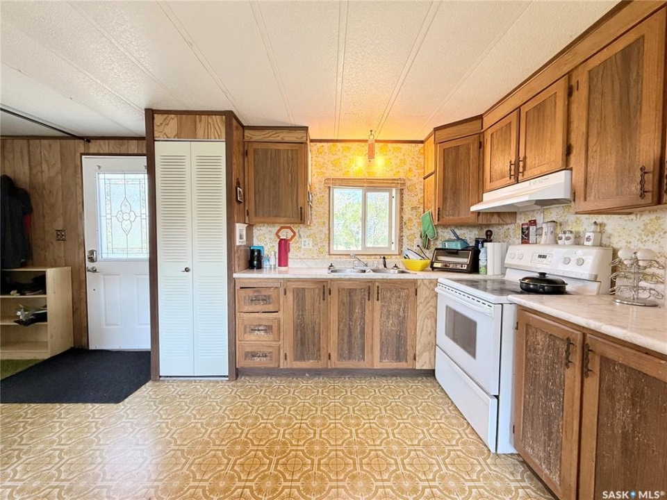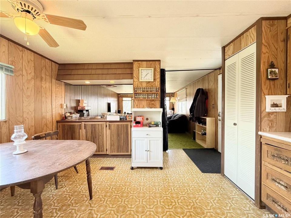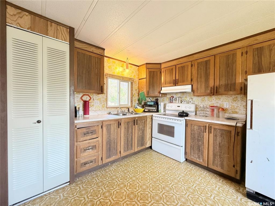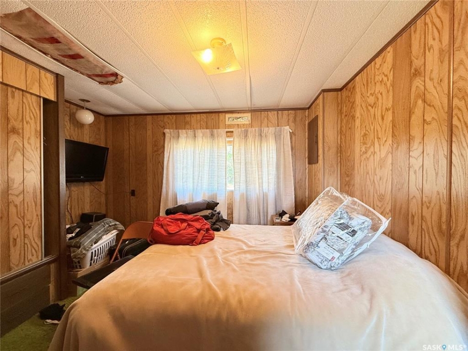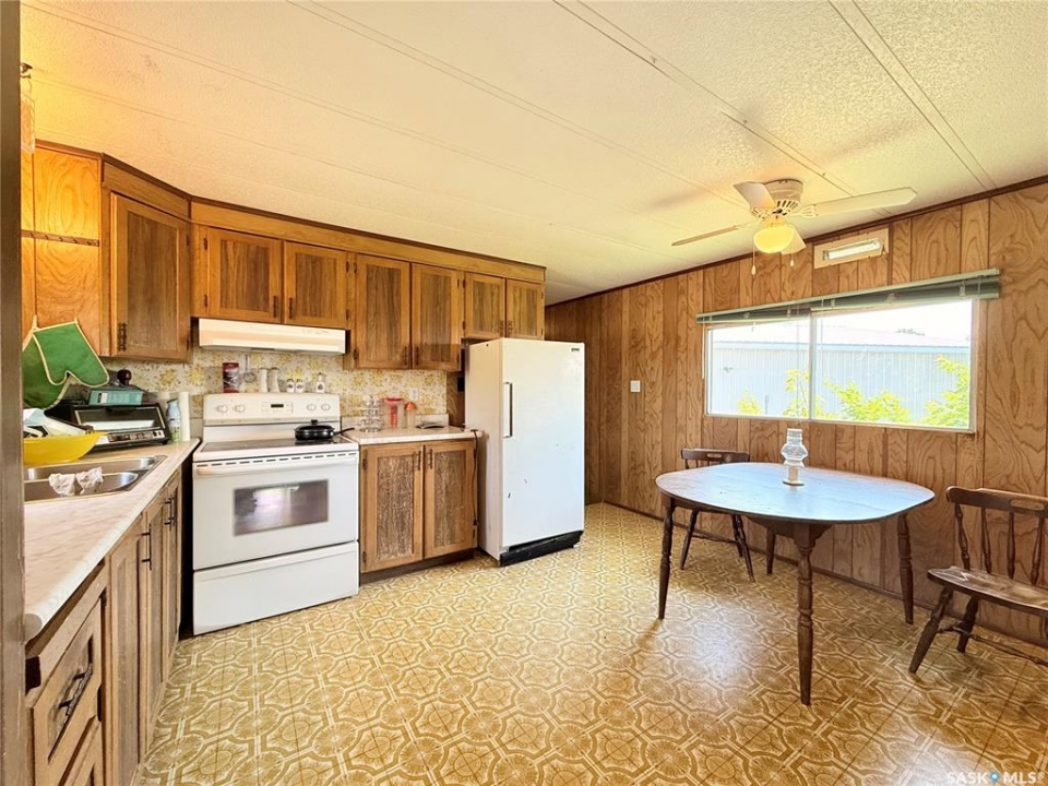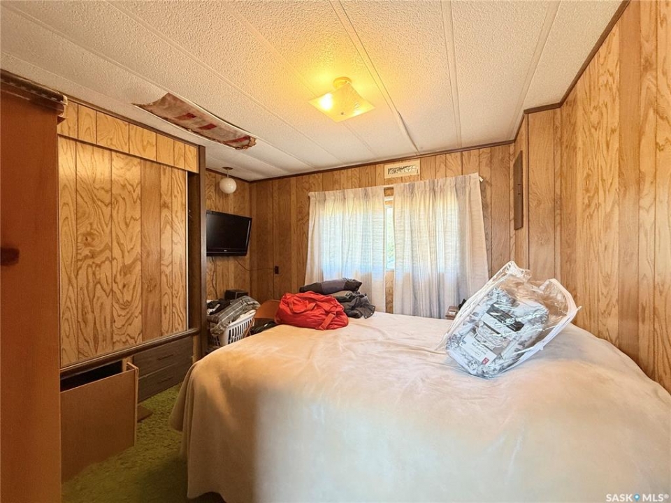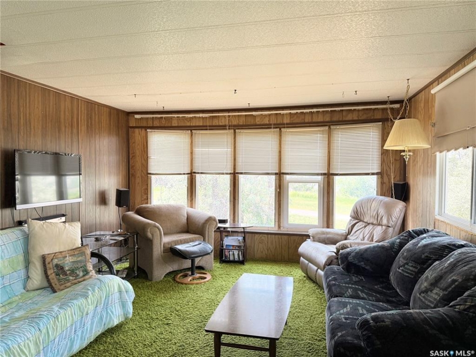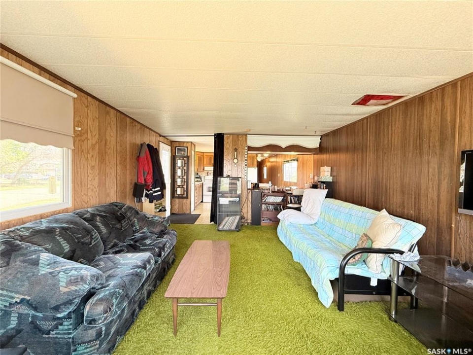All the stunning prairie views, without the costly price tag, check out those pictures! This home is situated on the south Saskatchewan river and is ready for its next owners. This single wide mobile home sits on a great size lot that backs green space on two sides, privacy and views! The 2022 built 32x32 double detached garage, is the ideal spot for tradesmen and tinkers alike. A newer furnace (2019) and roof, makes this home ideal for someone to come and update it to make it their own. With 2 bedrooms (one bedroom has no closet) and a full 4 piece bathroom, and large living room, not to mention easy access to the town's walking trails, the opportunities are endless for this fantastic property. Call today to book your viewing!