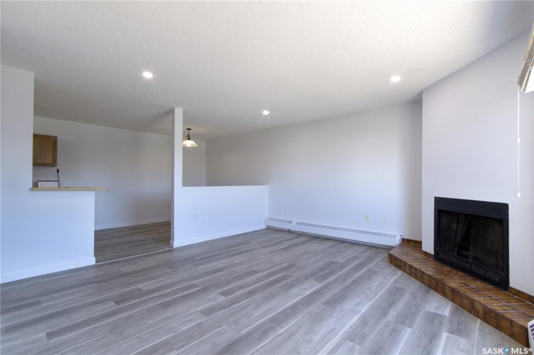 Welcome to this spacious and move-in ready two-bedroom condo located in the highly sought-after Gardiner Heights neighbourhood, a peaceful residential area surrounded by beautiful homes, tree-lined streets, and excellent amenities. Known for its family-friendly atmosphere, Gardiner Heights offers easy access to schools, parks, shopping, and convenient transit routes, making it one of Regina's most desirable communities. This upper-level unit has been freshly painted and features updated flooring throughout. A sunny private deck overlooks the outdoor swimming pool and well-maintained green space, offering the perfect spot to relax during summer months. Inside, the living room is filled with natural light and anchored by a charming fireplace and hearth. The adjoining dining area flows into a galley-style kitchen, which conveniently connects to the in-suite laundry space. Both bedrooms are generously sized, with the primary bedroom featuring a walk-in closet. The updated four-piece bathroom includes a stylish tiled tub surround. For added convenience, the unit offers excellent storage options, with a large in-suite storage room and an additional storage space on the deck—ideal for patio furniture, bikes, or seasonal items. Condo fees include heat, water, sewer, garbage pickup, common area maintenance and insurance, snow removal, lawn care, and reserve fund contributions, allowing for a true low-maintenance lifestyle. An exclusive-use parking stall is located nearby for easy access. Whether you're a first-time homeowner, student, or downsizer seeking a carefree lifestyle, this condo offers the perfect balance of comfort, location, and amenities in one of Regina's most desirable neighbourhoods.