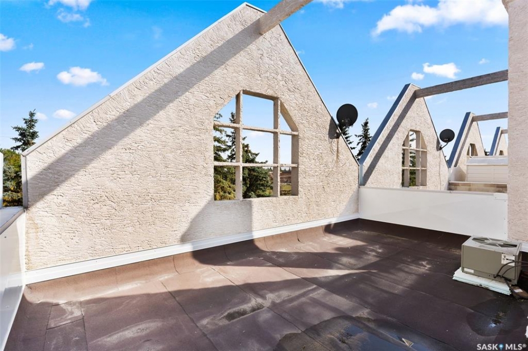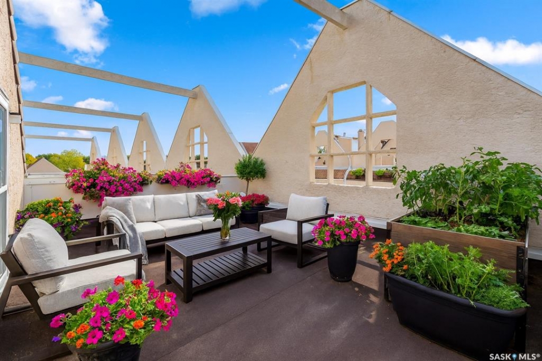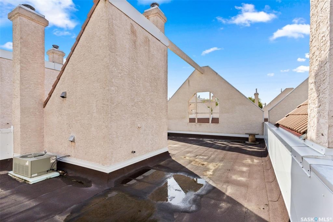 Welcome to #27–2338 Assiniboine Avenue East in the heart of Richmond Place! Step inside this renovated 1,870 sq. ft. condo and immediately feel the warmth of natural light streaming through large windows in the foyer. The tiled foyer with in-floor heat and generous coat closet makes for a welcoming entry, while a private patio just off the front door is the perfect spot for your afternoon coffee. A two-piece bathroom on this level adds convenience for you and your guests. The main floor is designed for both comfort and entertaining. Maple hardwood runs seamlessly through the open-concept kitchen, dining, and living area. The kitchen is a true showpiece with modern grey cabinetry, quartz countertops, tiled backsplash, and premium stainless steel appliances, including a gas range and Bosch dishwasher. From casual weeknights to hosting friends, this space balances style and function beautifully. A secondary entry opens to a deck facing green space, giving you another way to enjoy the outdoors! Upstairs, the primary suite feels like a retreat. Hardwood floors carry through to a spacious bedroom, complete with a walk-in closet, custom ensuite with double sinks, tile floors, and a tiled walk-in shower. Two additional bedrooms, one with a west facing balcony, another beautifully updated bathroom, and the convenience of in-suite laundry complete this level. The top floor is the crown jewel: a private rooftop deck designed for entertaining and relaxation. Whether it's summer get togethers, evening drinks, or quiet afternoons in the sun, this space is your escape above the city! This condo also includes two underground parking stalls, a 9x12 ft. storage room, and peace of mind knowing you're in a quiet, predominantly owner-occupied complex. Perfectly located-minutes from the U of R, Sask Polytech, W.S. Hawrylak Elementary, and all the east-end amenities-this home combines modern upgrades with a lifestyle of convenience!