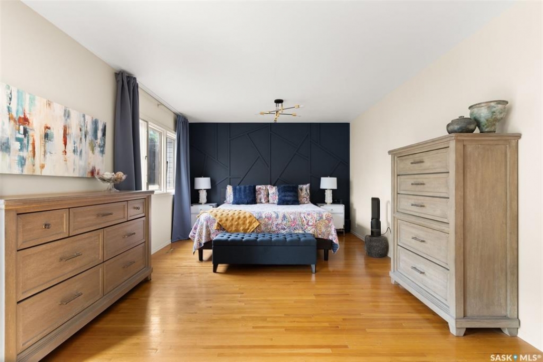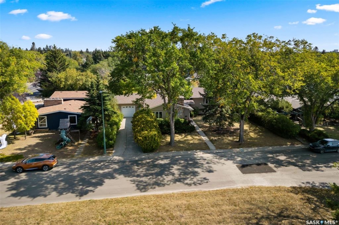 Welcome to a truly unique opportunity in the heart of South Regina. Tucked away on a quiet cul-de-sac overlooking green space, this home offers both privacy and convenience in a prime location. Originally designed as a single residence, the layout now provides a rare opportunity for families in need of an attached nanny suite or multi-generational living. The main home showcases stunning cathedral ceilings that create a bright and open feel, complimented by a series of thoughtful updates in recent years. The refreshed kitchen features stone counters with a waterfall edge, glass tile backsplash, updated flooring, and newer appliances. The primary bedroom is spacious and can double as an exercise space or reading nook. Here garden doors lead to a two-tiered composite deck with pergola and view of the east-facing backyard. Down the hall, a recently remodelled 3-piece bathroom with stylish shower and off the kitchen is access to an attached and heated (20'x26') garage. The fully finished basement adds to the living space with a 2nd bedroom, a den, 4-piece bathroom and laundry. Additional upgrades include modern lighting, a newer furnace, shingles and eaves all within the last 10 years. The second home offers more of the original 60's charm with its own private entrance. Here you will find a cozy space with a galley kitchen and an additional 3 bedrooms and 2 bathrooms. Paved walking paths right out your front door will take you to Kinsmen Park or watch your kids cross the street to school with the recently completed joint-use École St. Pius & Argyle Elementary Schools just a few steps away. Set on an impressive 100ft frontage (with 4 x 25ft lots), this property offers exceptional space and flexibility in one of the city's most desirable neighbourhoods. With its unique configuration, sought-after location, and blend of updates mixed with original charm this home presents an incredible opportunity you won't find anywhere else.
