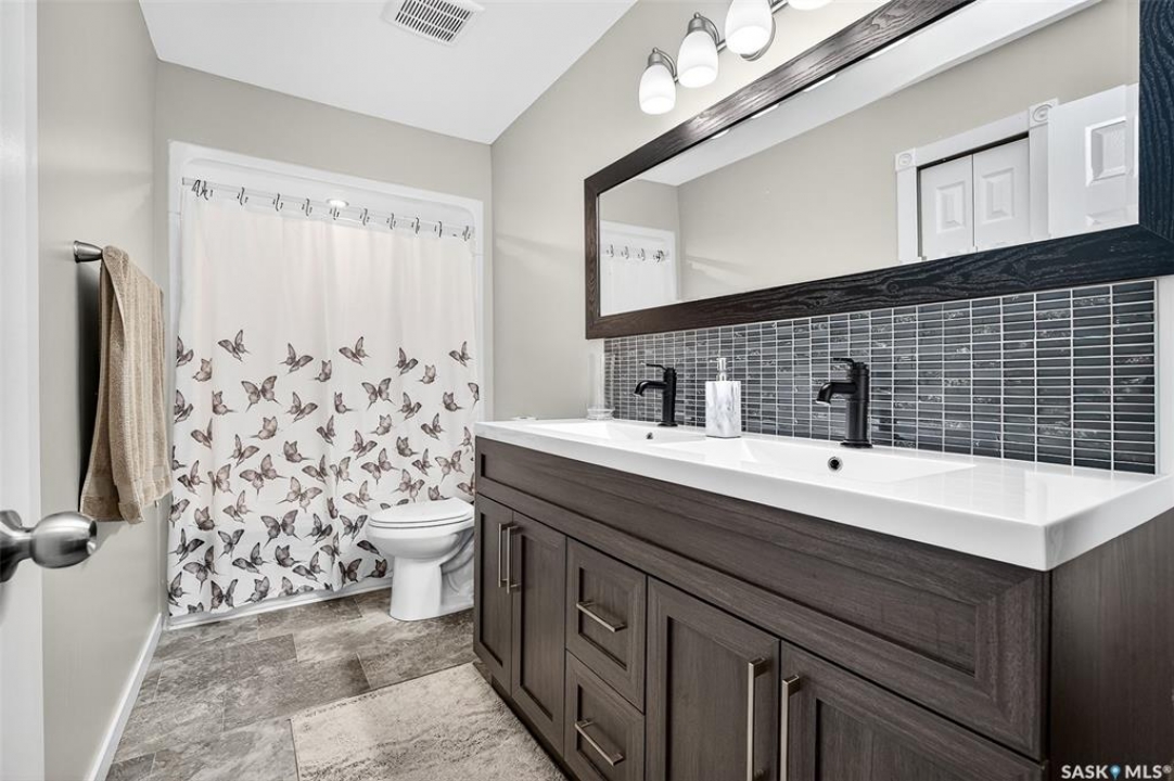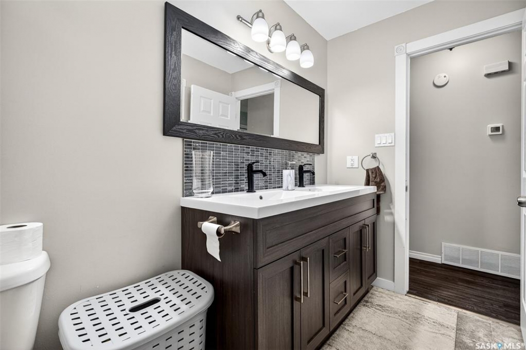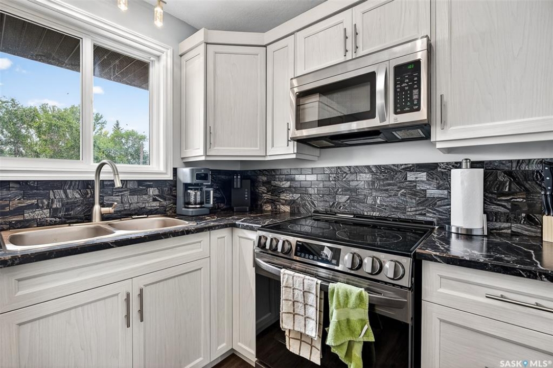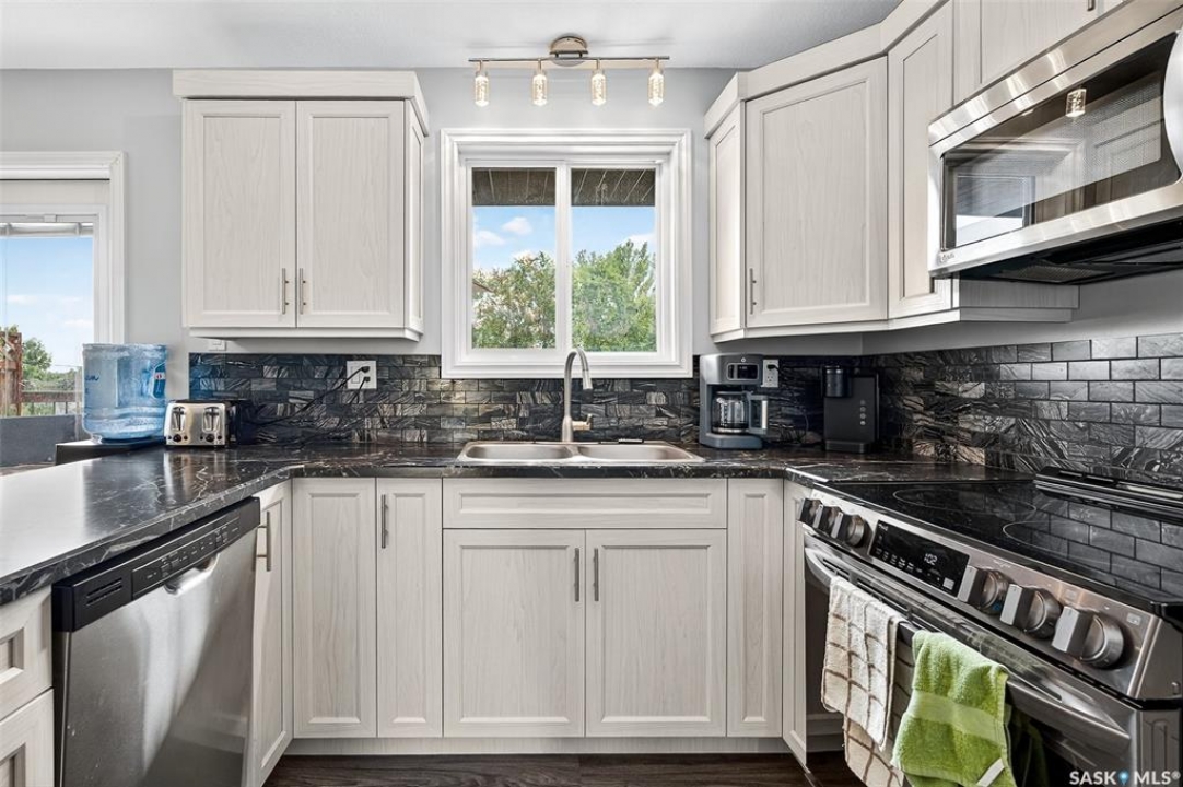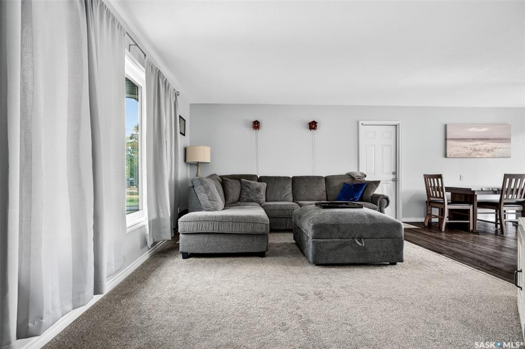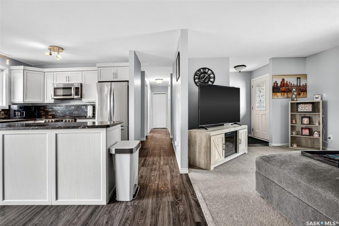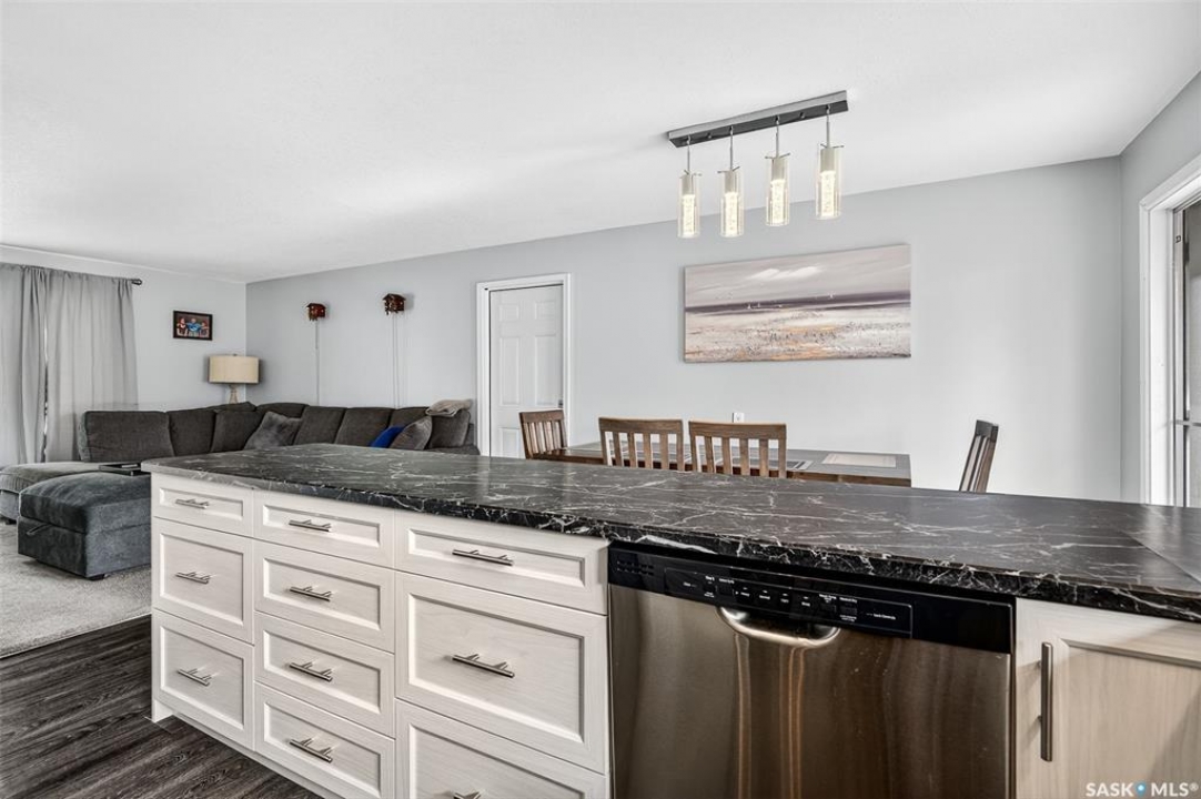 Beautifully Renovated Family Home with Garden & Outdoor Living Spaces located in the Palliser area of Moose Jaw. Welcome to this spacious and beautifully updated family home, perfectly designed for comfort and entertaining. This property offers the ideal blend of modern updates and family-friendly charm. Step inside to a bright, open living area with comfortable carpeting & plenty of natural light. The renovated kitchen & dining space features stunning Hanover cabinets, a long island with an abundant of pot & pan drawers, tile backsplash, & stainless steel appliances including a blt-in dishwasher & micro range. Patio doors open to a deck overlooking the garden, greenhouse, fire pit area, perfect for gatherings. Under-deck storage, along with a portable garage for added convenience. The main floor boasts generous bedrooms, including a spacious primary suite with double closets. The main bathroom offers a double vanity with glass tile backsplash & extra storage closet. The basement provides a family room featuring a wood-burning fireplace, and two extra bedrooms, (window may not meet egress). There's also a laundry/utility area with washer, dryer, & deep freezer included, plus a room roughed in for a future bathroom. The home is equipped with many modern upgrades including new 200-amp electrical service, high-efficient furnace and water heater (owned and NEW), updated shingles and plywood, newer siding, soffit, facia, & eaves. The paved double driveway & single attached insulated garage and 100-amp service. Additional features include: • PVC windows throughout • Brand new driveway • Greenhouse • Fire pit area & sand base ready for a pool • Central Air • Ring doorbell and updated lighting of Ring system for exterior This property truly offers everything a growing family could want. With its extensive renovations, outdoor lifestyle features, and thoughtful details, it's move-in ready & waiting for you to call it home!
