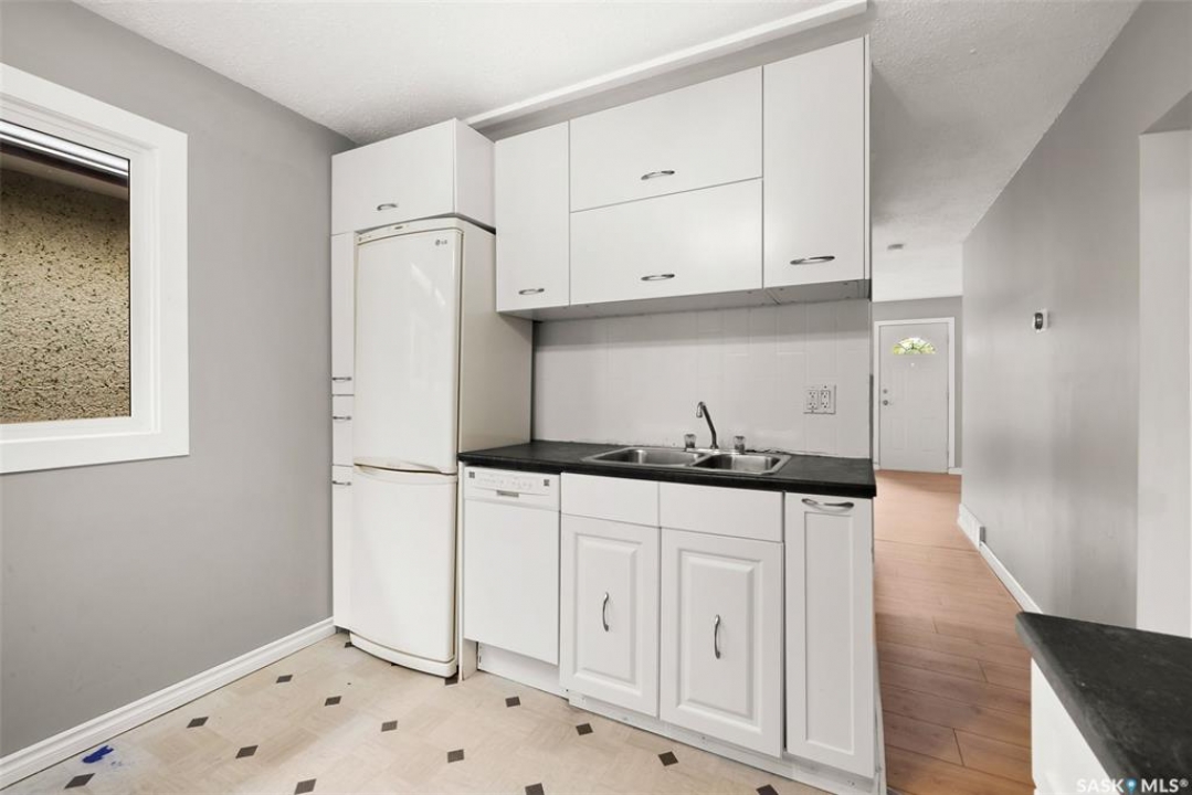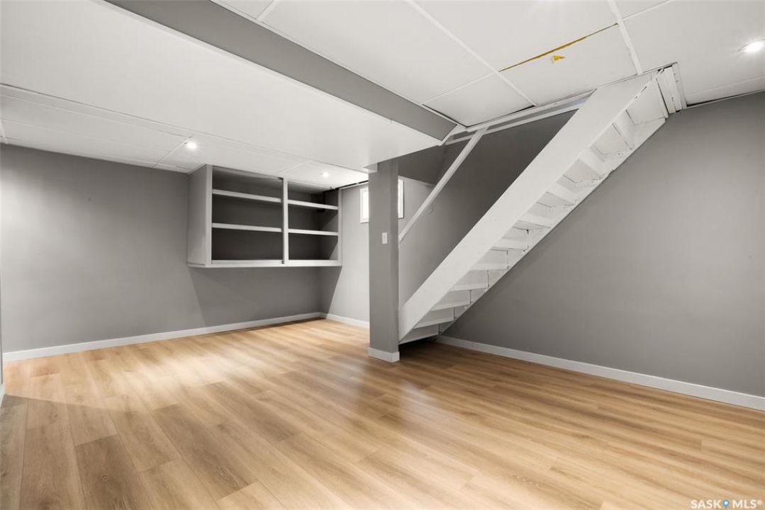 This affordable home, built in 1960, has been refreshed with modern updates while maintaining functional living spaces throughout. Offering a well-planned living area, the main floor features a spacious living room filled with natural light from large picture windows and a built-in feature wall that provides both style and practicality. The bright kitchen offers plenty of cabinetry, all appliances included, and a cozy dining nook. Two comfortable bedrooms and a refreshed four-piece bathroom complete the main level, making it ideal for everyday living. The fully developed basement extends the home with a versatile recreation room, an additional bedroom, a den, and a three-piece bathroom, perfect for guests, a home office, or extra family space. Outside, the property sits on a 3,125 sq. ft. lot with a fenced space, and a detached garage. Recent improvements include windows and basement. Conveniently located close to schools, parks, shopping, and downtown amenities, this home presents a fantastic opportunity for first-time buyers, downsizers, or investors.