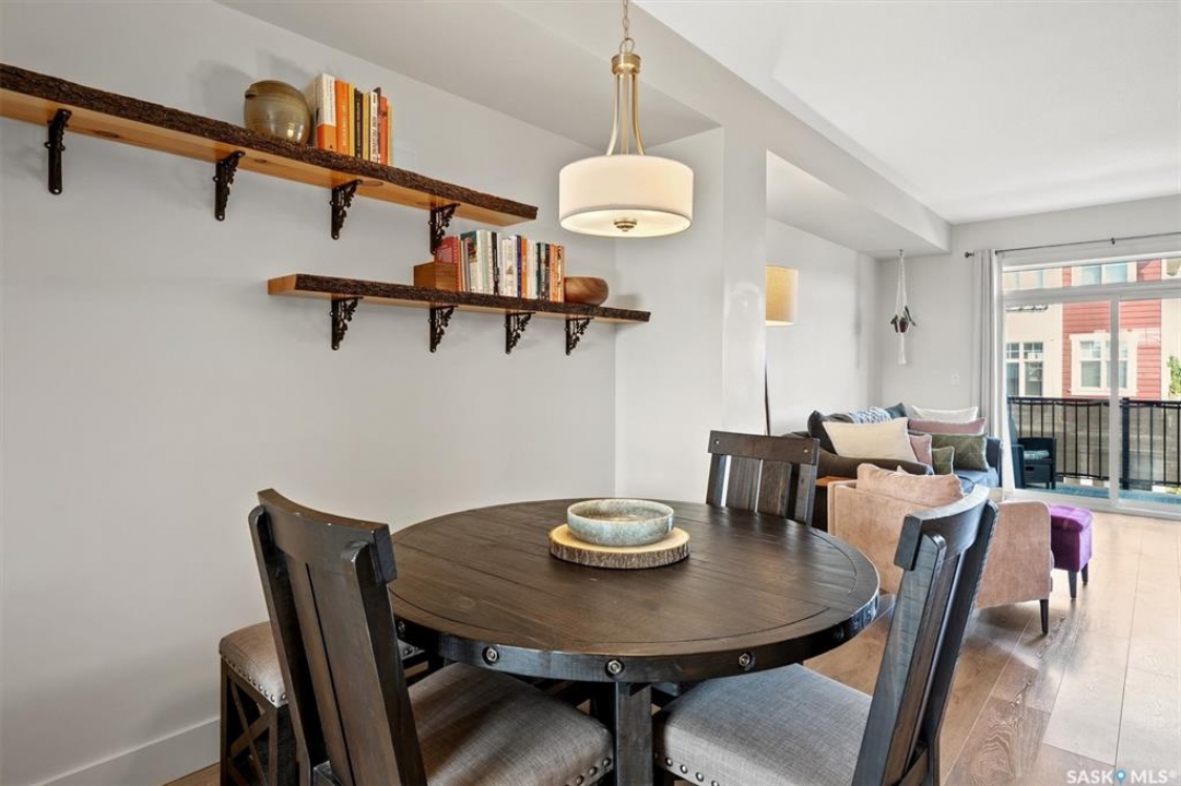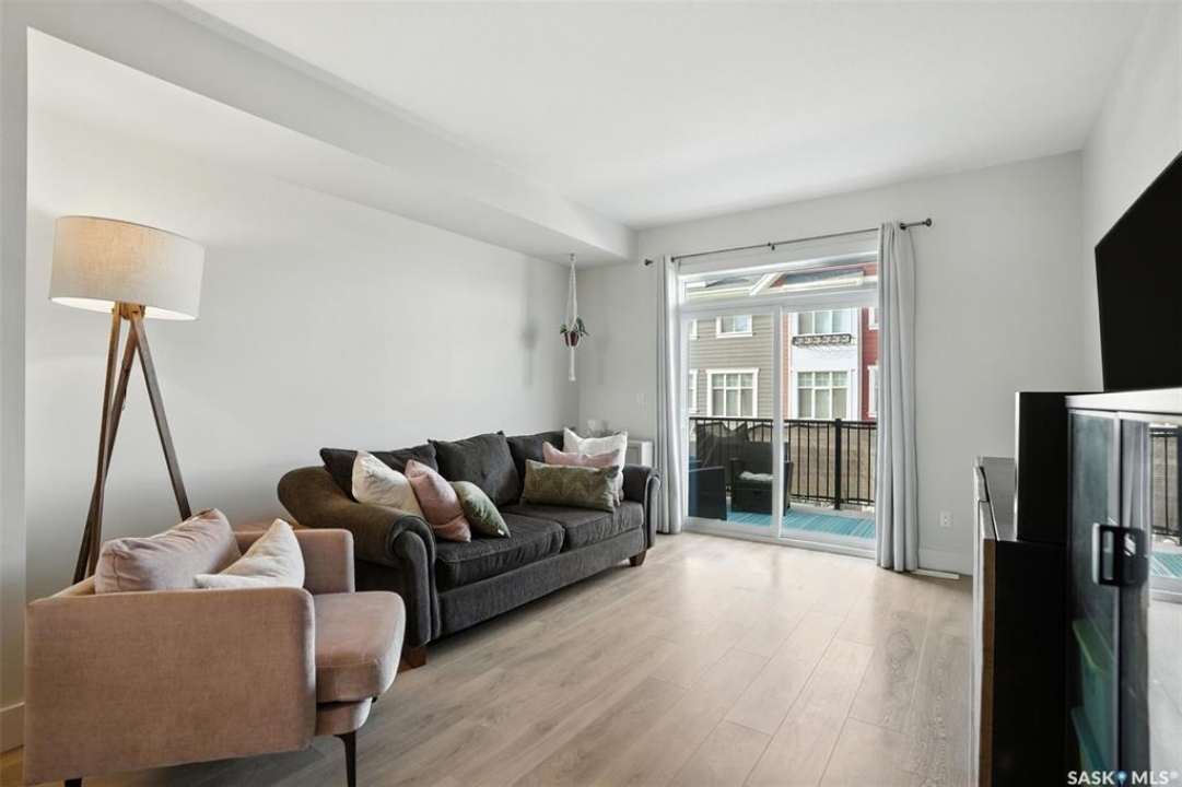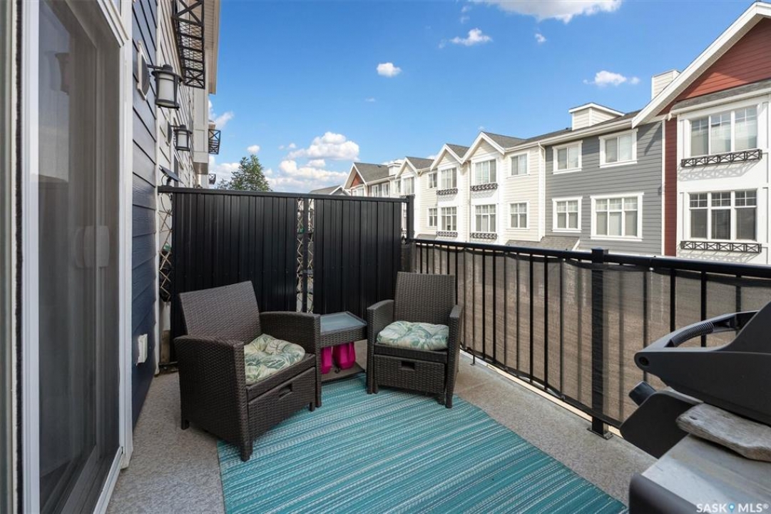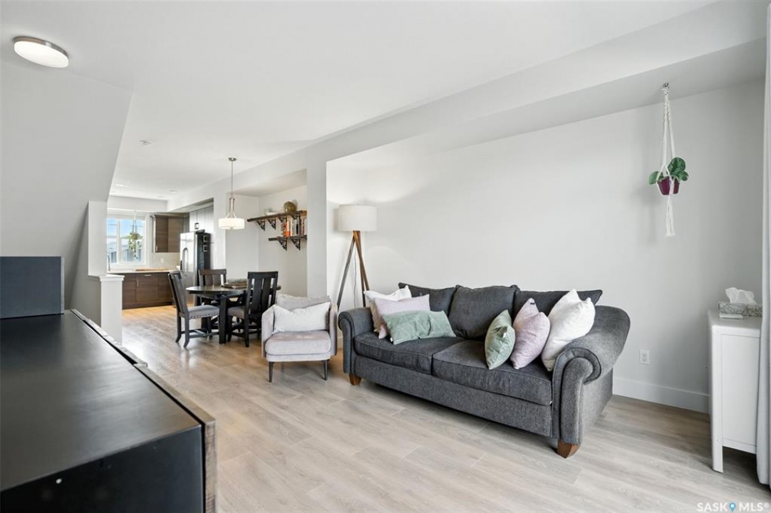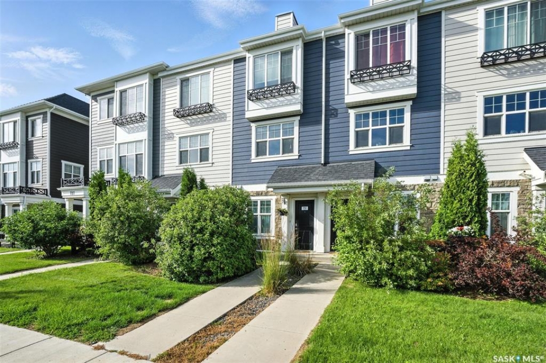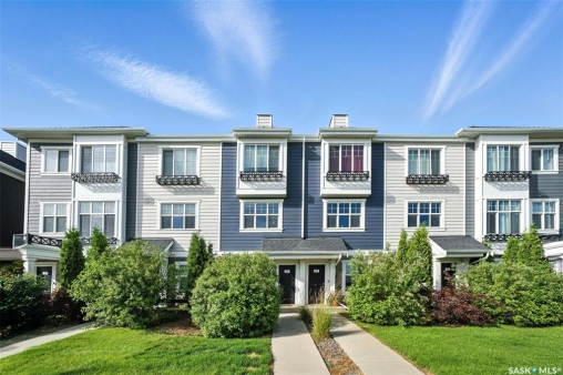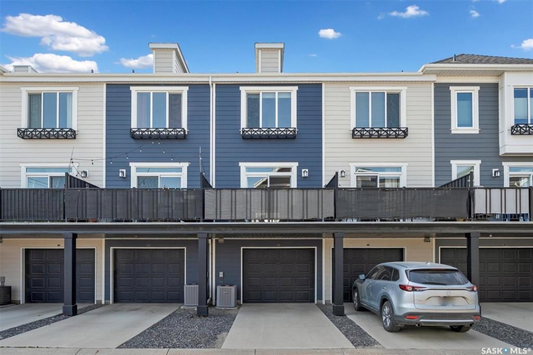 Welcome to this beautiful three-storey townhouse located in the highly sought-after community of Rosewood, Saskatoon. Offering a perfect blend of modern style and functional living, this home is ideal for anyone seeking comfort and convenience in one of the city's most popular neighbourhoods. Inside, you'll find a bright and inviting open-concept layout. The spacious living room flows seamlessly into the dining area and kitchen, creating the perfect space for entertaining or spending time with family. Large windows and a private balcony allow for plenty of natural light, while the modern kitchen features stainless steel appliances, sleek cabinetry, and ample counter space. This home offers three comfortable bedrooms and two well-appointed bathrooms. The main floor bathroom is tucked around from the living area and includes a stand-up shower. The primary bedroom is a serene retreat with a large window and room to unwind at the end of the day. Do not miss the five-piece ensuite, featuring a double vanity and a tub/shower combo. Additional highlights include convenient upstairs laundry, tasteful finishes throughout, and a private balcony perfect for relaxing or barbecuing. The single attached heated garage provides both parking and storage while currently being used as a home gym. This location offers easy access to parks, walking trails, schools, shopping, and all the amenities a vibrant neighbourhood could offer. Don't miss this chance to join one of Saskatoon's thriving areas, a community poised for growth and expansion.