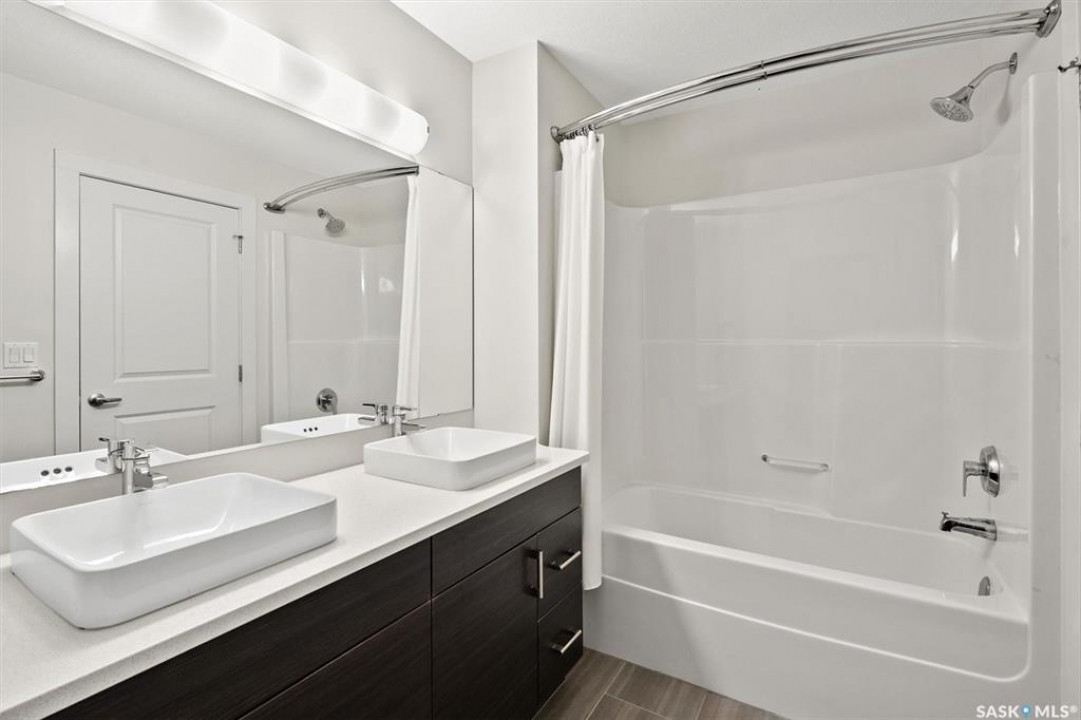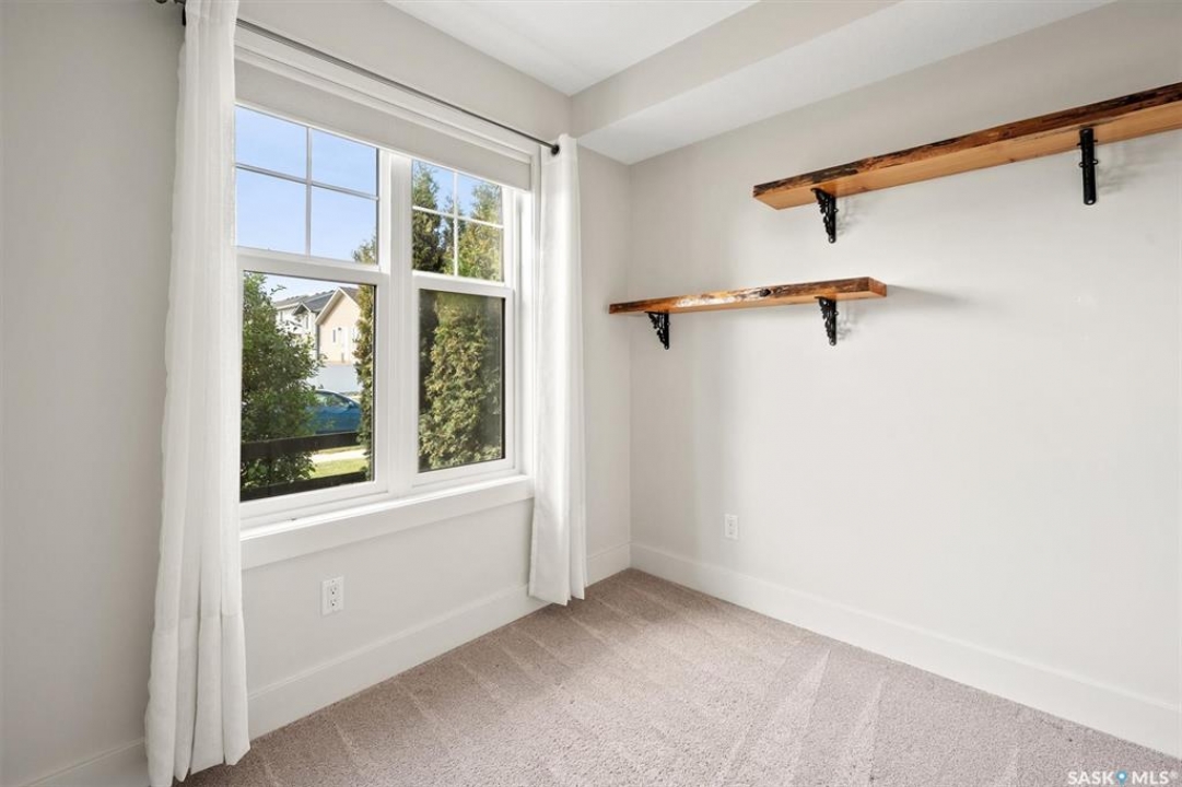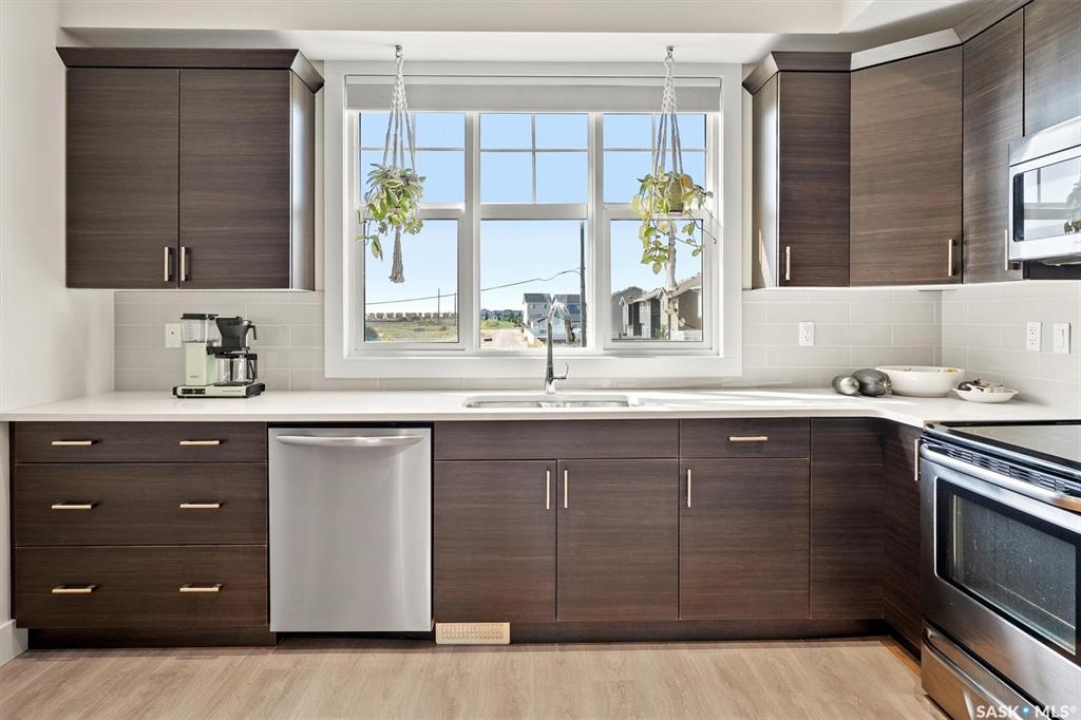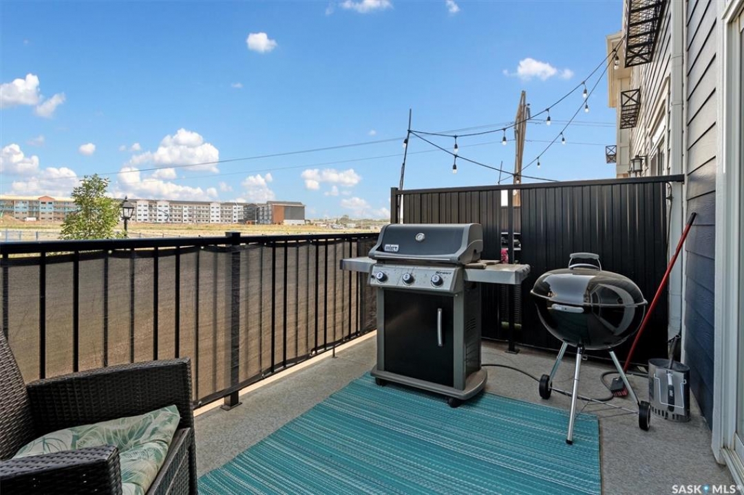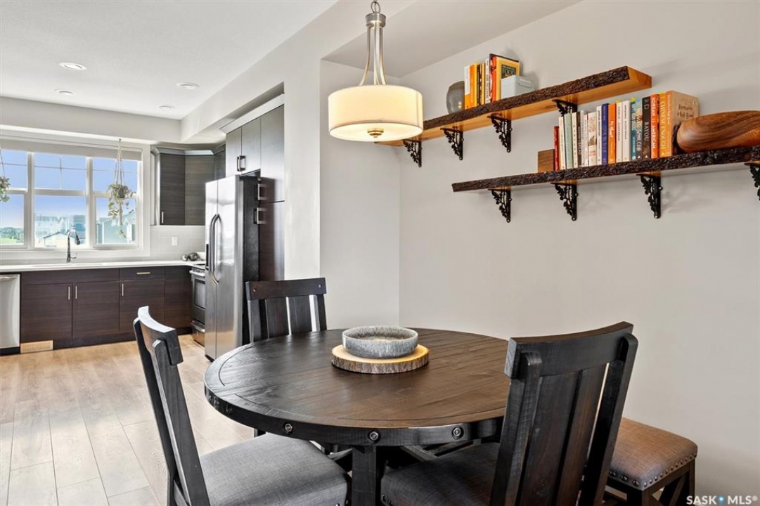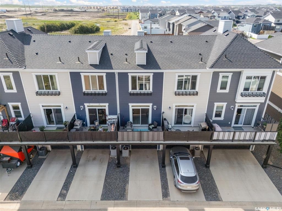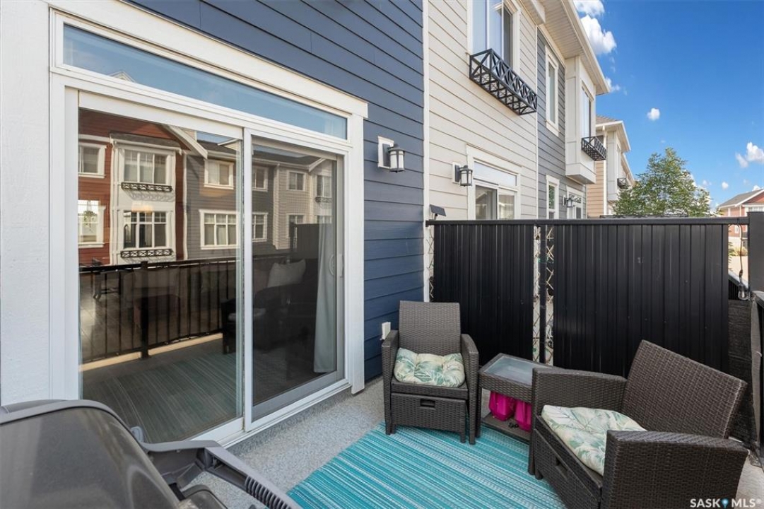 Welcome to this beautiful three-storey townhouse located in the highly sought-after community of Rosewood, Saskatoon. Offering a perfect blend of modern style and functional living, this home is ideal for anyone seeking comfort and convenience in one of the city's most popular neighbourhoods. Inside, you'll find a bright and inviting open-concept layout. The spacious living room flows seamlessly into the dining area and kitchen, creating the perfect space for entertaining or spending time with family. Large windows and a private balcony allow for plenty of natural light, while the modern kitchen features stainless steel appliances, sleek cabinetry, and ample counter space. This home offers three comfortable bedrooms and two well-appointed bathrooms. The main floor bathroom is tucked around from the living area and includes a stand-up shower. The primary bedroom is a serene retreat with a large window and room to unwind at the end of the day. Do not miss the five-piece ensuite, featuring a double vanity and a tub/shower combo. Additional highlights include convenient upstairs laundry, tasteful finishes throughout, and a private balcony perfect for relaxing or barbecuing. The single attached heated garage provides both parking and storage while currently being used as a home gym. This location offers easy access to parks, walking trails, schools, shopping, and all the amenities a vibrant neighbourhood could offer. Don't miss this chance to join one of Saskatoon's thriving areas, a community poised for growth and expansion.