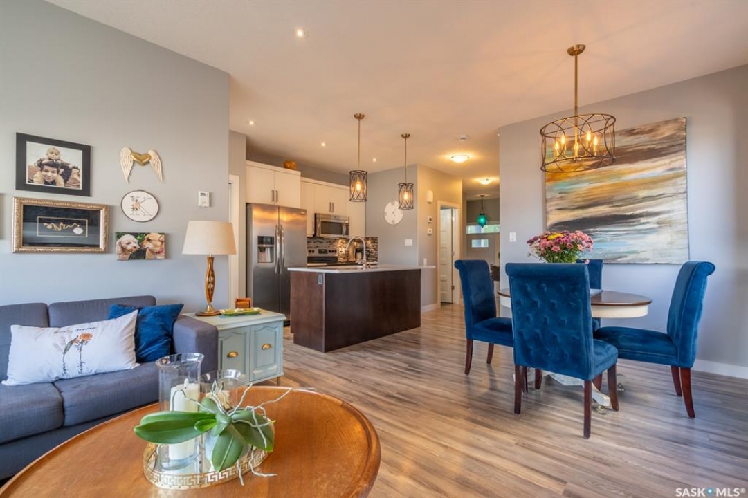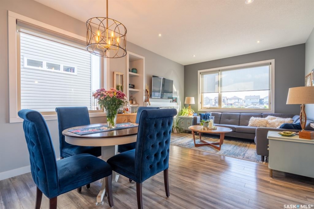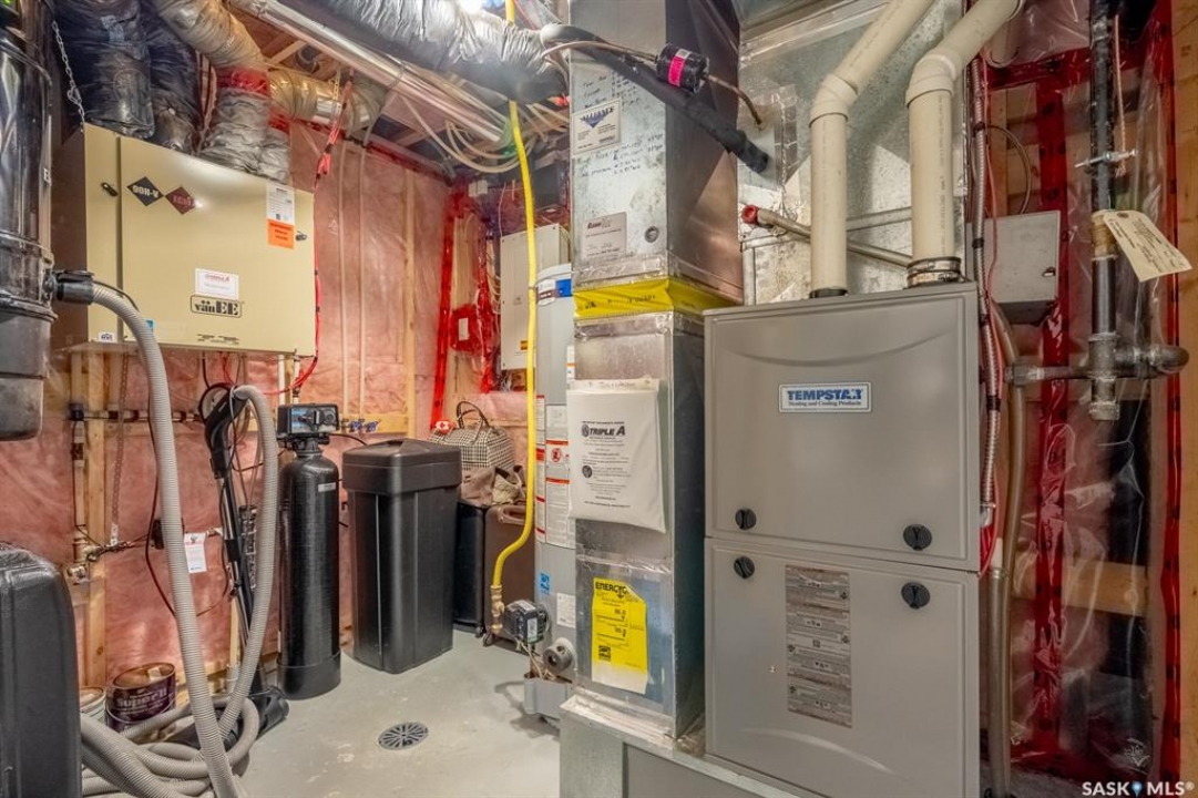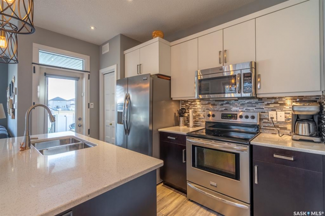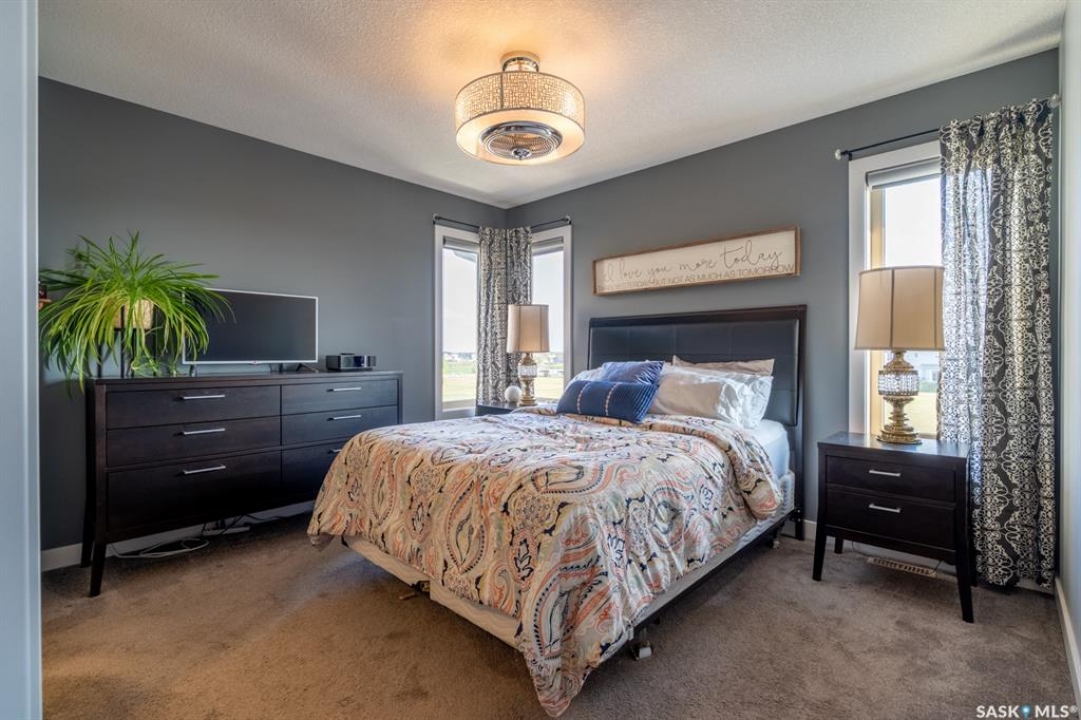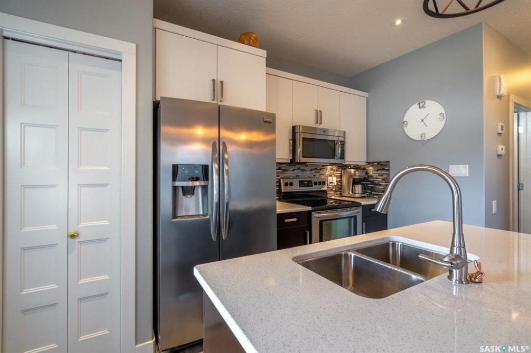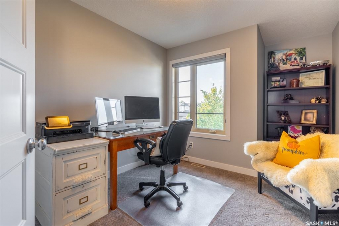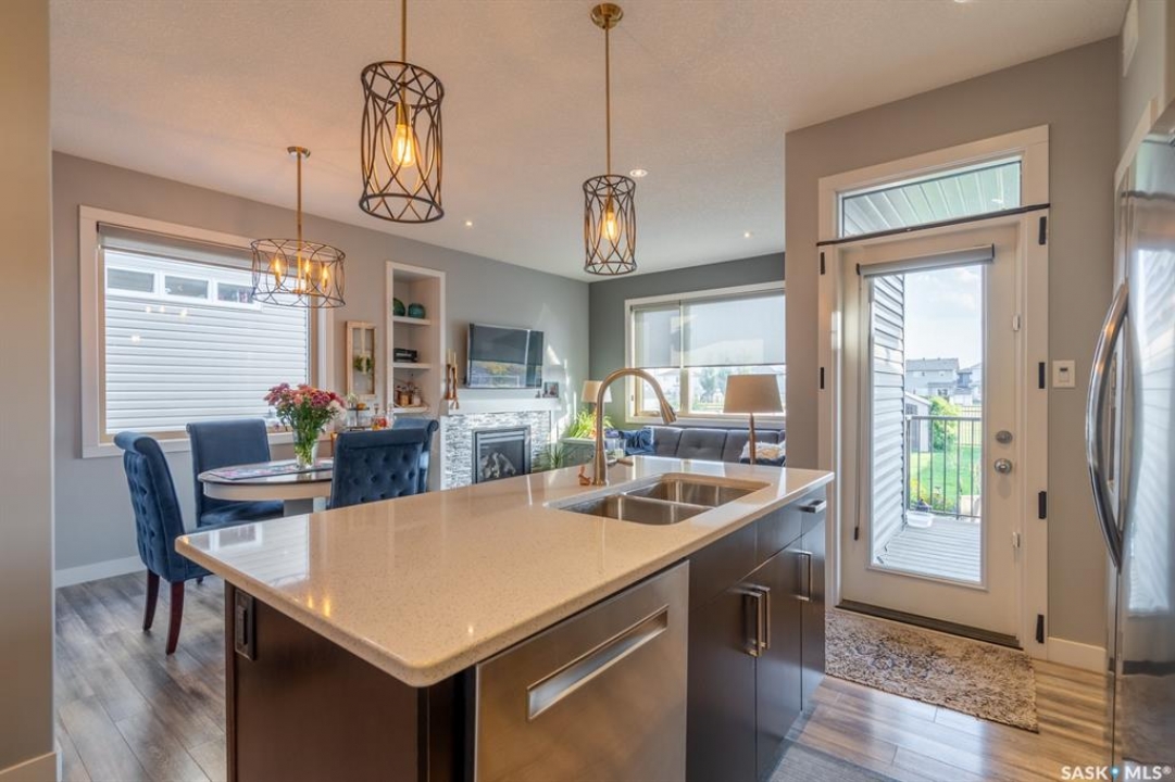 This stunning former showhome, proudly built by Homes by Dream, has had just one owner and has been meticulously maintained. Ideally located in Harbour Landing, only half a kilometer from the brand-new school which is under construction, and a block from Norsman Park, this move-in ready home is loaded with upgrades and backs directly onto peaceful greenspace with a sunny south-backing yard. Step inside to find 9 ft ceilings on the main floor, quartz countertops throughout, and a kitchen with two-tone cabinets, undermount lighting, tile backsplash, and pantry. The open-concept living area is highlighted by a gas fireplace with custom built-in shelving. Upstairs, the spacious primary suite is filled with natural light from three windows and offers a large walk-in closet plus a 3-piece en suite with a 4' shower. Convenient second-floor laundry and 2 additional bedrooms complete the level. The fully finished basement features a tiled ceiling, large rec room, full 4 pc bathroom, and office. Outside is perfect for entertaining with a covered composite deck, stone patio, underground sprinklers, and a deep, beautifully landscaped yard with two storage sheds. Additional features include: Heated, insulated, and drywalled garage with ample space Central Vac Tile flooring in all wet areas 4 bathrooms total Foundation appears to be in solid condition. Seller says they have not had water in the basement. This home offers the ideal blend of style, functionality, and location. Truly a sought after find in Harbour Landing. The Living room and bedroom TV's are included. Please view You Tube video at top of listing