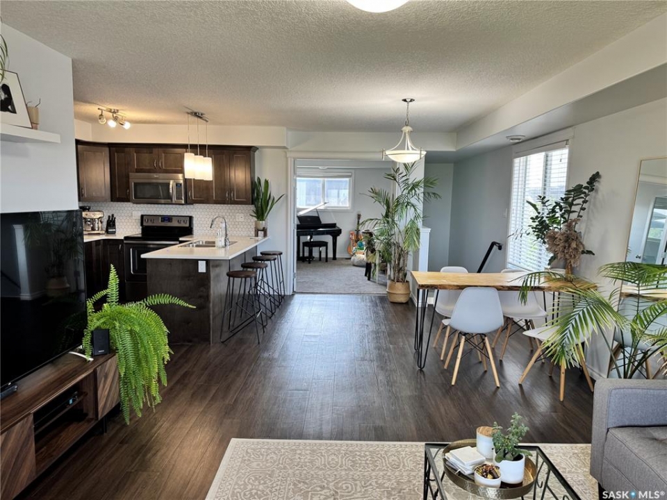 Park Views, Sunlight, and Style—This Corner Condo Has It All! Welcome to your top-floor retreat, a spacious 1,260 sq ft corner unit that blends modern finishes with unbeatable convenience. Overlooking the park and just steps from schools, shops, and everyday amenities, this home offers the perfect mix of comfort and lifestyle. Step inside through a private entry with a roomy coat closet and head up to the bright, open-concept living and dining area. Thanks to its corner location, this home is drenched in natural light from extra windows, creating a warm and inviting atmosphere. The kitchen is a true standout—complete with maple cabinetry, quartz countertops, stainless steel appliances, a stylish custom backsplash, pantry, and a huge eat-up peninsula that's perfect for family gatherings or entertaining friends. With three generous bedrooms, you'll have all the space you need. One bedroom features elegant French doors, making it an ideal home office, while the primary suite boasts a luxurious four-piece ensuite. An additional four-piece bathroom ensures comfort and convenience for guests or family members. This move-in-ready condo also comes equipped with air conditioning and a large balcony where you can relax and enjoy the park views. Parking is a breeze with a single detached garage, an electrified surface stall, and ample street parking right outside your door. Stylish, spacious, and perfectly located—this home is a complete package at an incredible price.