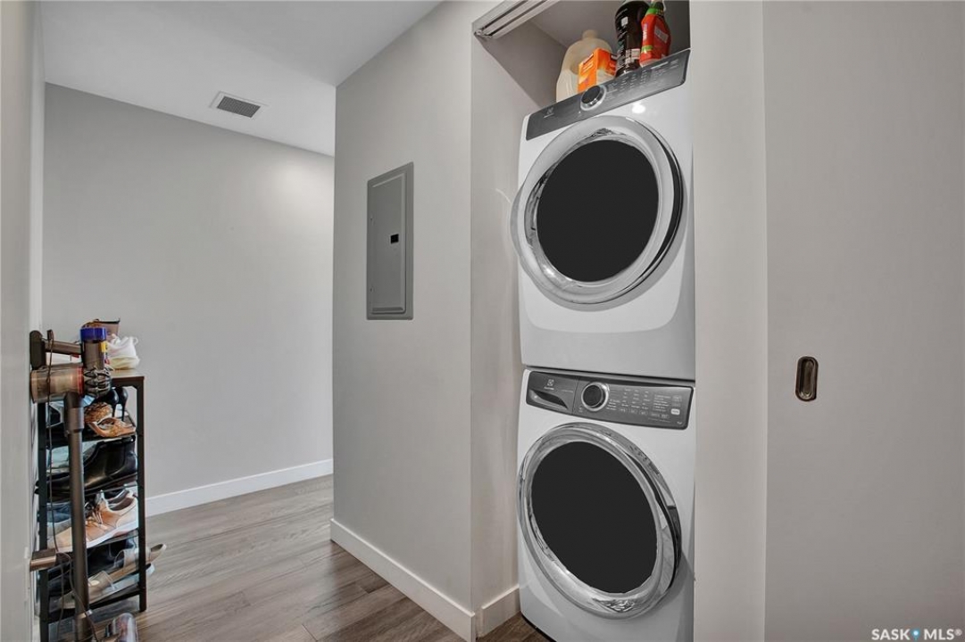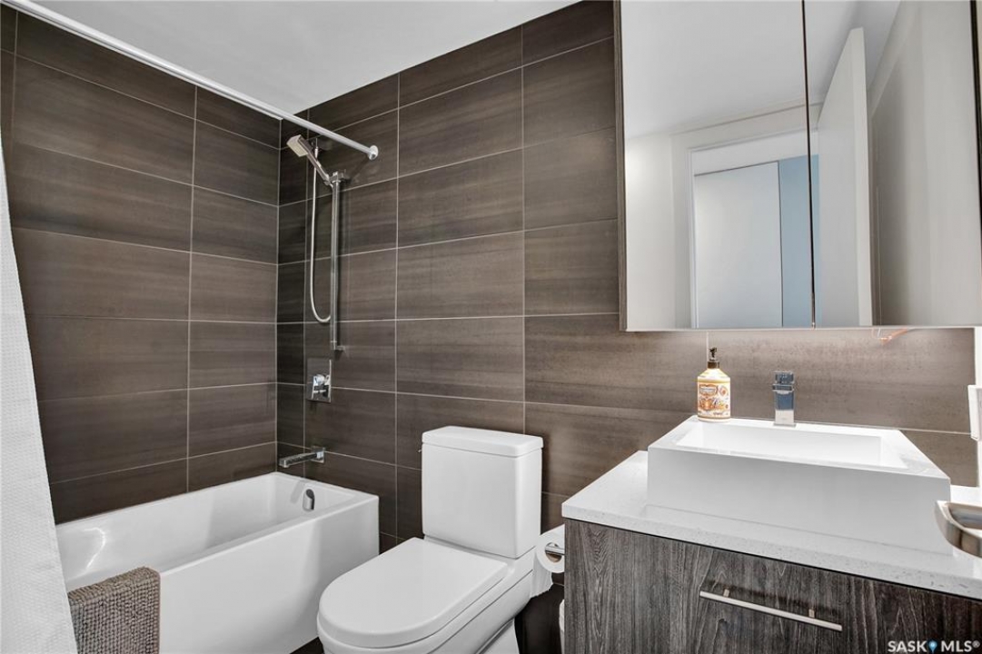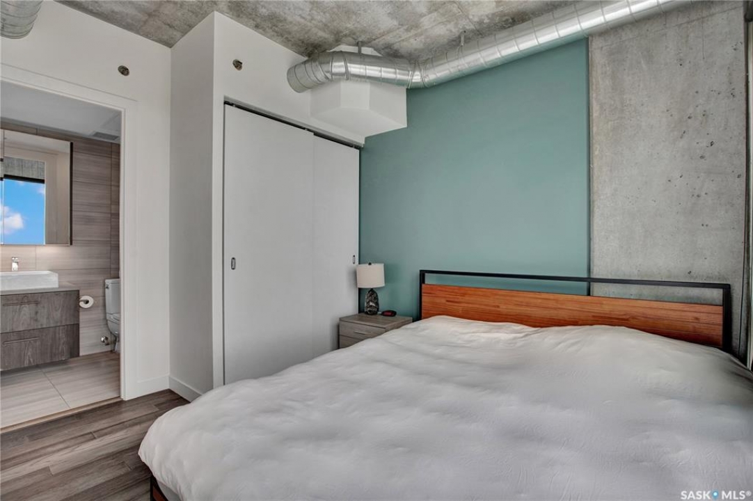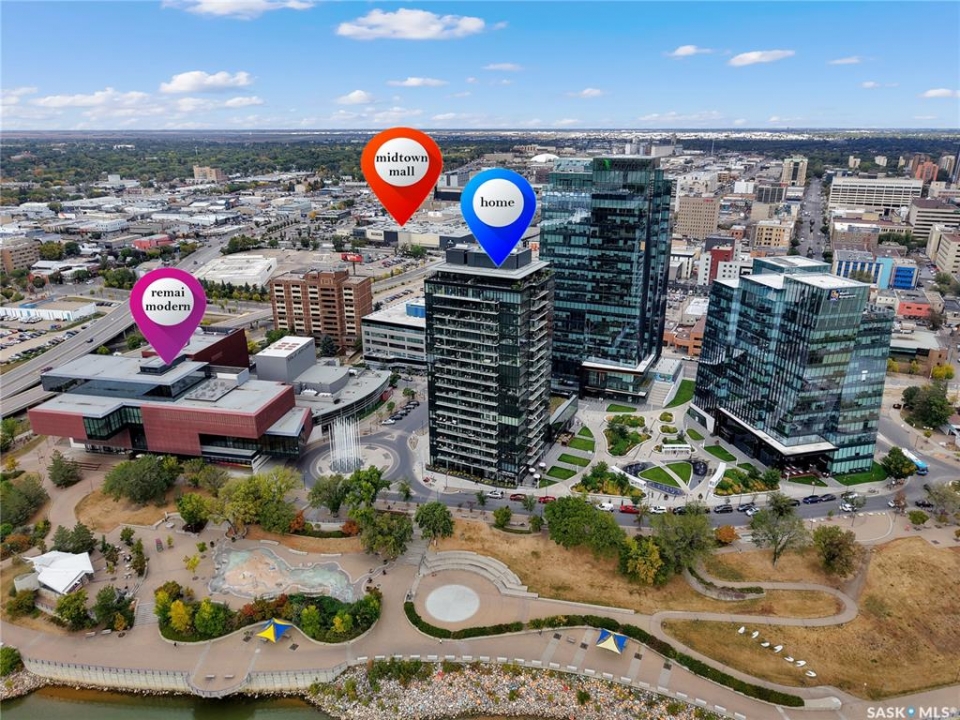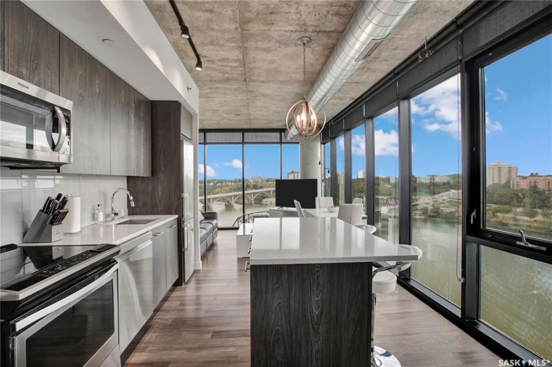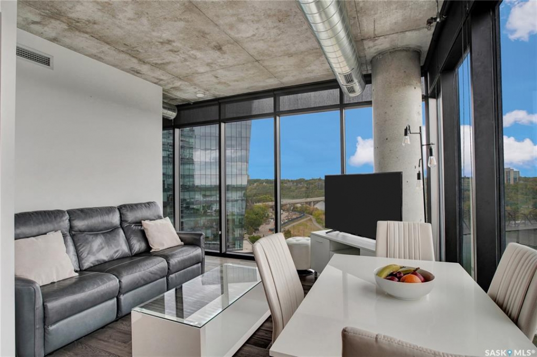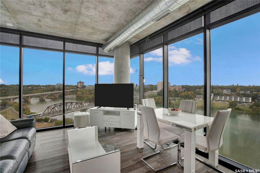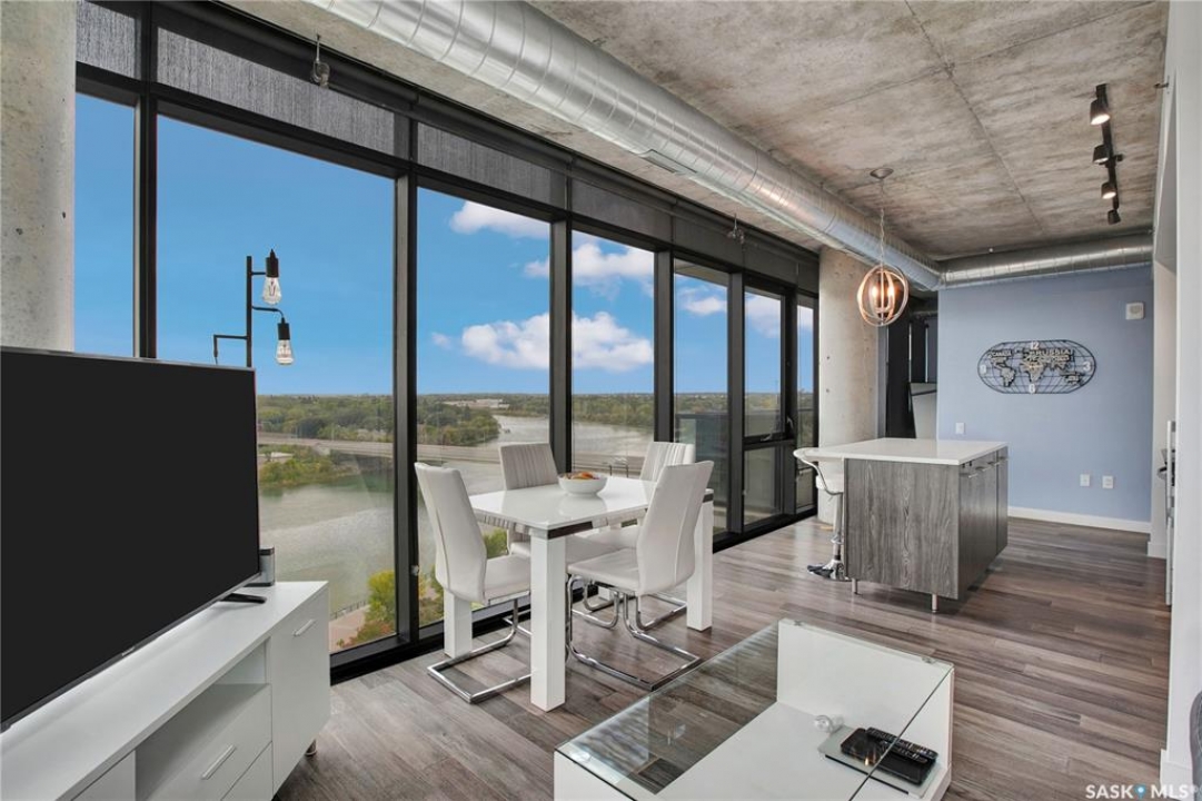 Live your life with the best river view in Saskatchewan. This stunning 2-bedroom, 2-bath condominium was the most sought after during the purchase phase. It's the south east corner, river facing, D2 floor plan, and the best value per dollar at River Landing. With a sleek design, you can enjoy a place of prestige, with a breathtaking view through the seventeen 9-ft floor to ceiling windows. A custom install of in-floor heating for both bathrooms gives you spa-like comfort while dining at a 10th floor level. A fair-sized balcony allows you to BBQ while looking for miles in either direction while watching the sunrise or set. You'll have a front row seat to the fireworks festival 365 days of the year. This includes an underground parking stall and a storage unit. Amenities include a resident lounge and fitness centre facing the South Saskatchewan river. This rare opportunity is a generational build that may not ever happen again in our city.