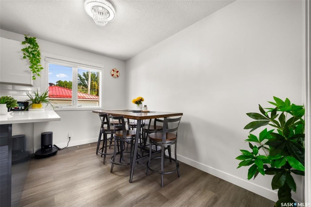 Welcome to 315 McIntosh Street N, a beautifully updated bungalow nestled in the family-friendly Normanview neighbourhood of Regina. This move-in ready home offers 1,245 sq. ft. of bright, modern living space on a spacious 6,100 sq.ft. lot. Thoughtful upgrades throughout. The main floor features a spacious living room with large windows that flood the space with natural light, complemented by vinyl plank flooring throughout. The open-concept design flows seamlessly into the dining area and a stunning updated kitchen, complete with quartz countertops, stylish two-tone cabinetry, stainless steel appliances, and an island with breakfast bar seating—perfect for everyday living and entertaining. Three main-floor bedrooms provide comfort and functionality, including a generous primary bedroom, and a beautifully renovated 4-piece bathroom with modern finishes. The fully developed basement offers even more living space with a large recreation room, an additional bedroom, a den, a 3-piece bath, and a spacious laundry room with extra storage—ideal for growing families or guests. Outside, the property sits on a 6,100 sq. ft. lot with a fenced backyard, patio area, and ample green space. A standout feature is the oversized 24' x 25' detached insulated garage, plus a long concrete driveway offering plenty of off-street parking. The home also boasts a durable metal roof for peace of mind. Additional highlights include central air conditioning, updated flooring, and modern fixtures throughout. Conveniently located near schools, parks, shopping, and transit, this property combines style, space, and practicality. This is an excellent opportunity to own a turn-key family home in a desirable location.