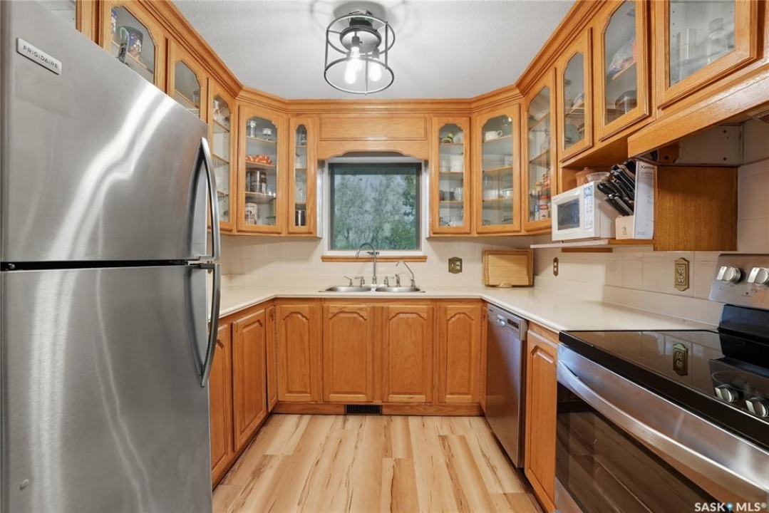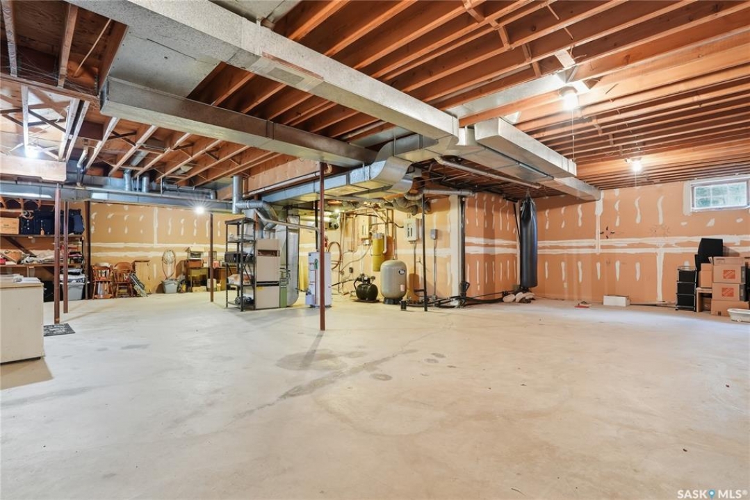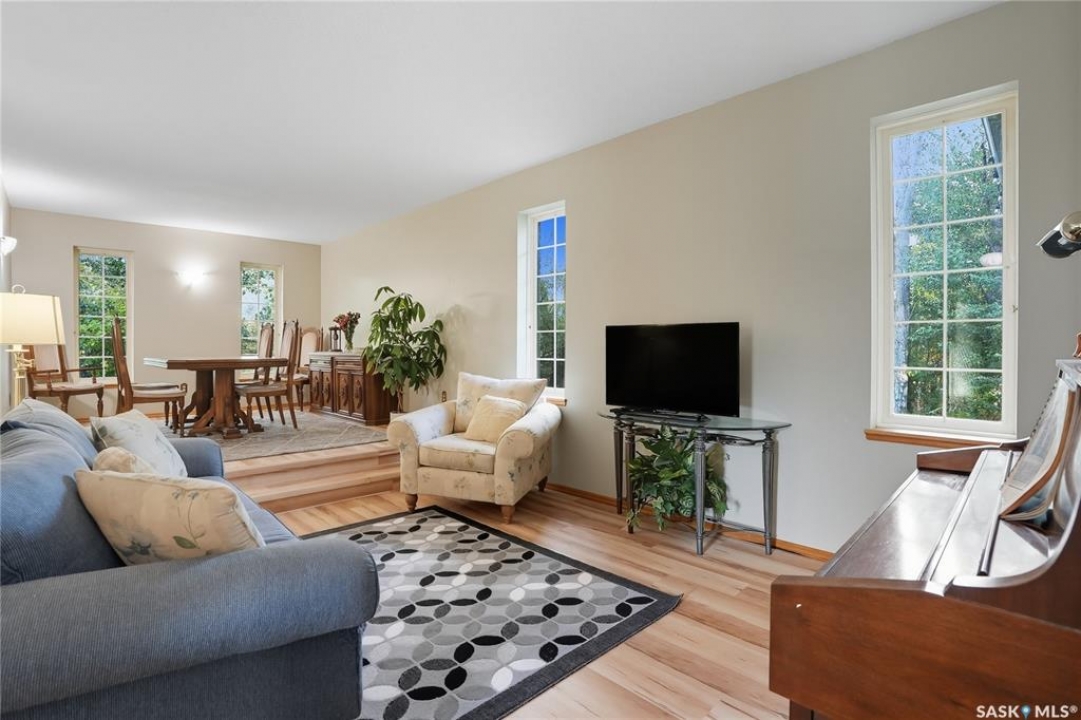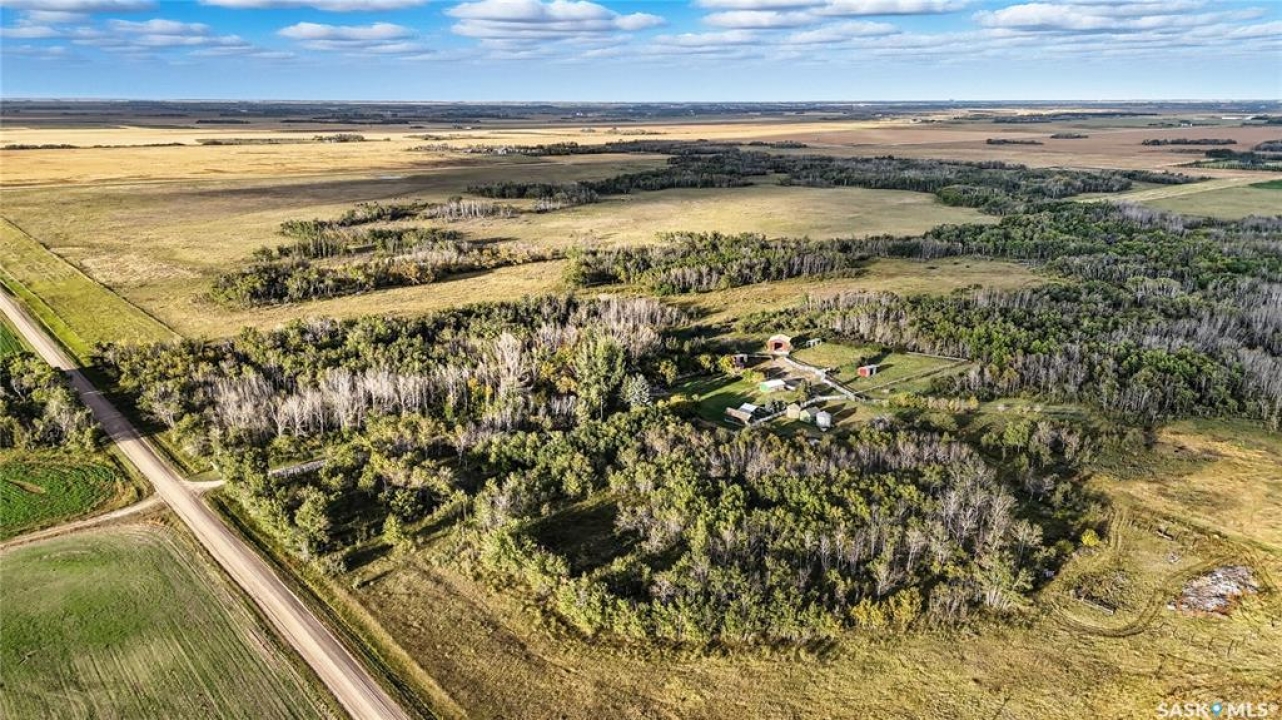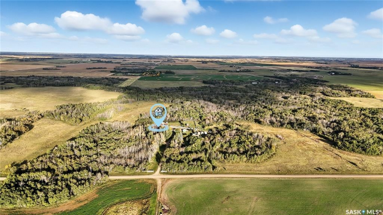 You will feel welcome from the moment you turn into the tree lined driveway, this is truly the acreage dreams are made of! Outside living begins here in this well treed, fenced 80 acres with 2 pens, just 15 minutes north of Saskatoon. The beautiful landscaped yard includes an excellent firepit/ bar area, new deck in back, plus larger deck on front, lush green grass, garden areas, chicken coop, 10x12 horse shelter, 24x 24 hayshed, and workshop. Property has 2 wells, an underground cistern, septic pump out and a newer septic tank. This well built bungalow offers brick exterior, cedar shakes, solid dry preserved wood foundation, and double attached heated garage with direct entry. Inside the main floor offers 4 bedrooms, 3 bathrooms, updated flooring, wood burning fireplace in the family room, main floor laundry & excellent storage. The kitchen is timeless oak with glass inserts on the upper cabinets, stainless steel appliances, plus around the corner is the patio doors to the new deck with natural gas bbq hook up. Primary bedroom does have a 4 piece ensuite and spacious counter. The basement offers 9 ft ceilings and is open for your desired development. Quiet location with close proximity to Saskatoon, school bus services to Dalmeny K-12. Contact your agent today, presentation of offers will be Sept 23, 2025 at 5 pm.