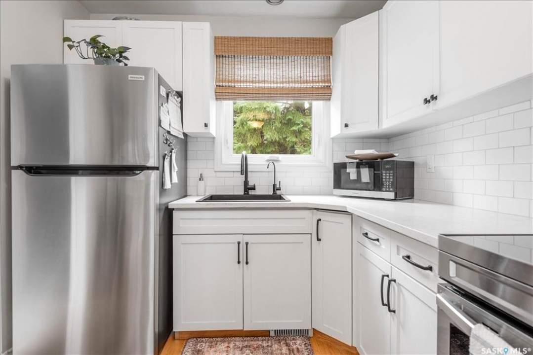 This stunning 3-bedroom, 2-bathroom bungalow in Glencairn is loaded with charm, updates, and plenty of space to enjoy. Inside, the open-concept main floor showcases gleaming hardwood floors that flow seamlessly through the living, dining, kitchen, hallway, and bedrooms. A beautifully updated 4-piece bathroom completes the level. The fully finished basement expands your living space with a large rec room, cozy den, modern 3-piece bath, oversized laundry/utility room, and excellent storage. The list of upgrades is impressive: a beautifully updated kitchen with quartz countertops (2025), nearly all new windows (2024), a brand-new fence and landscaping (2024), updated eaves/soffit/fascia (2023), and a high-efficiency furnace (2016). Step outside and fall in love with your private, south-facing backyard oasis — beautifully landscaped with lush lawn, garden space, and the perfect setting for summer barbecues or evening relaxation. A tandem driveway fits two vehicles, and alley access leaves plenty of room for a future double garage. With central air, appliances included, and nothing left to do but move in, this home is the perfect blend of comfort, style, and function.