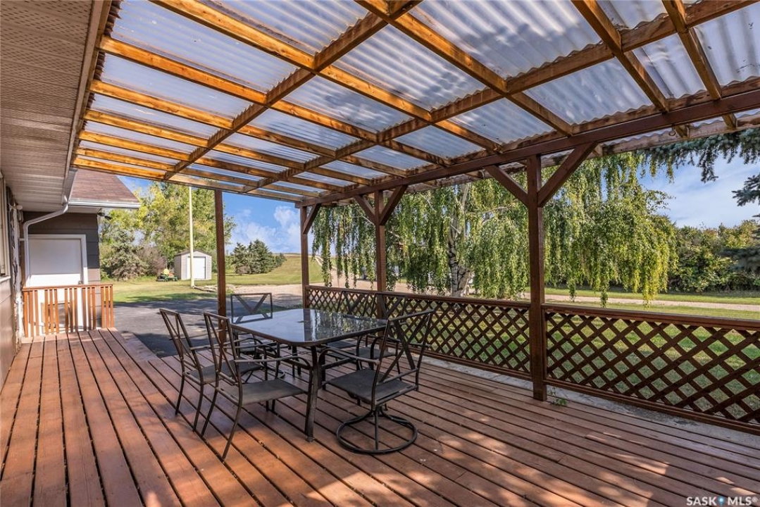 You will appreciate this family sized, country bungalow located SE of Allan and or SW of Young. This 10 acre mature treed yard site is a great place to raise a family or enjoy what country living has to offer. When you enter this home, you are welcomed to a spacious mud room with cabinetry and storage spaces for clothes and footwear. There is a home office off the mud room with a view of the backyard. The kitchen and open eating area is a great space to gather around the kitchen table. The island provides a great spot to prepare the meals. Sliding doors for quick access to the east facing deck from the dining area. Large living room and three spacious bedrooms, 5 piece bath (2 sinks) and a dedicated main floor laundry room with a sink and cabinetry. The basement features a large family room and an area for games, 3 pc bath, storage and utility room. The insulted attached garage with direct entry is a great benefit. Come and view this great property. You could be spending your next Christmas in the country?