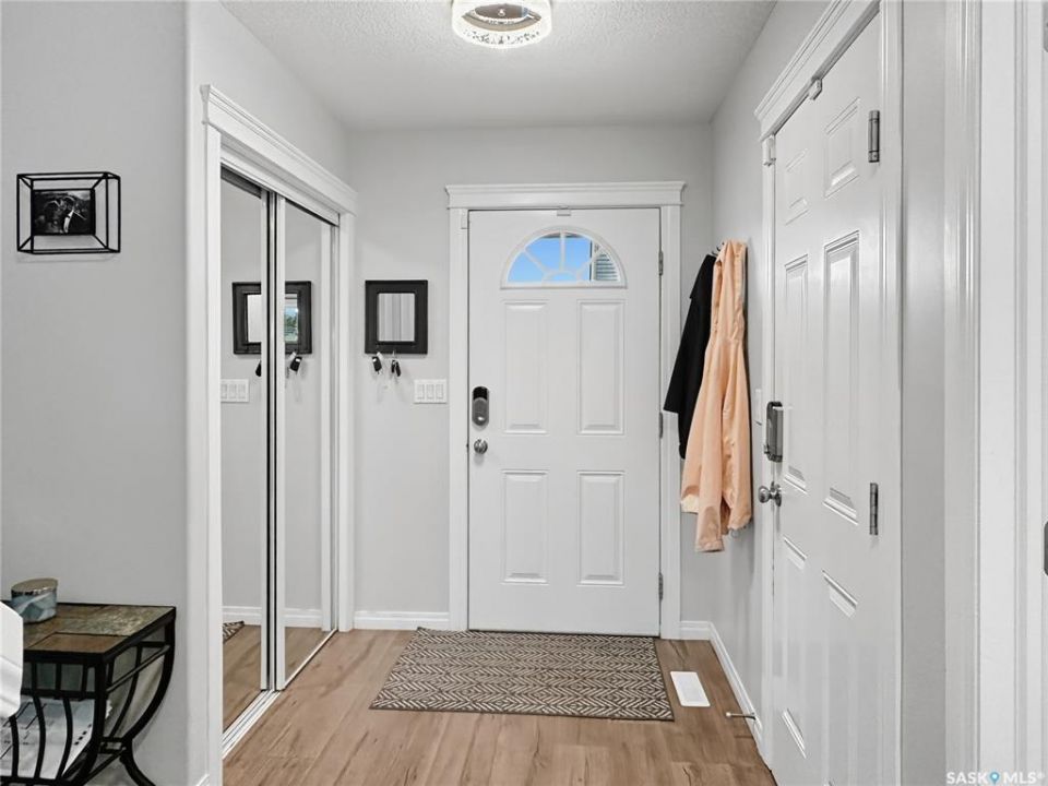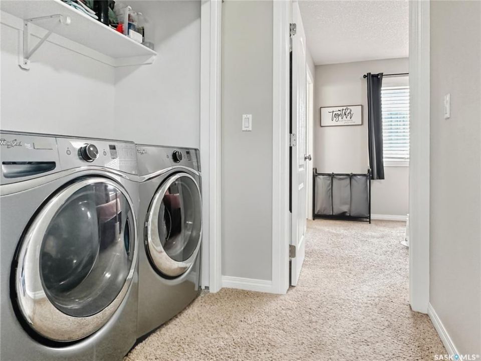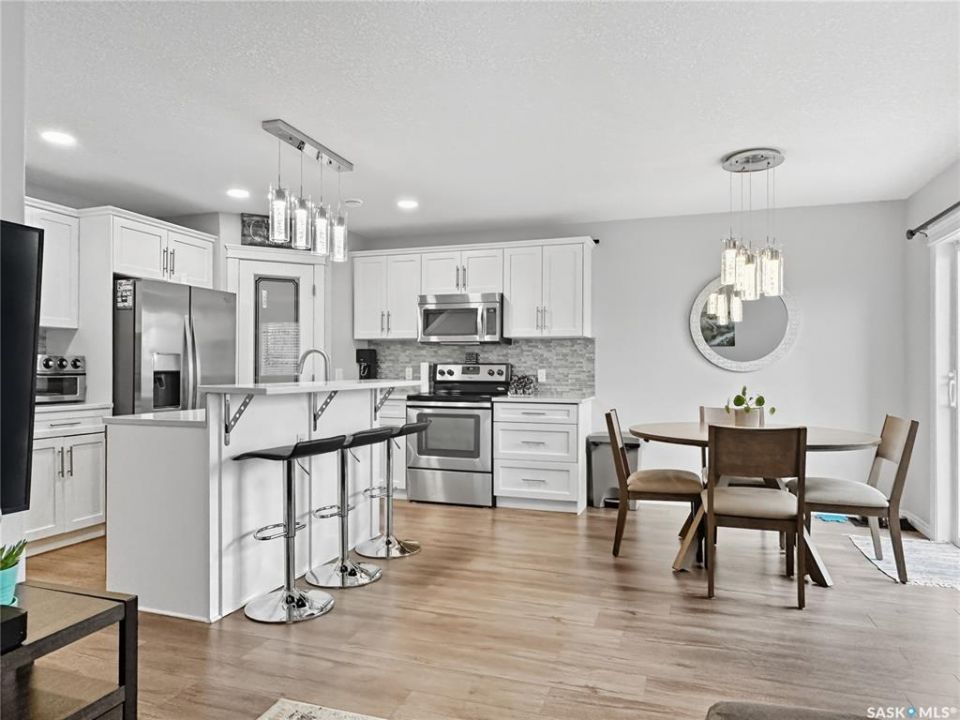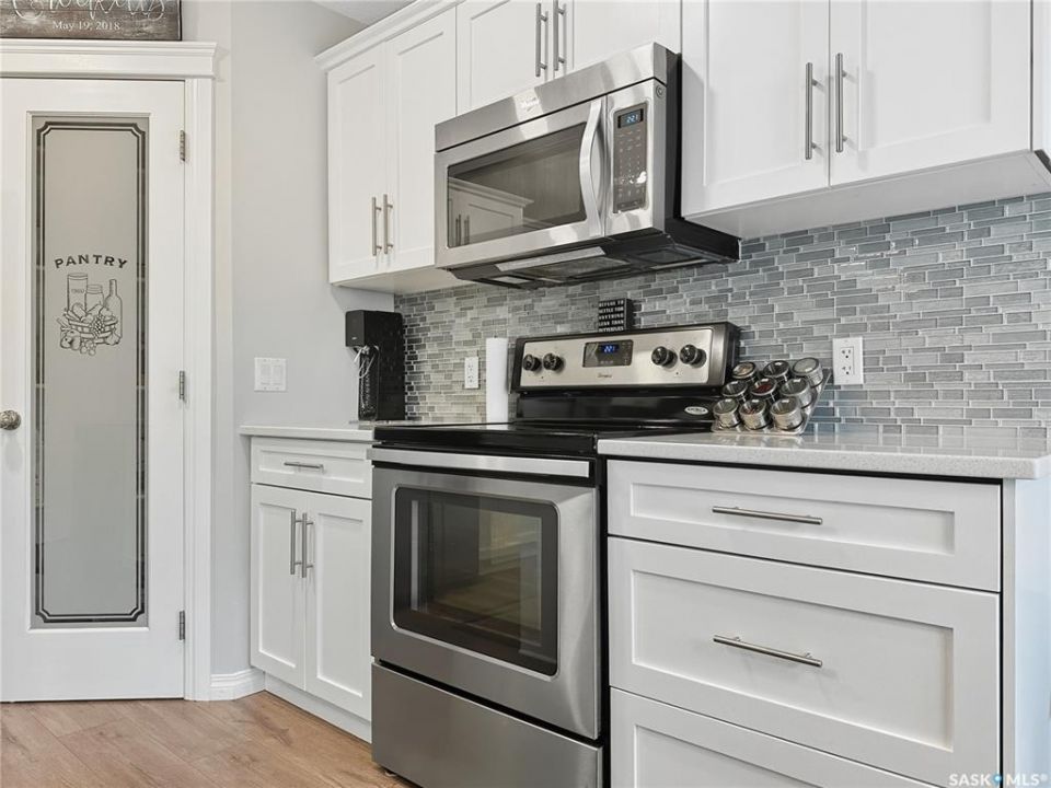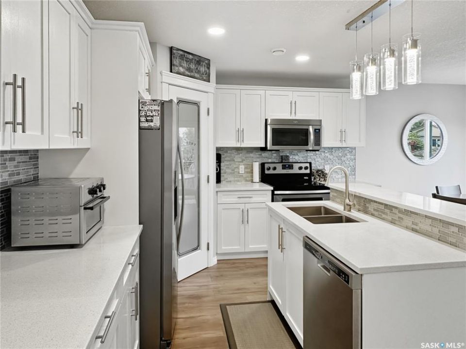 Gorgeous Battleford townhouse condo now available, offering tons of upgrades, low condo fees, and an excellent location! This 1277 sqft, two-storey home is move-in ready and will impress the moment you walk through the door. The main level has been fully renovated with neutral laminate flooring and fresh paint, giving the space a modern, bright, and airy feel. The kitchen is a true showstopper, featuring crisp white cabinetry, luxurious quartz countertops, stainless steel appliances, stylish fixtures, and a spacious corner pantry. Open to both the dining area and living room, it creates the perfect layout for everyday living and entertaining. Upstairs, you'll find three bedrooms along with the convenience of laundry on the same level. The primary suite offers a generous walk-in closet and a beautiful 4-piece ensuite bathroom, while a second 4-piece bath serves the additional bedrooms, perfect for kids or guests! The fully finished basement has also been updated with luxury vinyl plank flooring and fresh paint, providing a cozy family room and versatile flex space perfect for movie nights, workouts, or extra company. Additional features include a fully insulated attached garage with direct entry to the home, a newer fence, updated landscaping in the front yard complete with underground sprinklers, and central air conditioning installed in 2023. With condo fees of just $100/month, this property combines style, function, and value in a highly desirable Battleford location. Whether you're a first-time buyer, a growing family, or simply looking to downsize into a low-maintenance lifestyle, this home has it all.