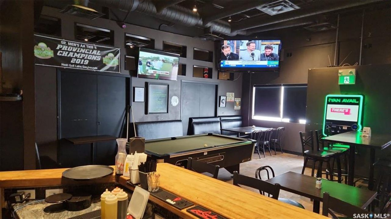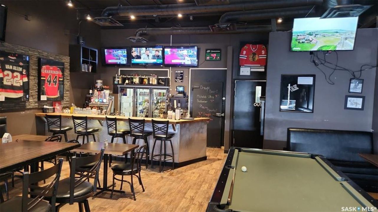 Turnkey opportunity in the heart of Shaunavon! This thriving sports bar and restaurant is ideally located just off the main highway and steps from a busy 59-room hotel with no on-site food or beverage service—drawing consistent business from locals and travelers alike. The property is fully equipped with 4 VLTs, a full liquor license, and an updated kitchen featuring modern equipment, ready to support continued growth. Shaunavon's strong agricultural and oil & gas industries ensure steady year-round traffic. Established 12 years ago, this well-loved business comes with loyal, experienced staff eager to remain, making the transition seamless for new owners. A rare chance to step into a proven, income-generating operation!