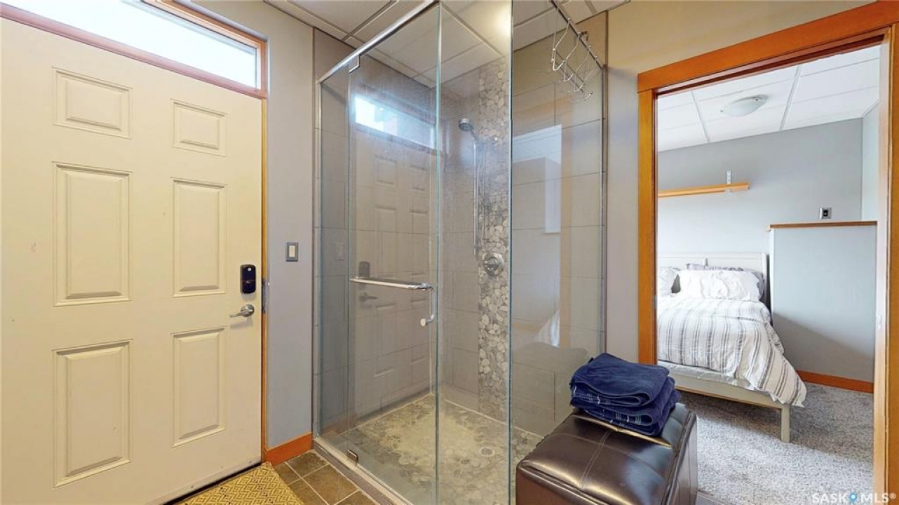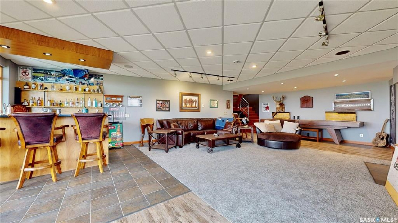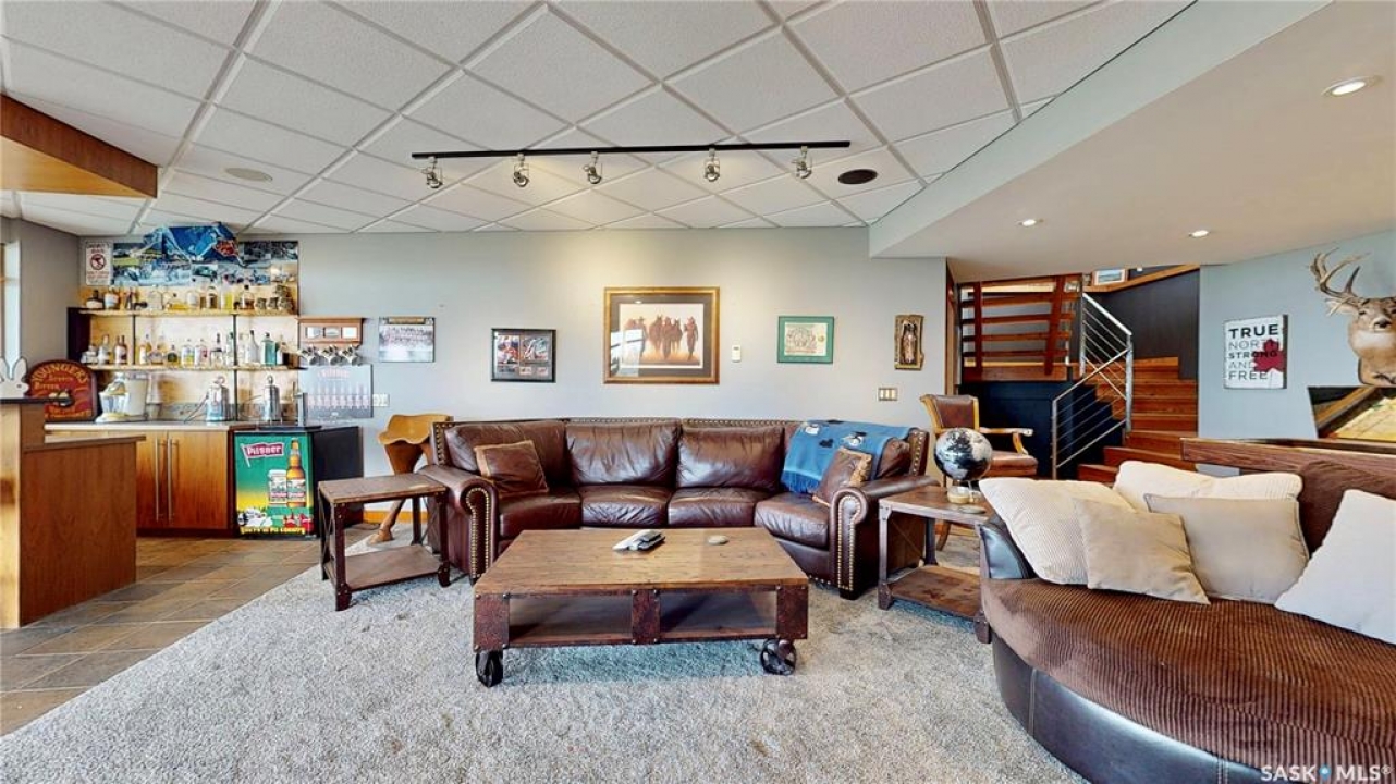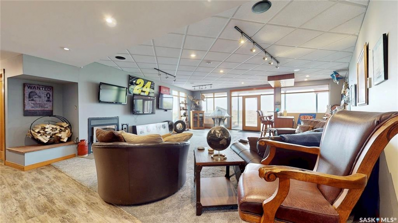Experience 40 Apollo Drive in the Acreages at Minerva Ridge near Lumsden. From the powered gate and lit lane, this 5-bedroom, 4-bath home offers 2,200 sq. ft. on the main plus a full walkout level, including a private entrance suite for extended family or a caregiver. Floor-to-ceiling curtain wall windows showcase the Wascana and Qu'Appelle valleys, filling the home with light. Built for comfort and efficiency, the home features zoned in-floor hydronic heating, high-efficiency boiler, gas furnace with A/C backup, spray foam insulation, EIFS stucco, triple-pane argon windows, and a 12.6 kW solar system powering both house and barn—keeping costs near net zero. The kitchen includes a built-in gas cooktop, double wall oven, drawer microwave, fridge, dishwasher, and a butler's pantry with upright freezer and extra fridge. A mudroom with built-ins sits just off the garage. Technology upgrades include RA2 automation for blinds, lights, climate, and locks, whole-home audio, five video screens, Ring security, an 8-camera CCTV system, and permanent holiday lights. The lower level adds a wet bar, games area, and gym with overhead door for fresh air workouts. Outside, enjoy a covered patio with built-in BBQ, 8-person hot tub, and heater. A heated 1,080 sq. ft. garage and 35x70 insulated barn/shop provide storage, stalls, tack room, hay loft, and heated workshop. Equine features include a 100x180 LED-lit riding arena, two fenced pastures with solar fencing, and automatic water systems. Extras include a reinforced secure room, 200-amp service, water softener, and custom cold storage. Lumsden's schools and amenities are minutes away, with Regina only a 15-minute drive. Purchasers also have first right of refusal on the adjoining 3-acre parcel. https://youtu.be/mPkNdWGtmeE
