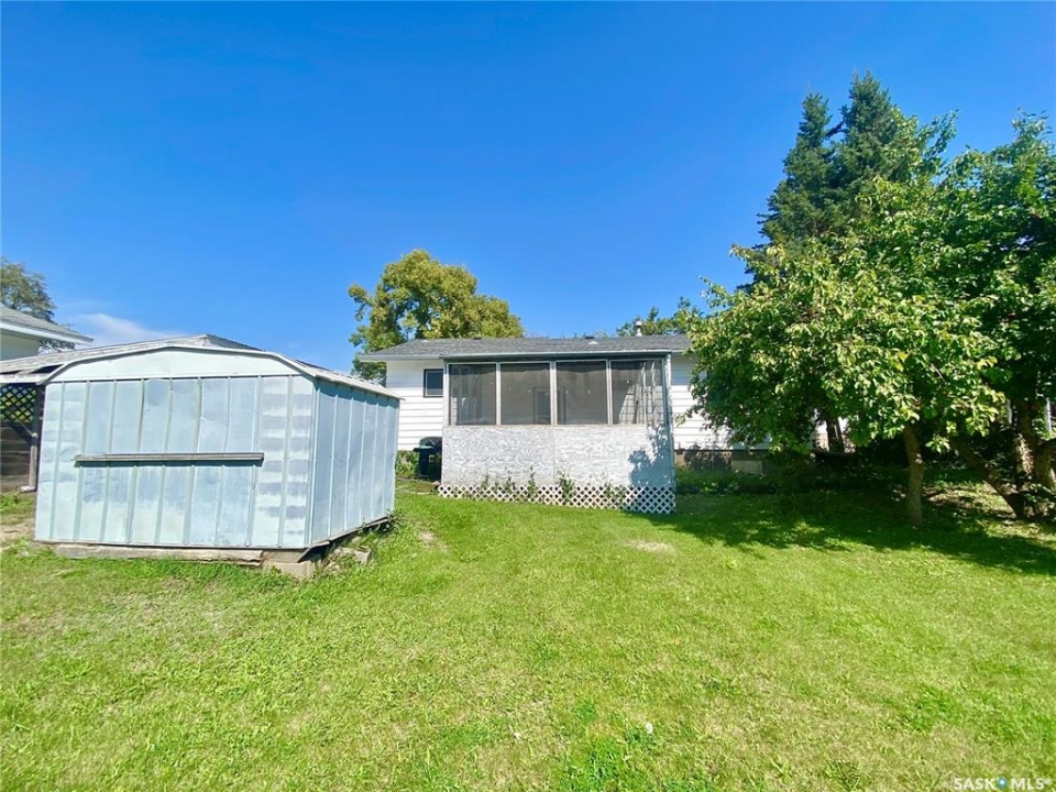 Welcome to this well-maintained and move-in ready home in the town of Raymore, SK. located just over an hour North of Regina. This 950 square foot bungalow is conveniently situated on a large lot directly across from the PreK-12 school. Featuring two bedrooms and a renovated four piece bathroom on the main level, along with two versatile bonus rooms, a spacious rec room, and roughed-in plumbing in the utility area downstairs, this home offers plenty of space and potential to suit your needs. Take advantage of the bright three-season sunroom and the spacious backyard—perfect for relaxing, entertaining, or enjoying the outdoors. Whether you're a first-time home buyer looking for an affordable space to call your own, a family looking for a home close to a school, or an investor seeking a solid property, this may be the one for you. Call today to book your private viewing!
