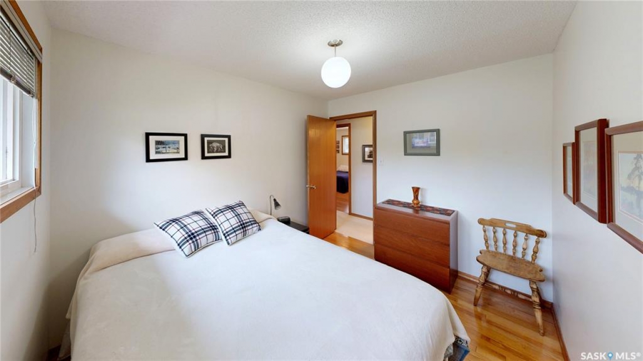 Welcome to 42 Hawkes Avenue on a quiet street in the Normanview West Neighborhood. This 1977 built, 1236 square foot, 4 bedroom 3 bathroom, bungalow sits on a generous 50 x 100 rectangular lot. The front yard has a lush lawn, trees, shrubs, and a long single driveway. The backyard is fully fenced and features a two tiered deck with a pergola, a lawn, garden boxes, trees and established greenery, a sandbox and access to the double detached 22 x 24 partially insulated garage! The bright living room has a new picture window that floods the room with natural light. The dining area has space for a table and chairs to seat the whole family and doors that access the backyard. The kitchen has bar seating at the long countertop, tons of cupboard and drawer space including a pantry, and the fridge, dishwasher, hood fan and new stove are all included! Next is the main 4 piece bathroom. The primary bedroom has hardwood flooring, a large double closet and a private 2 piece ensuite bathroom. Two more bedrooms with hardwood floors and their own closets finish off the main floor. Downstairs, the fully developed basement provides an abundance of extra living space. The expansive recreation room is thoughtfully divided. One side makes a cozy reading nook while the other is perfectly suited for a home theatre setup. A gas fireplace adds warmth and ambience for year round enjoyment. The utility room is neatly tucked to the side under the stairs and includes the high efficiency furnace, gas water heater and water softener! A versatile den serves well as a home office, hobby space, or playroom. The 4 piece bathroom has a spa-like feel with a glass shower, towel racks and the relaxing 6 foot jet tub with tile surround. The final bedroom is spacious and serene. It also has its own closet. Finishing off the home is the laundry room that provides extra storage space and includes the washer and dryer. This home also features central air conditioning and a central vacuum system.