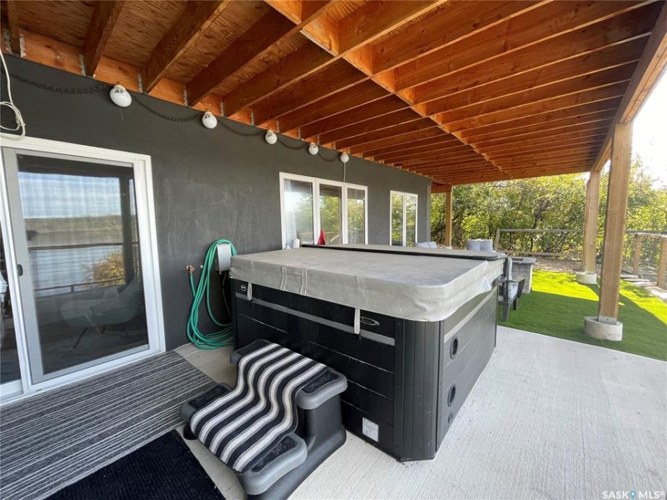 Welcome to 402 Abel Dr. located at Crooked Lake Sk. Don't let this one pass you by, you truly have to view to fully appreciate the layout and pride in ownership. ENJOY lake front living at its best year round with this beautiful walkout bungalow that offers approx. 1,996 sq. f. of total living space, that doesn't even include the huge double attached heated garage that feels more like part of the house then an actual garage (which has a 3 piece bathroom and laundry area). This open concept layout with its large island kitchen has breath taking views of the lake from one end to the other. There is 3 total bedrooms / 3 bathrooms, with the master suite on the walkout level. Outside this home there is numerous places to relax and enjoy the amazing lake views from the screened in sunroom off the main level or the hot tub and sitting area off the walkout level. Seller states the well is approx. 140-150 feet deep and septic tank 1000 gal.