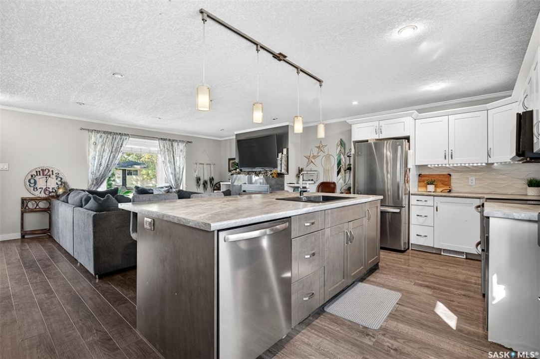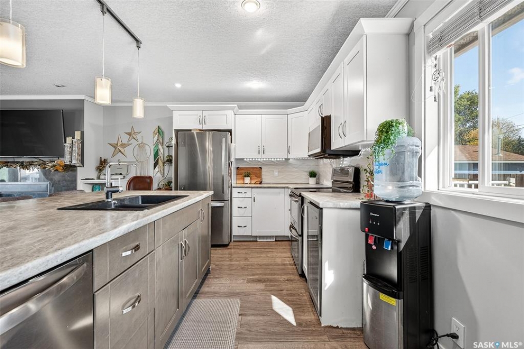 Welcome to this fantastic 4-level split located in one of the desirable Palliser Heights neighborhood! This beautifully upgraded home offers 3 spacious bedrooms, 3 bathrooms, and tons of thoughtful updates throughout. Every level of this home is fully finished, offering functional space for the whole family. The main floor features a stunning kitchen with modern finishes, a warm and inviting living room complete with a cozy gas fireplace, and direct access to the large back deck—perfect for relaxing or entertaining! Upstairs, you'll find three generously sized bedrooms and a huge 4-piece bathroom that includes excellent built-in storage. On the first lower level, large windows allow for tons of natural light in the spacious family room. This level also includes a 3-piece bathroom, a tidy and efficient laundry room, and a cozy office or craft area. The basement level provides even more usable space, including a great storage room, an efficient utility area with access to the crawl space (ideal for all your extra storage needs), and a den with adjoining family room that could easily be converted into a 4th bedroom if needed. This level is completed with a convenient 2-piece bathroom. Outside, enjoy a fully fenced yard with gated trailer parking, a nice-sized storage shed, and a huge deck. The 24'x26' heated double garage and additional off-street parking on the 2-car driveway out front make this home perfect for anyone needing space for vehicles, toys, or a workshop. This is a rare find that truly has it all — space, upgrades, parking, storage, and a great layout in an unbeatable location! Call your REALTOR � today to book a private viewing!