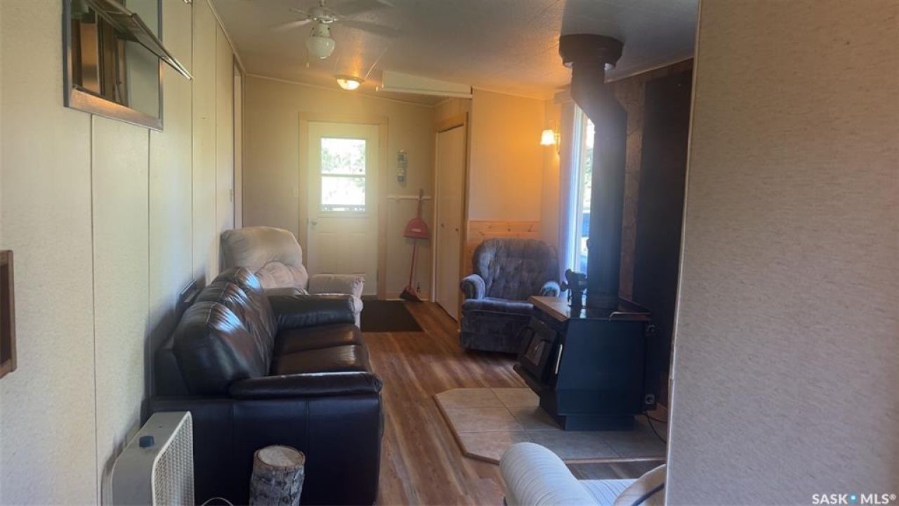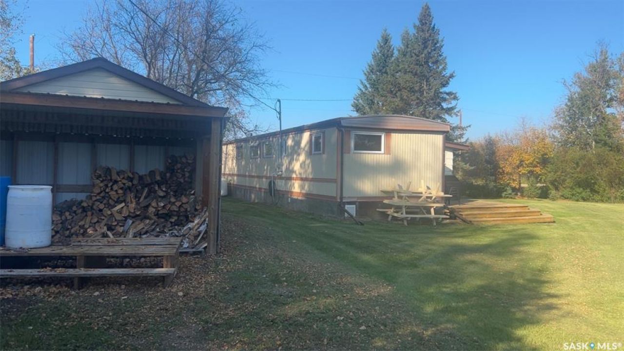 A HUNTER'S PARADISE situated right on the edge of the Porcupine Provincial Forest in the Hamlet of Usherville, SK! Welcome to this immaculate FULLY FURNISHED 1220 sq ft mobile situated on two lots featuring 3 bedrooms, 1 bath, cozy wood burning fireplace, beautiful 10' x 22' front covered deck, new south-facing back patio, new above-floor waterlines, 4 pc bath, front load washer and dryer, electric water heater, propane furnace, electric heat, storage room and tin roofing. This amazing property boasts a 14' x 22' single detached garage, extra large wood shed, firepit, excellent drinking water, septic, four Coop rented 250 gallon propane tanks (full) $180/yr and an abundant grassed area for parking, entertaining, gardening, etc. Taxes are super affordable at $407.10/yr. The Town of Preeceville is located only 34 km south and the Town of Hudson Bay 83 km north. This is PRIME location for hunting, fishing, quadding and sledding (Route 66) - so please call and book a viewing today!
