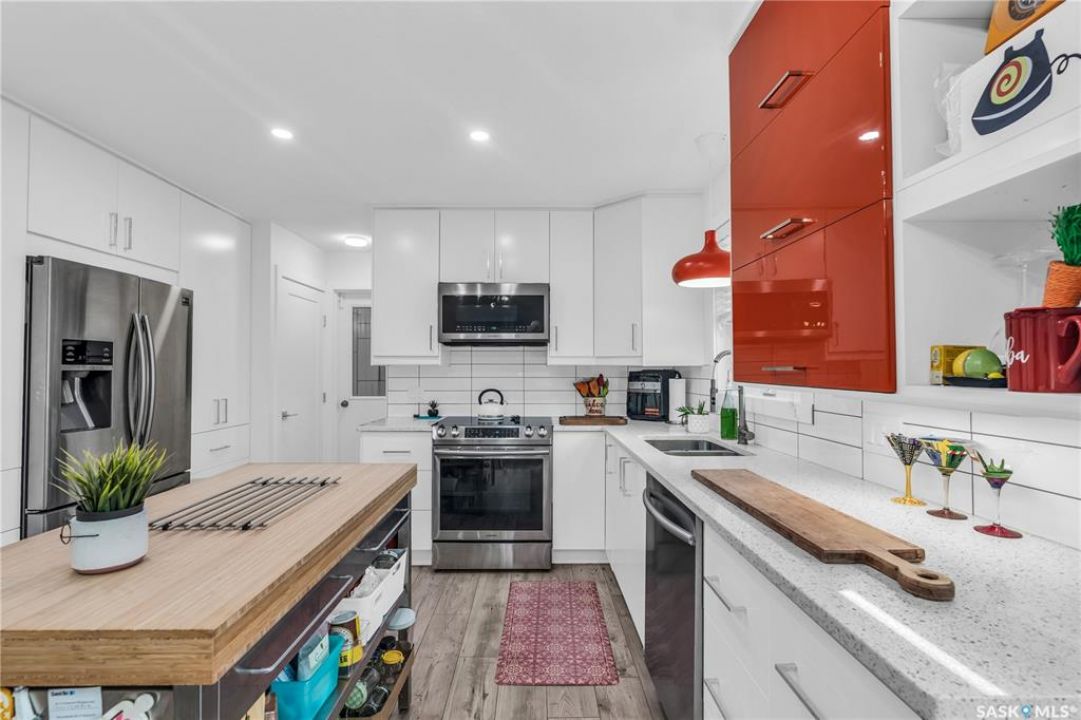Welcome to this beautifully renovated home in sought-after Kildeer Park! With 1,471 sq ft of stylish, modern living space, this move-in-ready property has been updated from top to bottom. Step inside to discover a bright and airy main floor featuring all new flooring, trim, lighting, interior doors & patio doors, windows, and a stunning kitchen complete with crisp white cabinets and a cheerful pop of color. The dining room flows seamlessly into a cozy family room—ideal for entertaining or relaxing with a good book and a glass of wine. Around the corner, the spacious living room offers updated pot lights and the perfect place to unwind. The main floor also features three generous bedrooms, a beautifully updated 4-piece bath, and a 3-piece ensuite off the large primary bedroom. Downstairs, you'll find a large family/recreation room with a wet bar, an additional bedroom, a 4-piece bathroom, and a den—perfect for a home office or playroom. The oversized laundry/utility room offers ample storage space for all your extras. The insulated single attached garage connects to the house through a convenient breezeway, offering direct access without braving the elements. Patio doors from the dining area lead to a private deck with built-in privacy screens. The fenced portion of the yard offers a secure space for pets or kids, and approval is in place to fence in the west side, adding even more outdoor space. This home truly has it all—location, layout, and so many updates. Don't miss your chance to make it yours!