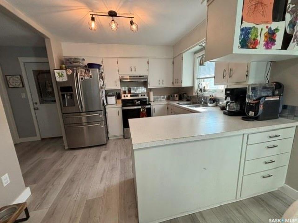 Welcome to this three bedroom up and two bedroom down home on a mature lot in the town of Oxbow. Lots of modern updates that makes this home ready to move in. Stainless steel appliances add a great touch to the kitchen which has an open concept that is perfect for entertaining. The large living room has a picture window that allows in lots of natural light and a great view of the front deck. Fully finished basement that includes two electrical panels, large storage areas, family room, and a three piece bathroom with heated floors. The basement also has a insulated cold storage room and storage under the stairwell. Attached garage is a must have with an exit to the completely fenced backyard. Another deck in the backyard for a great private space. Priced to sell. Call for your private viewing!