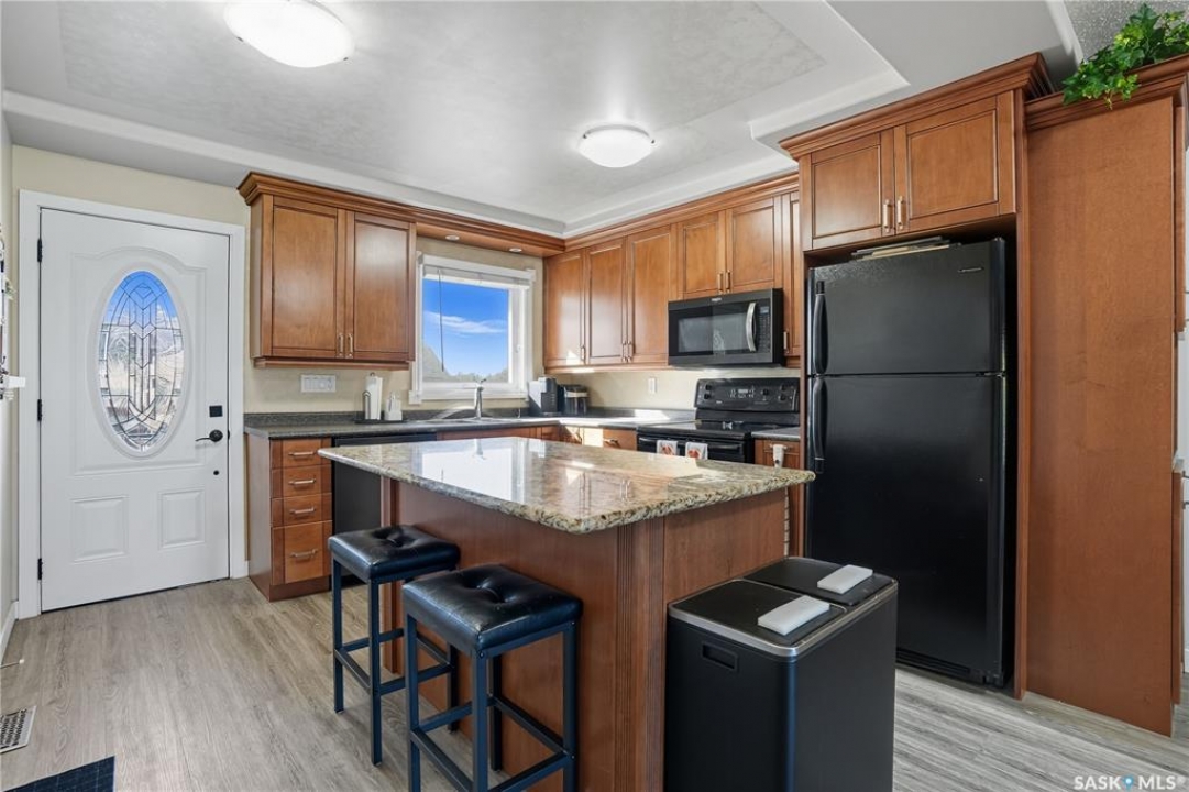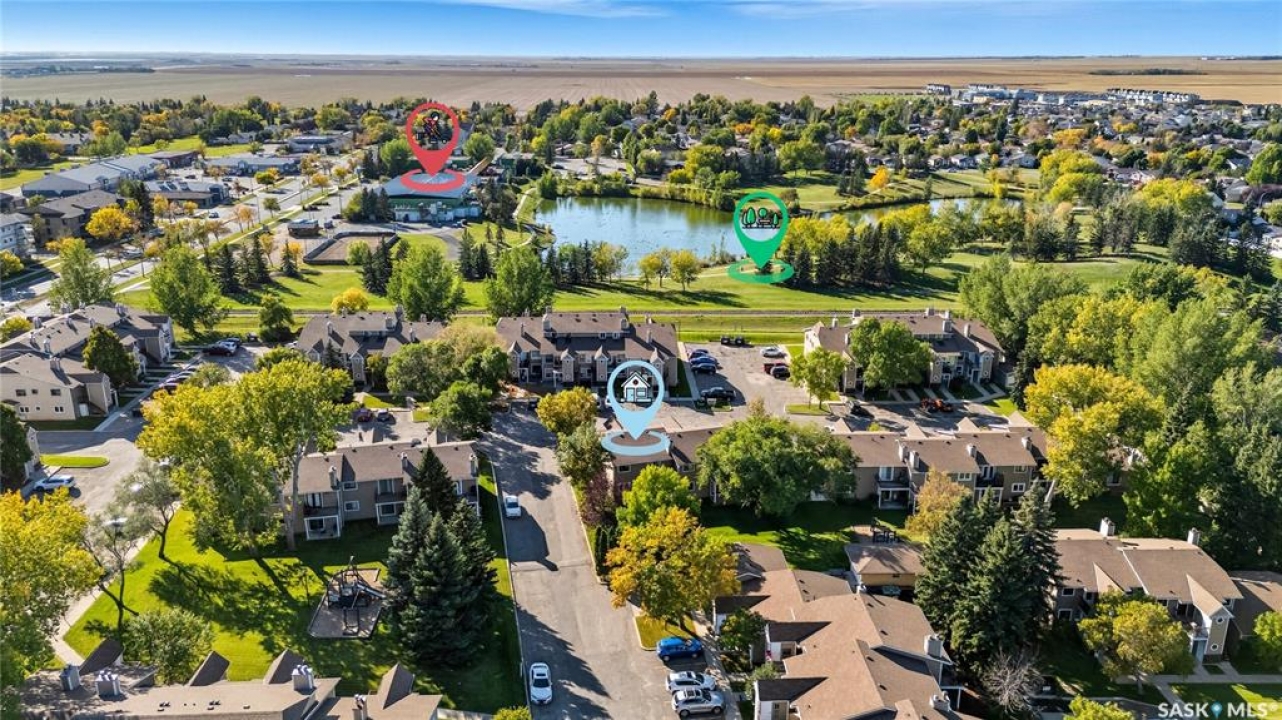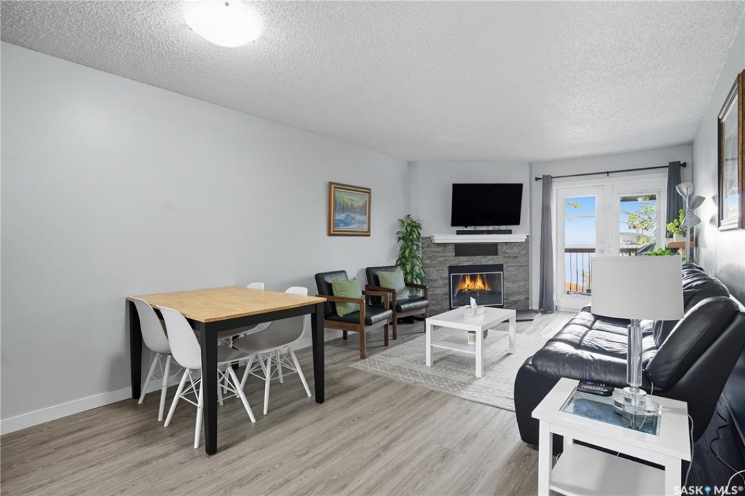 Welcome to this beautifully updated and move-in ready two-bedroom, one-bathroom upper-level condo in Cedar Meadow — a true hidden gem! Perfectly located within walking distance to schools, parks, walking paths, and all the amenities you need, this home combines convenience with comfort. Step inside and be greeted by a spacious, open-concept layout designed for both everyday living and entertaining. The stunning kitchen is a standout feature, boasting stone countertops, soft-close cabinetry, a central island perfect for meal prep, and an abundance of storage, including a built-in dining room cabinet. The kitchen is equipped with modern appliances — fridge, stove, built-in dishwasher, built-in microwave — plus a designated space for a wine fridge. The dining room flows seamlessly into the inviting living room, where a charming decorative fireplace adds warmth and character. From here, large windows and a sliding door lead to your private balcony with peaceful views of the green space and play structure — the perfect spot to relax with your morning coffee or unwind at the end of the day. Both bedrooms are generously sized, with the primary offering the bonus of double closets for ample storage. The unit also includes the convenience of in-suite laundry. An additional highlight is the maintenance-free furnace and air conditioner, both owned and serviced by the condo association, giving you peace of mind year-round. Enjoy one electrified parking stall included with the condo, plus additional storage off the deck. Need more parking? A second stall can be rented seasonally at an affordable rate. This rare Cedar Meadow condo truly has it all — a functional floor plan, stylish updates, and a welcoming community in an unbeatable location. Don't miss your opportunity to call this one-of-a-kind property home!