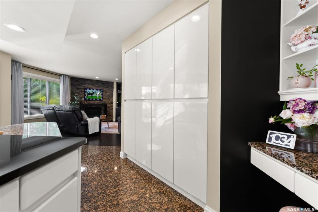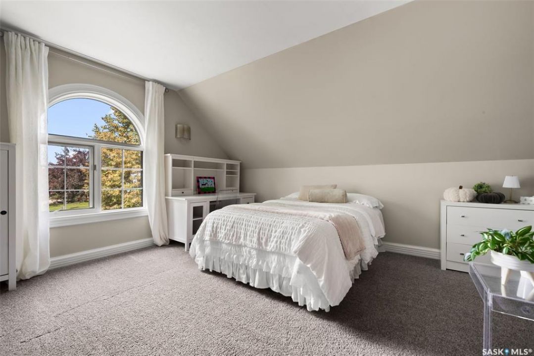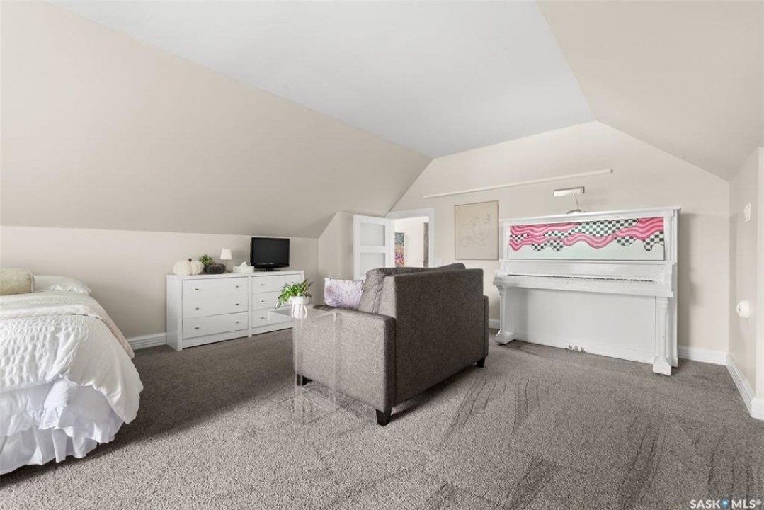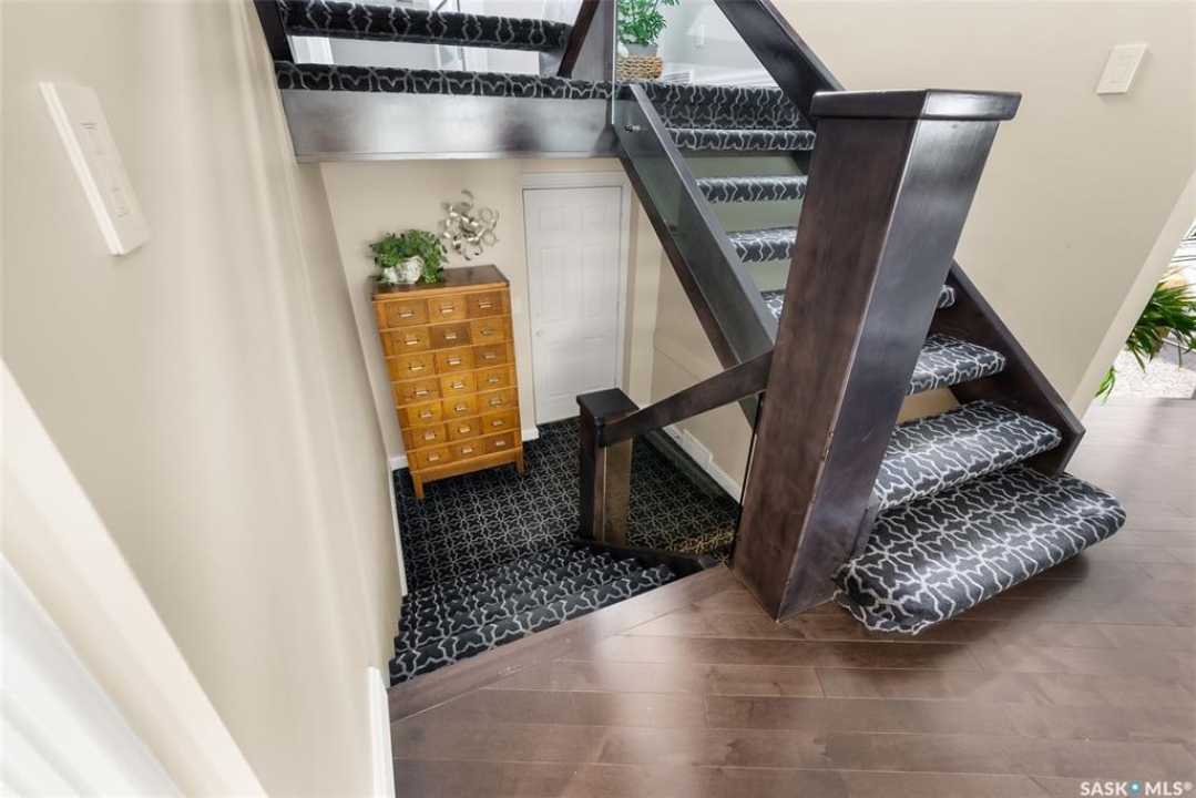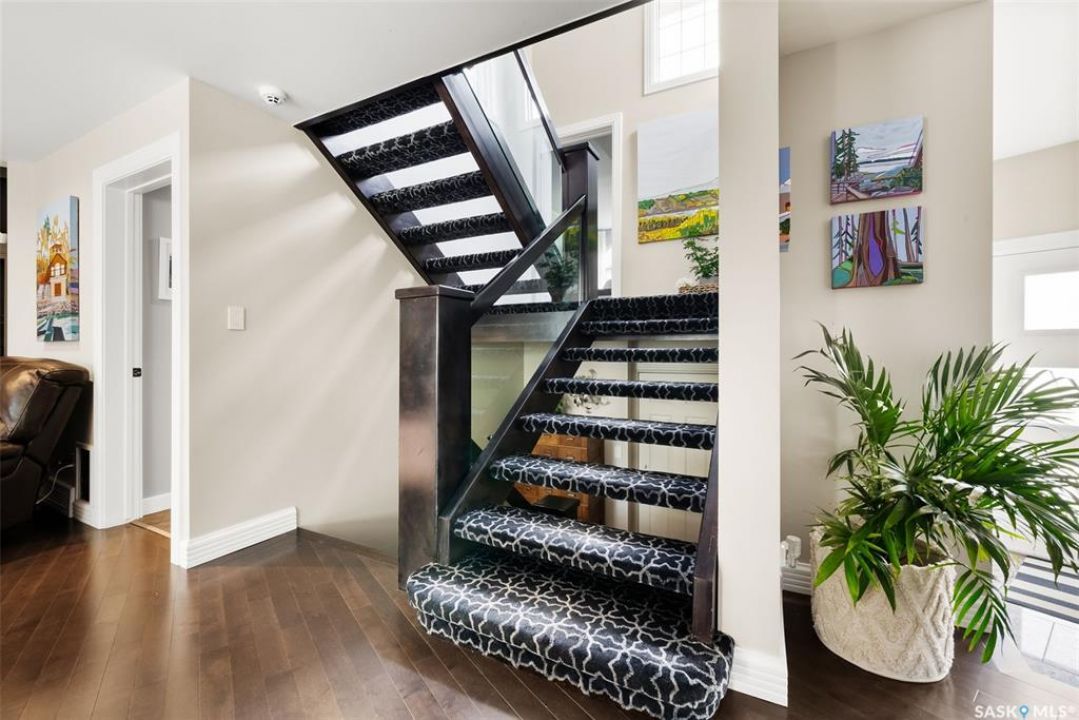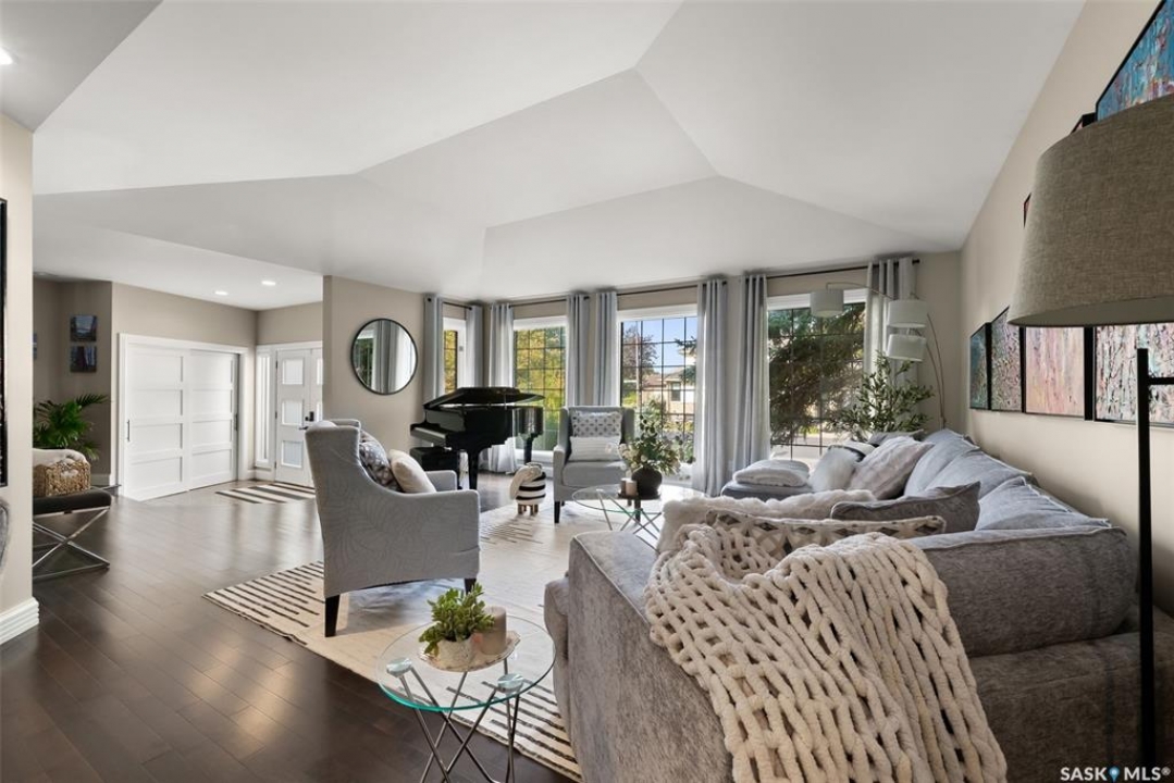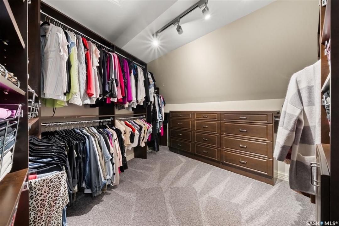 Don't miss this elegant and spacious two-storey home in prestigious Wascana View! This stunning custom-built property offers 5 bedrooms plus a large bonus room, with an exceptional floor plan and numerous upgrades. A brick façade, offset double attached garage & lush landscaping create impressive curb appeal. Inside, a sunken foyer with granite tile sets the tone. Formal living and dining rooms feature vaulted ceilings and large picture windows, filling the space with natural light. Sleek kitchen showcases Italian cabinetry, granite countertops, pot lighting, a two-tiered island with 5-burner gas cooktop and pop-up fan, built-in KitchenAid oven, built-in Panasonic microwave, and newer dishwasher (2019). Composite stairs lead to the outdoor patio, while the adjacent family room highlights a stacked-stone fireplace and media area. Custom mudroom/laundry is complete with stacking washer/dryer & built-in lockers.2-pc powder room with stylish finishes completes the main floor. The heated, boarded garage offers two direct entries to the home, including one that leads directly to the basement. Upstairs, the bonus room with gas fireplace provides flexibility as a cozy retreat or additional bedroom. The luxurious primary suite includes a spa-inspired ensuite with steam shower, double vanity, new window, and dressing area, plus a custom ClutterX walk-in closet. Two additional bedrooms and a fully renovated 4-pc bath with ceramic tile and granite vanity complete the level. Developed lower level features a large rec room, two more bedrooms and a stylish updated 4-pc bath. A hidden bookcase door reveals a secret craft room. Backyard is an entertainer's paradise with a spacious stone patio and bar area surrounded by mature landscaping. Additional upgrades include new flooring throughout most of the home, smart lighting with Lutron dimmer system, EcoBee thermostat, security system with cameras, and Telus monitors. Luxury living in one of Regina's most desirable neighbourhoods!